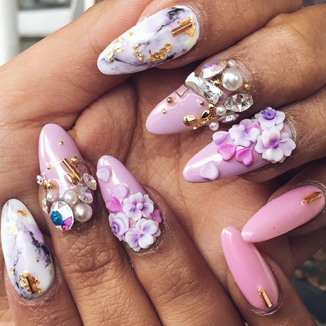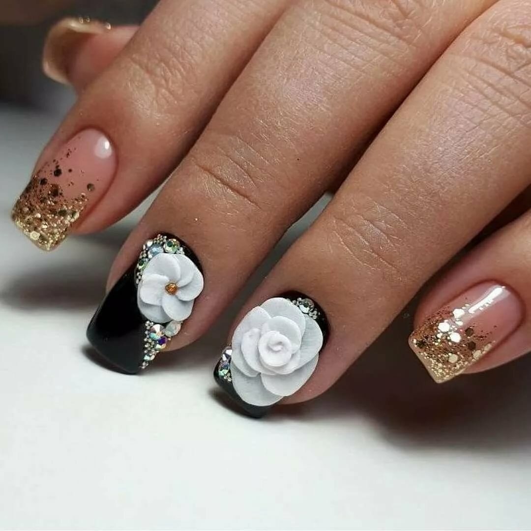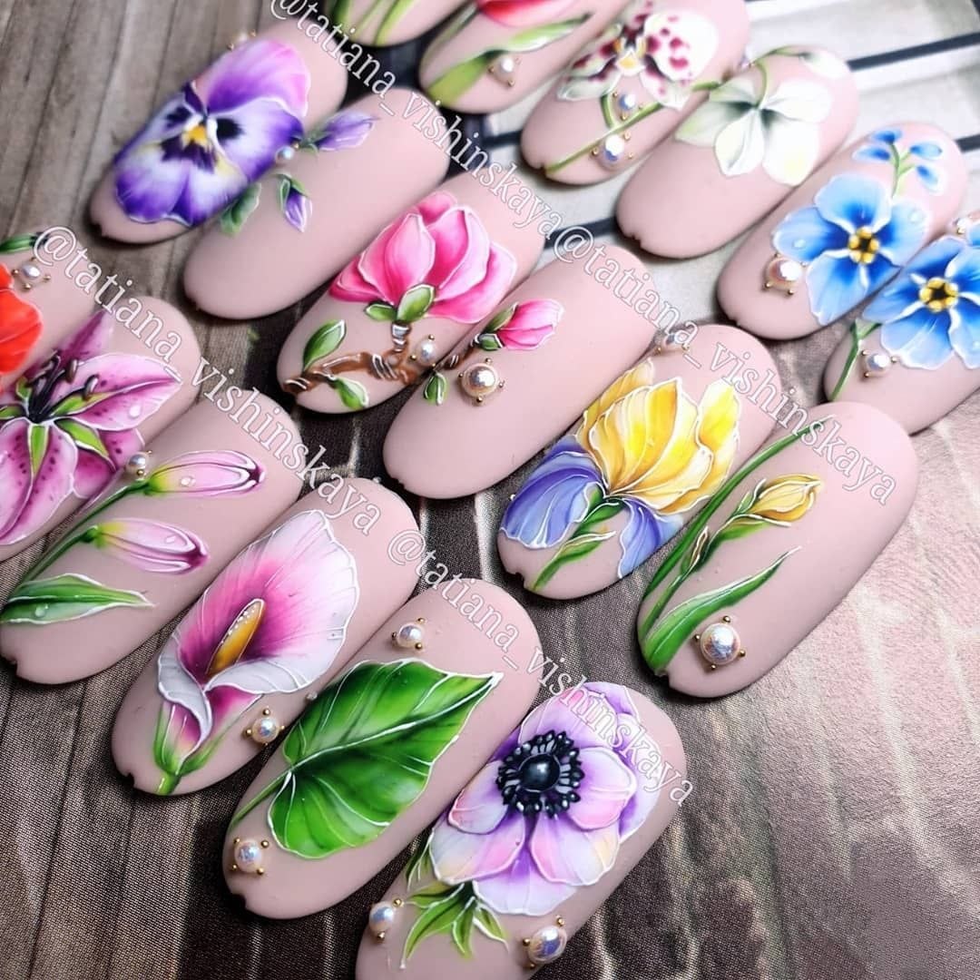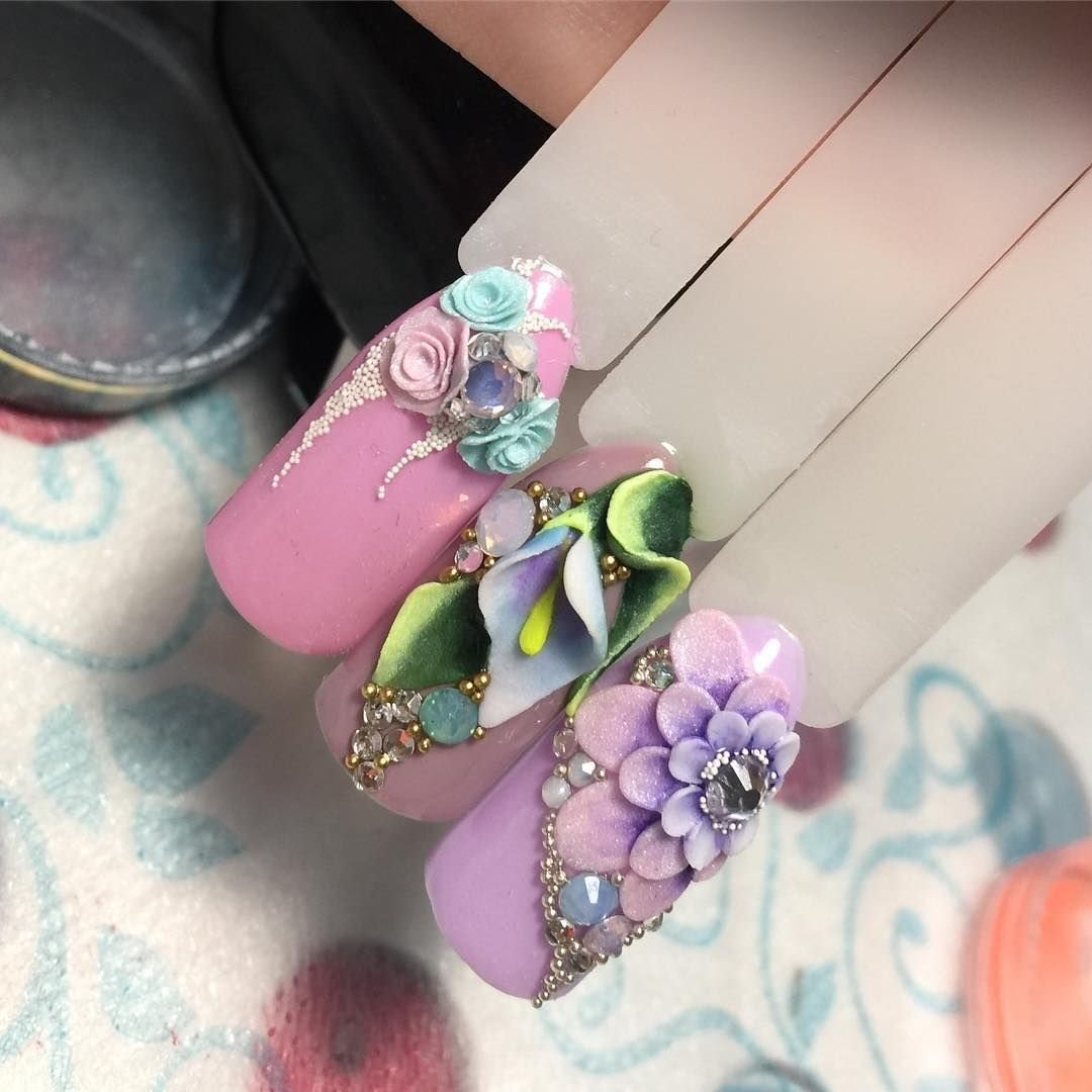 Маникюр с объемными цветами