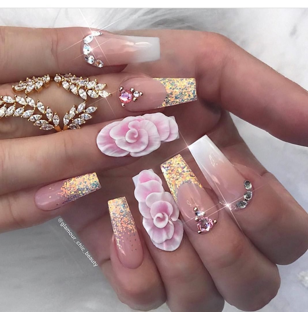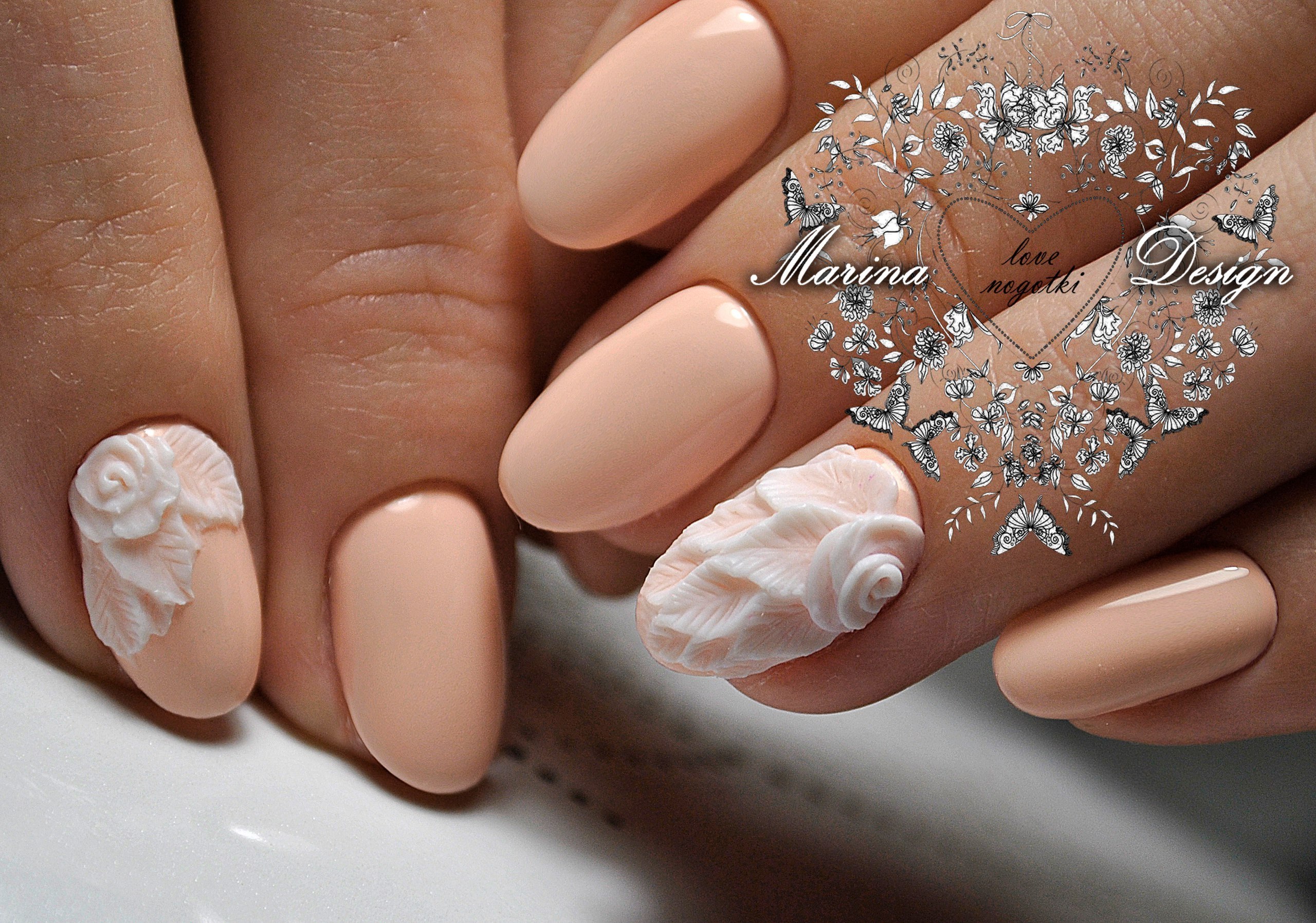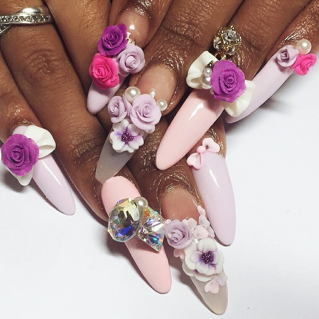 Маникюр с объемными цветами