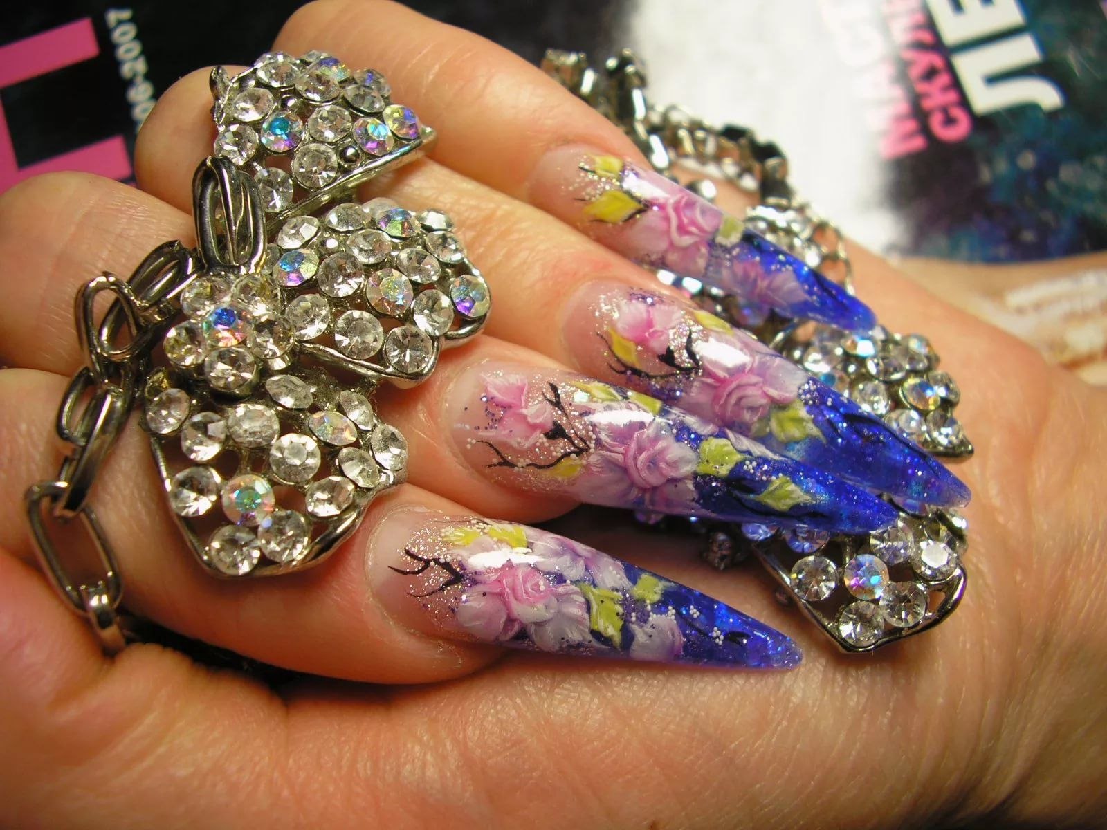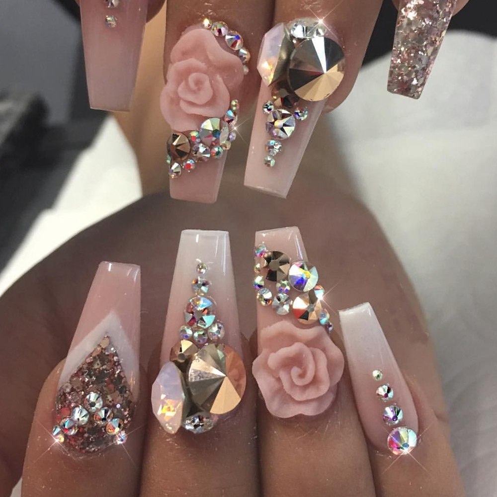 Длинные ногти со стразами