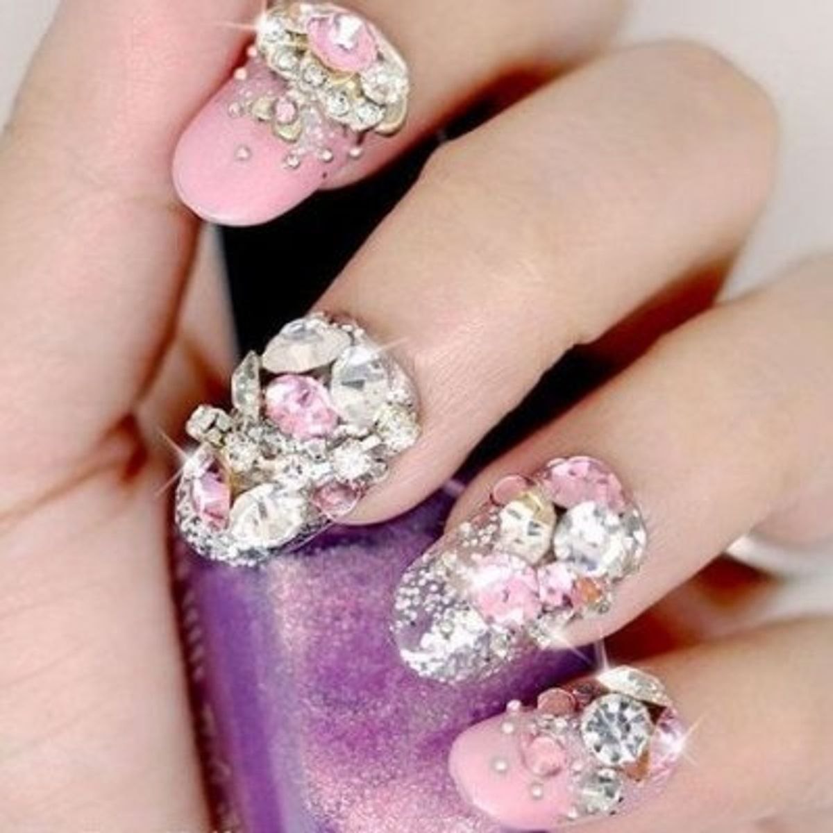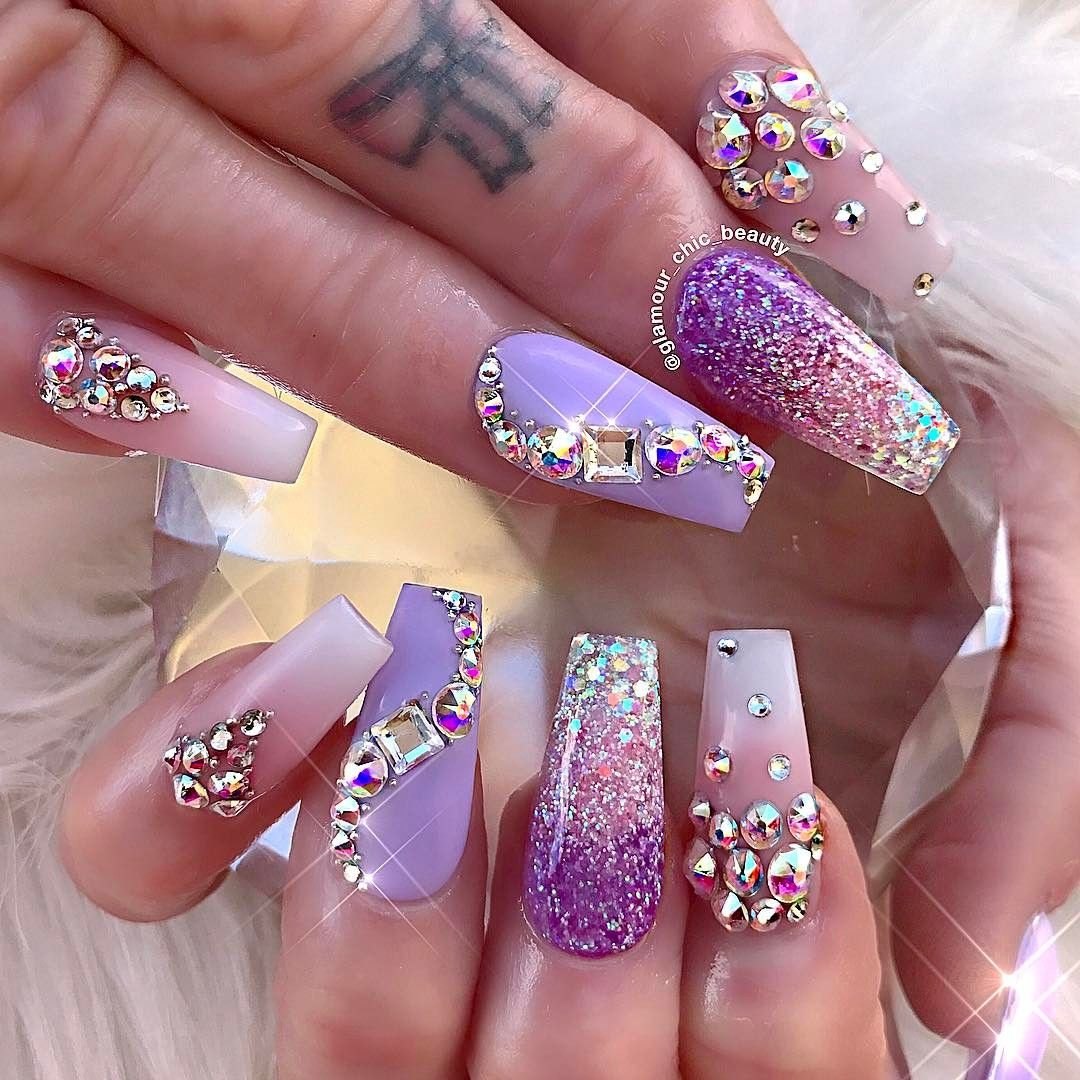 Маникюр со стразами и блестками