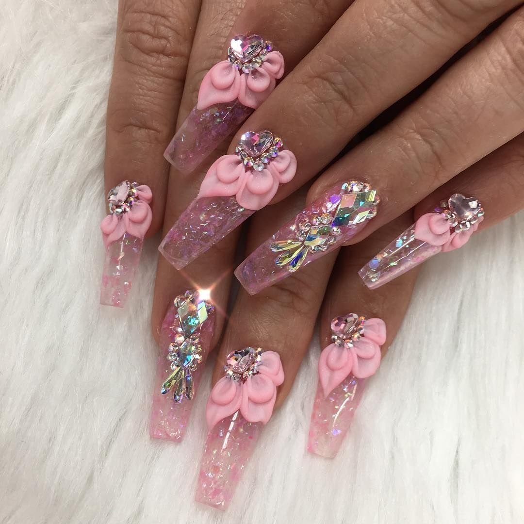 Розовый маникюр на длинные ногти