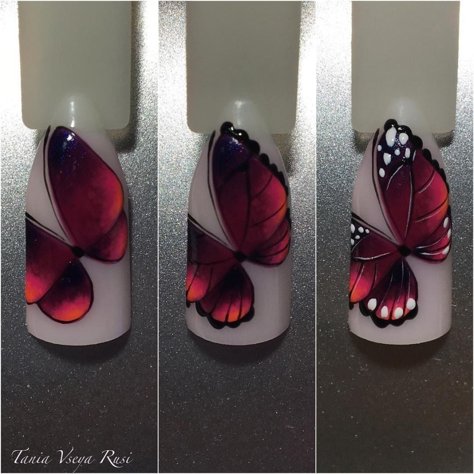 Маникюр с объемной бабочкой