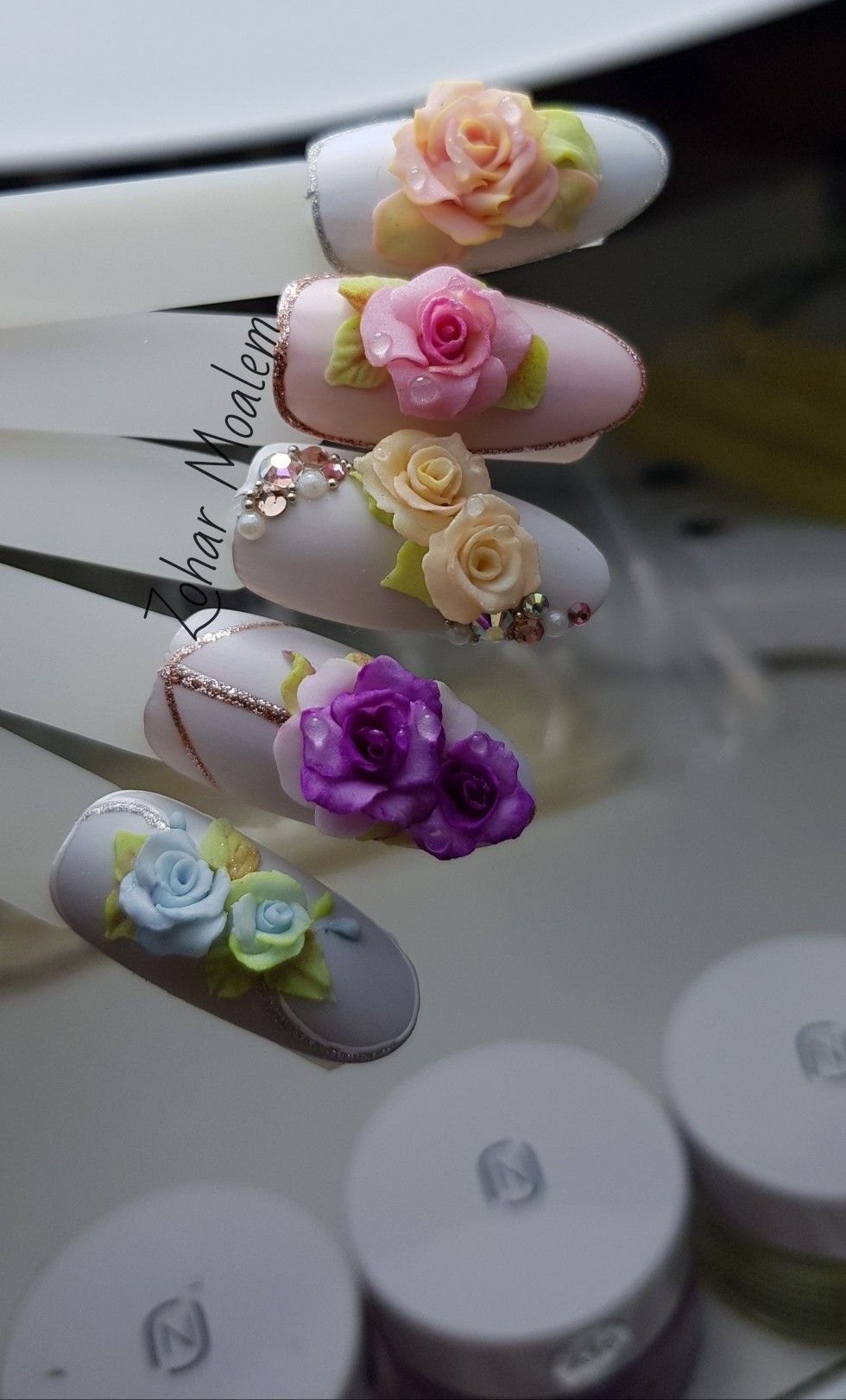 Объемные цветы на ногтях