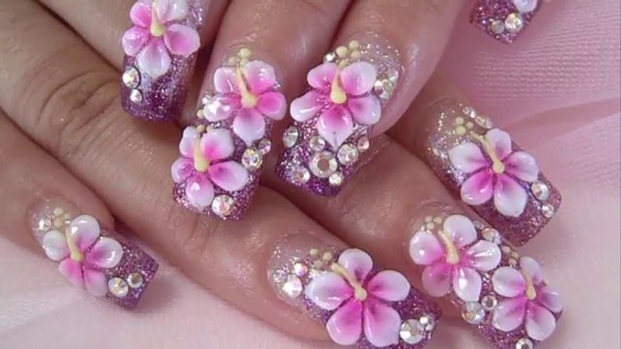 Акриловые цветы на ногтях