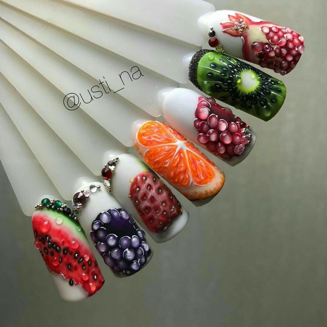 Объемные фрукты на ногтях