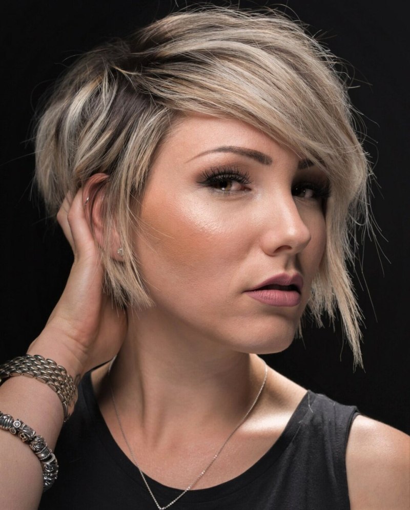Боб-Пикси с асимметрией стрижка на короткие волосы