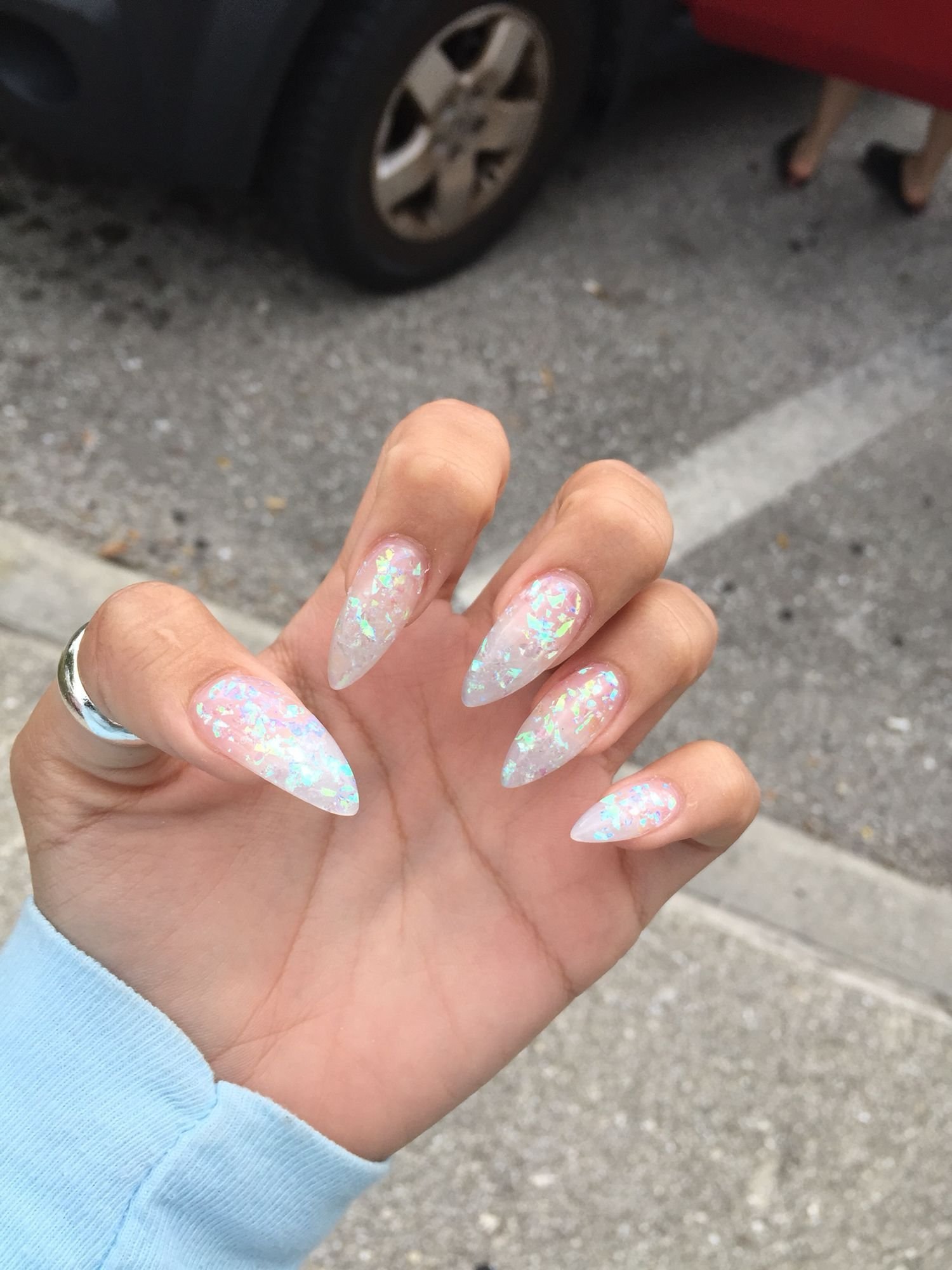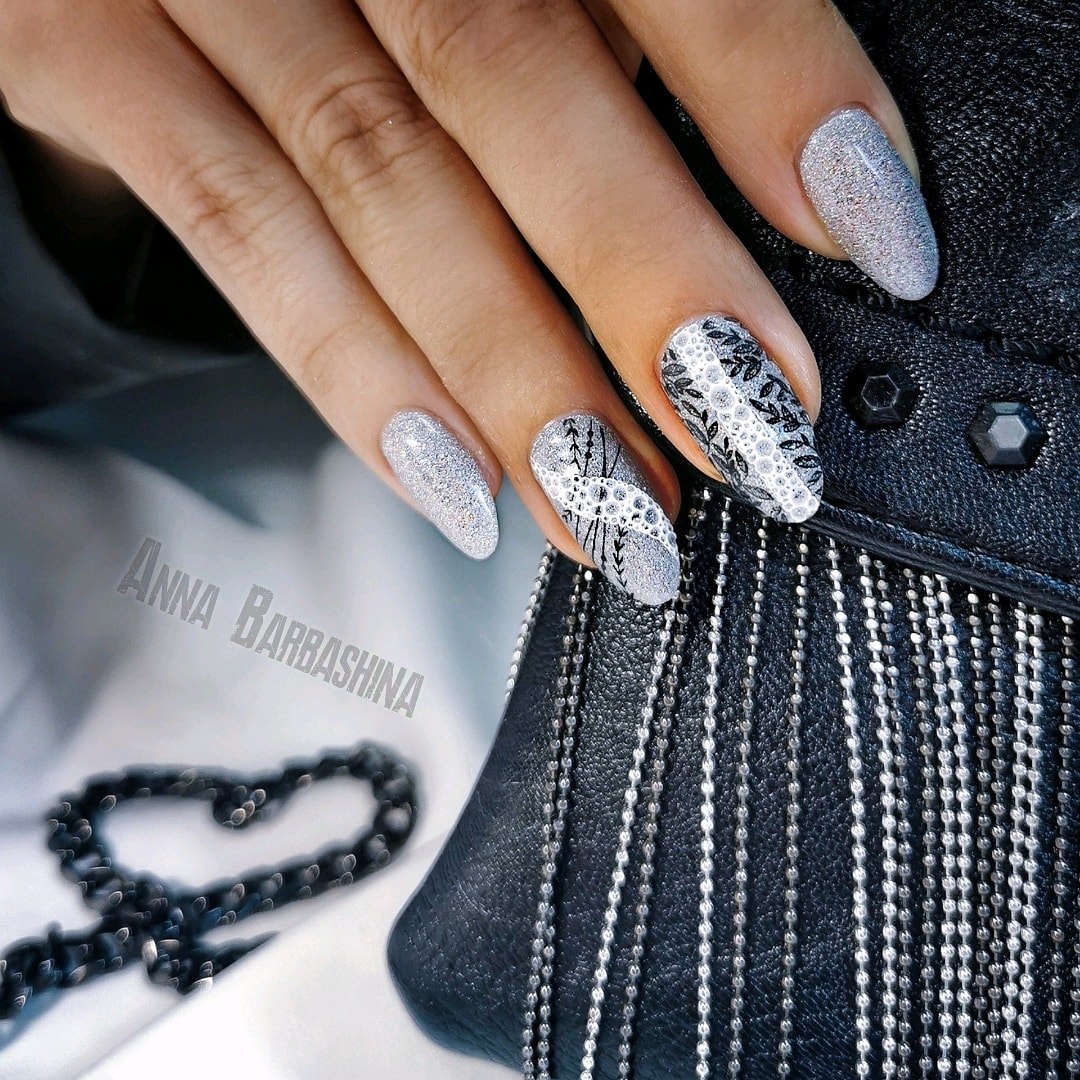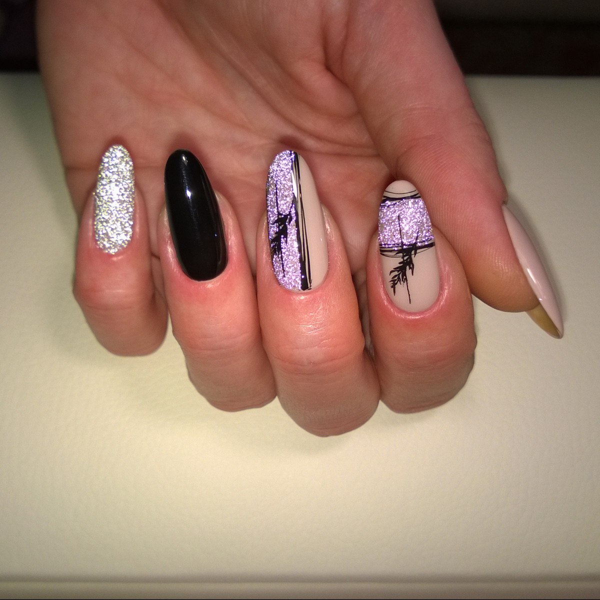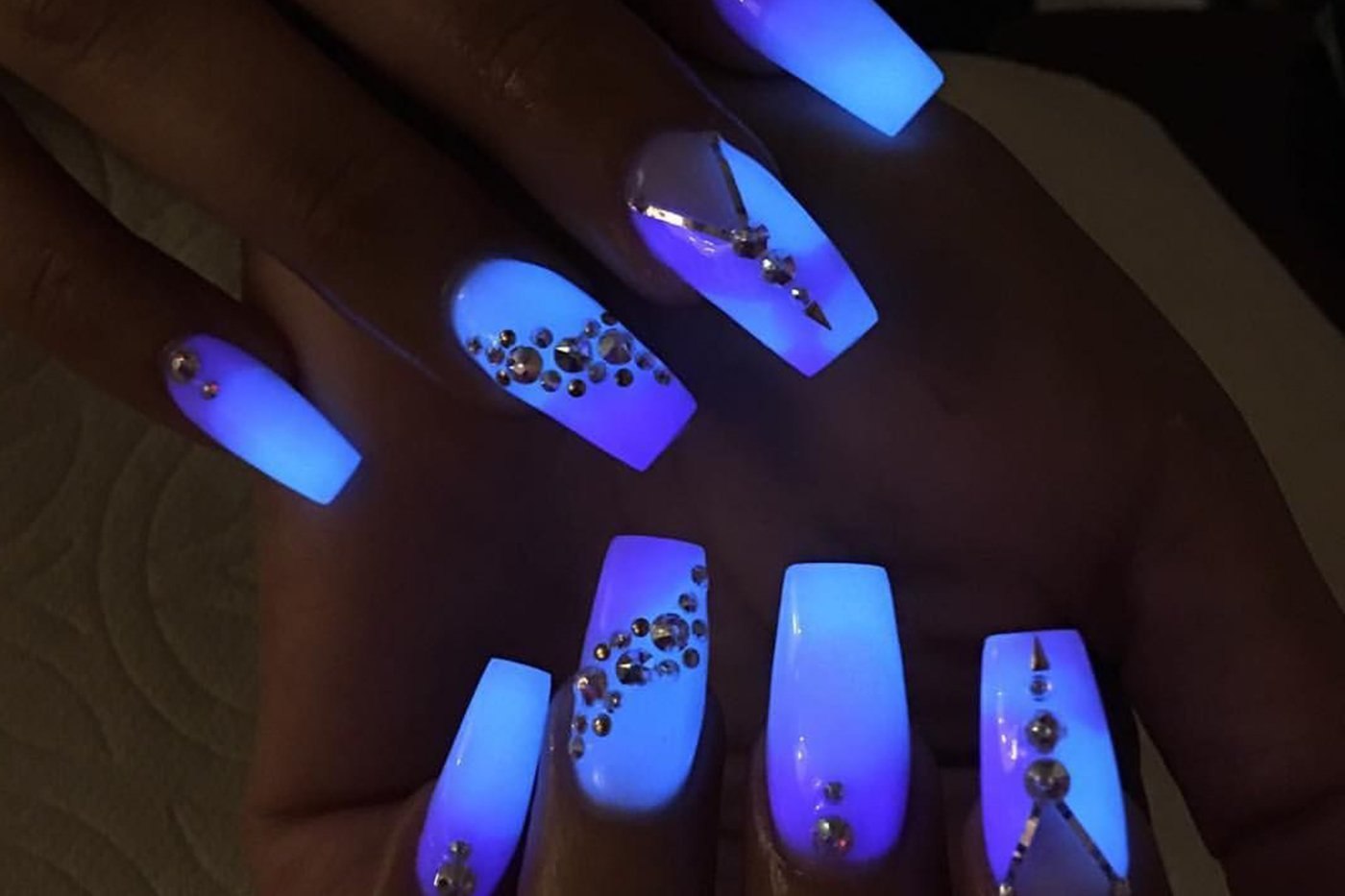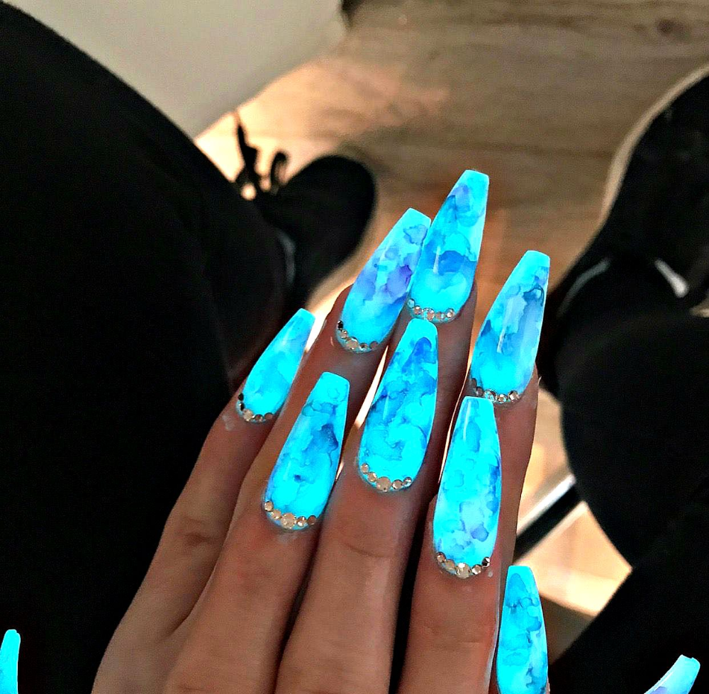 Маникюр со светоотражающим лаком дизайн на длинные ногти