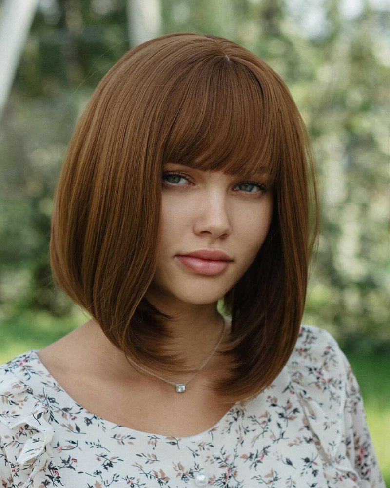 Каре на русые волосы с челкой
