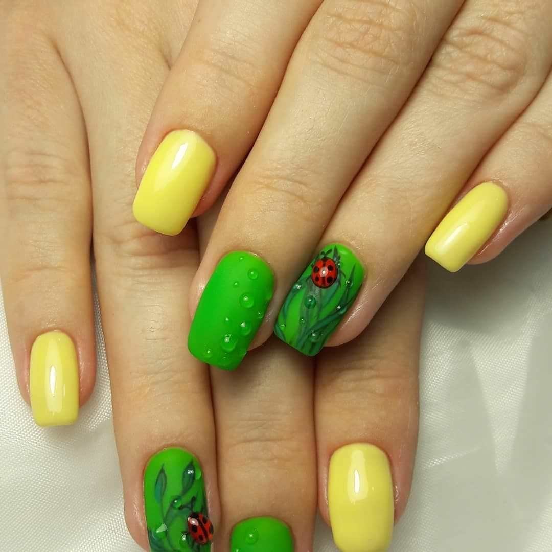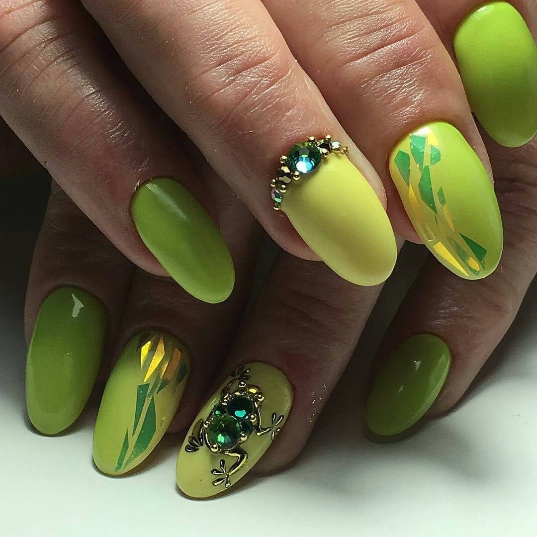 Желто-зеленый маникюр