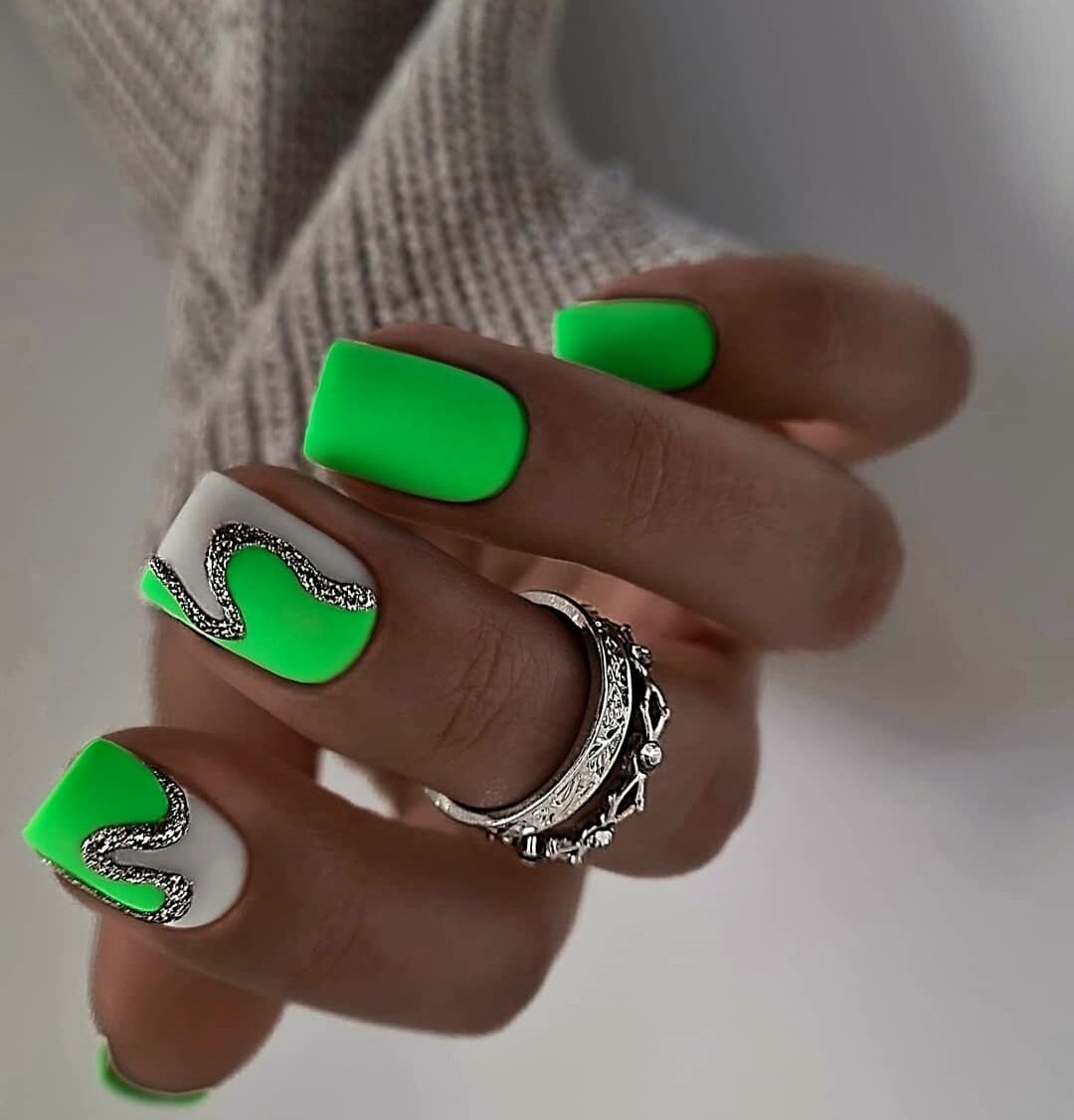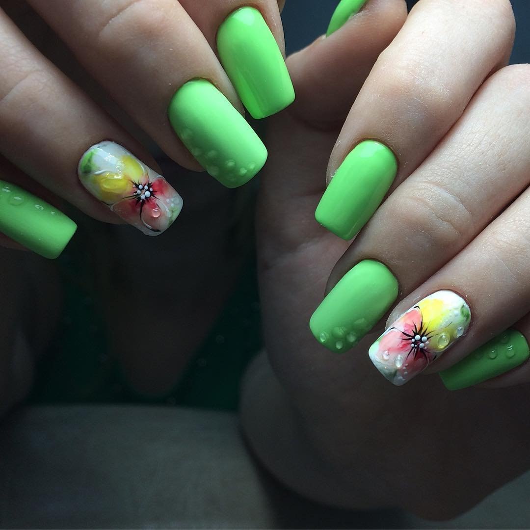 Ногти яркие летние салатовые