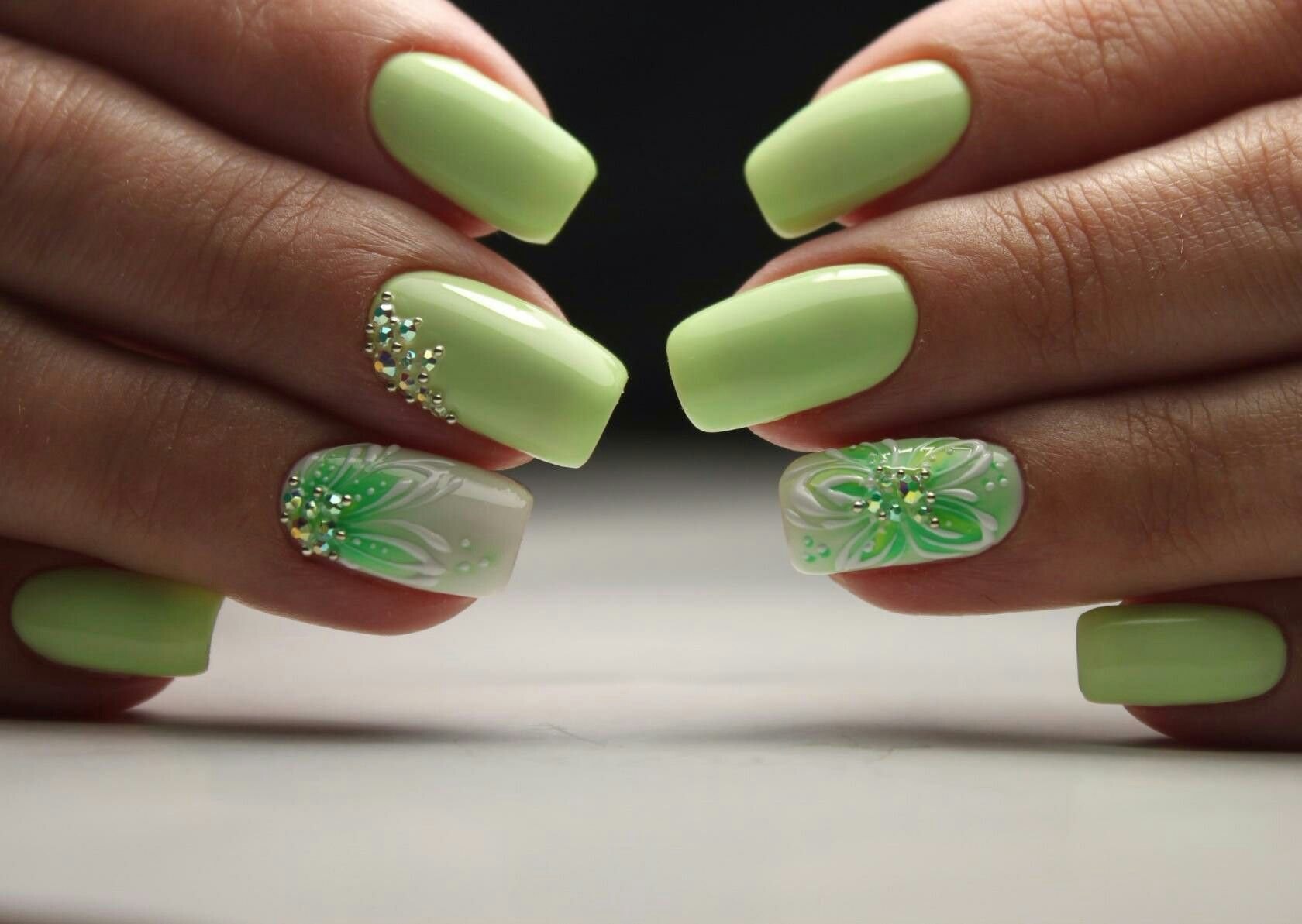 Маникюр салатовый самый красивый