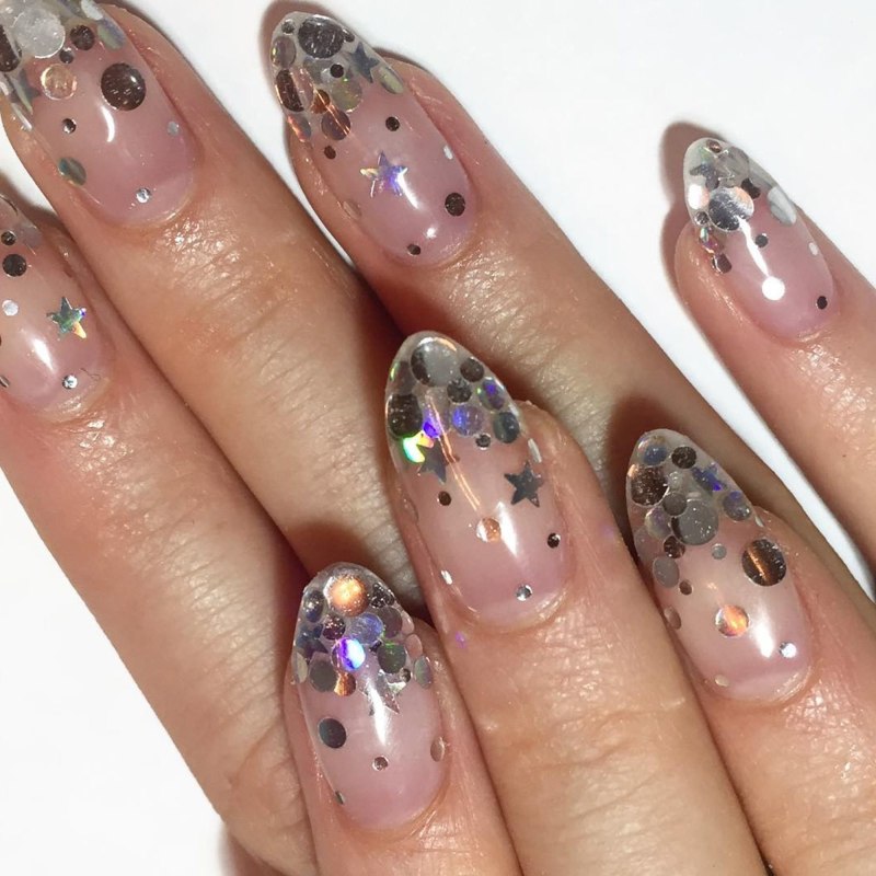Прозрачный маникюр с блестками
