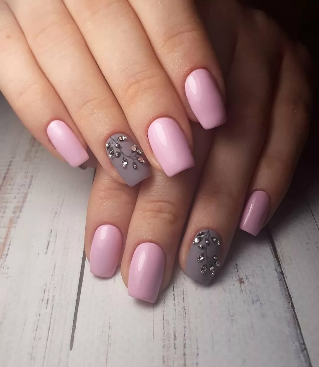 Серо-розовый маникюр