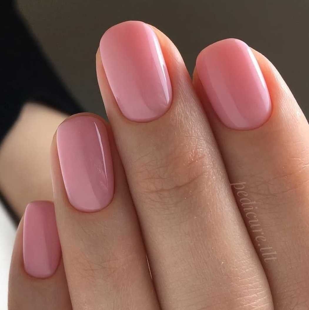 Розовый маникюр однотонный