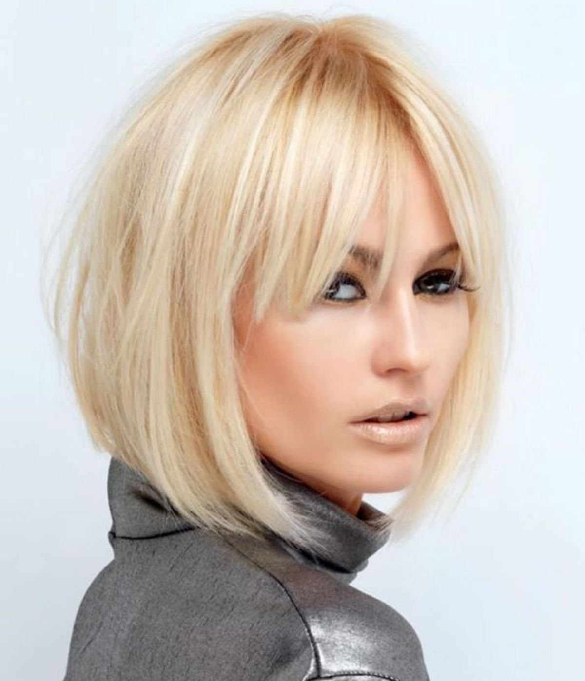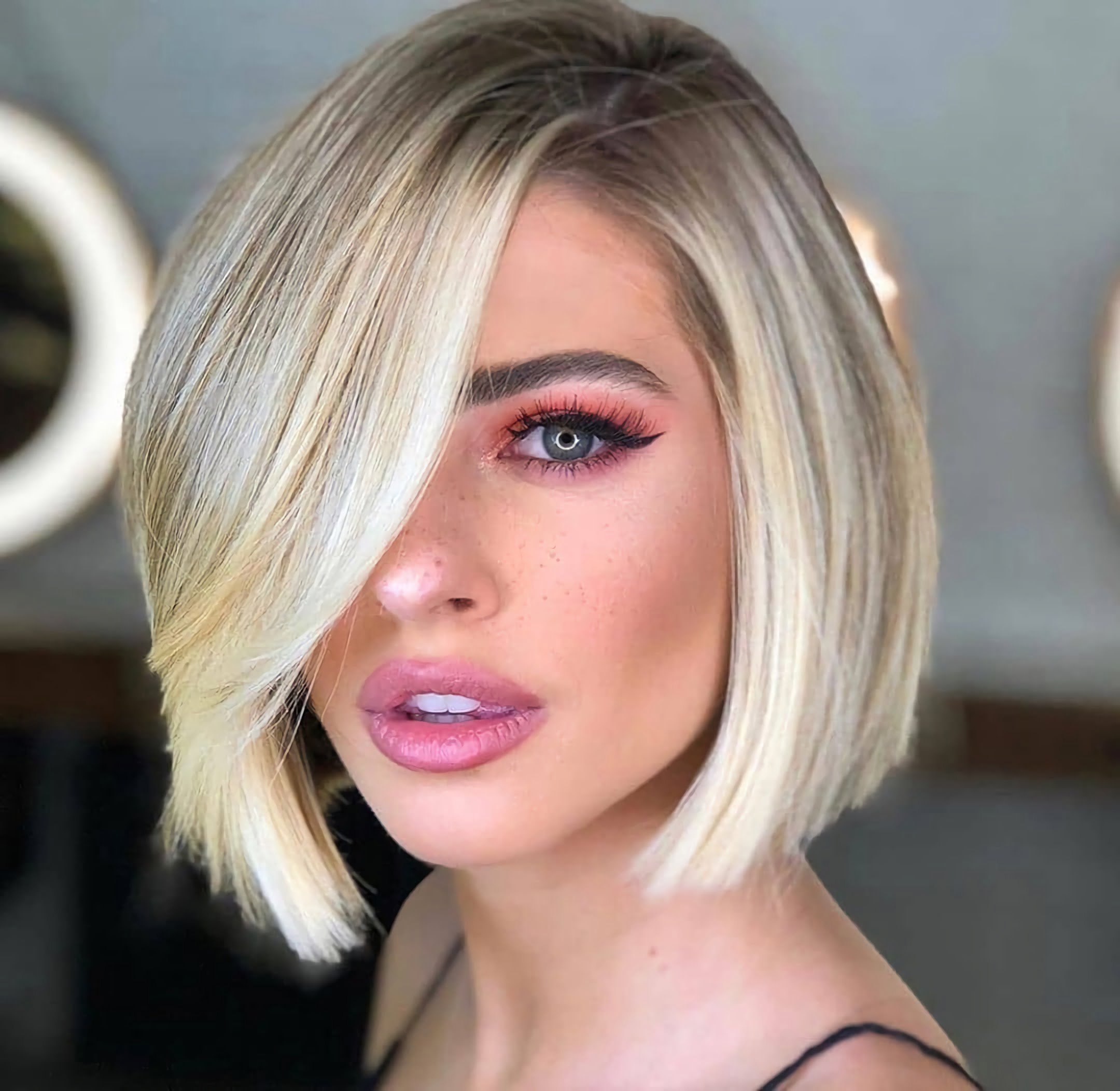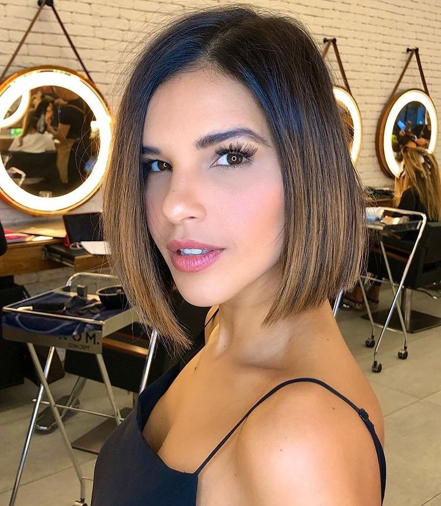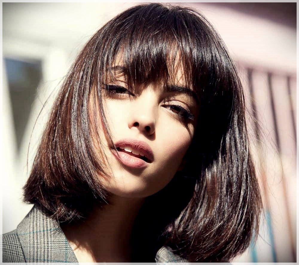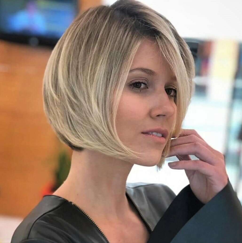 Стрижка Боб-каре на средние волосы с удлиненной челкой