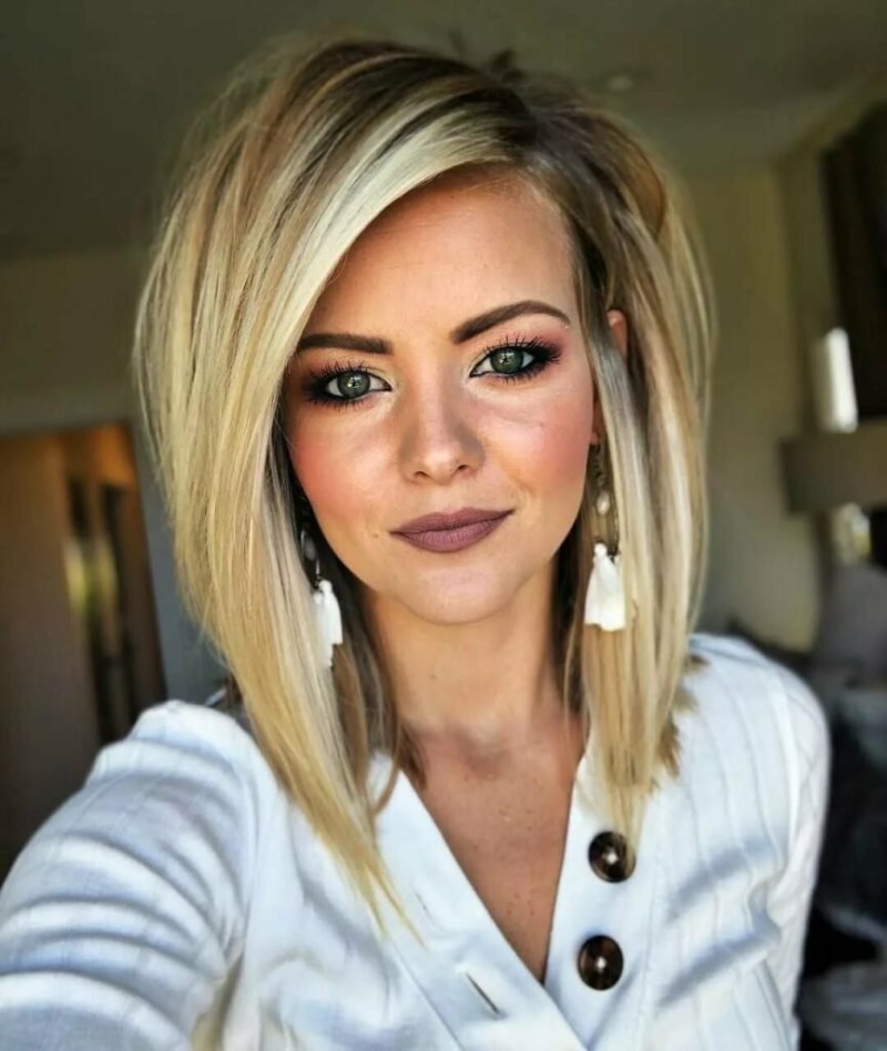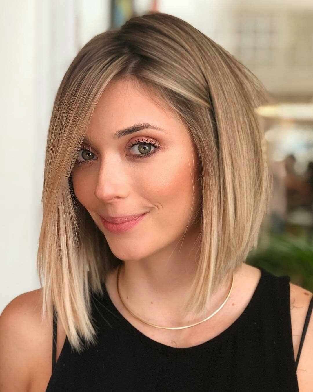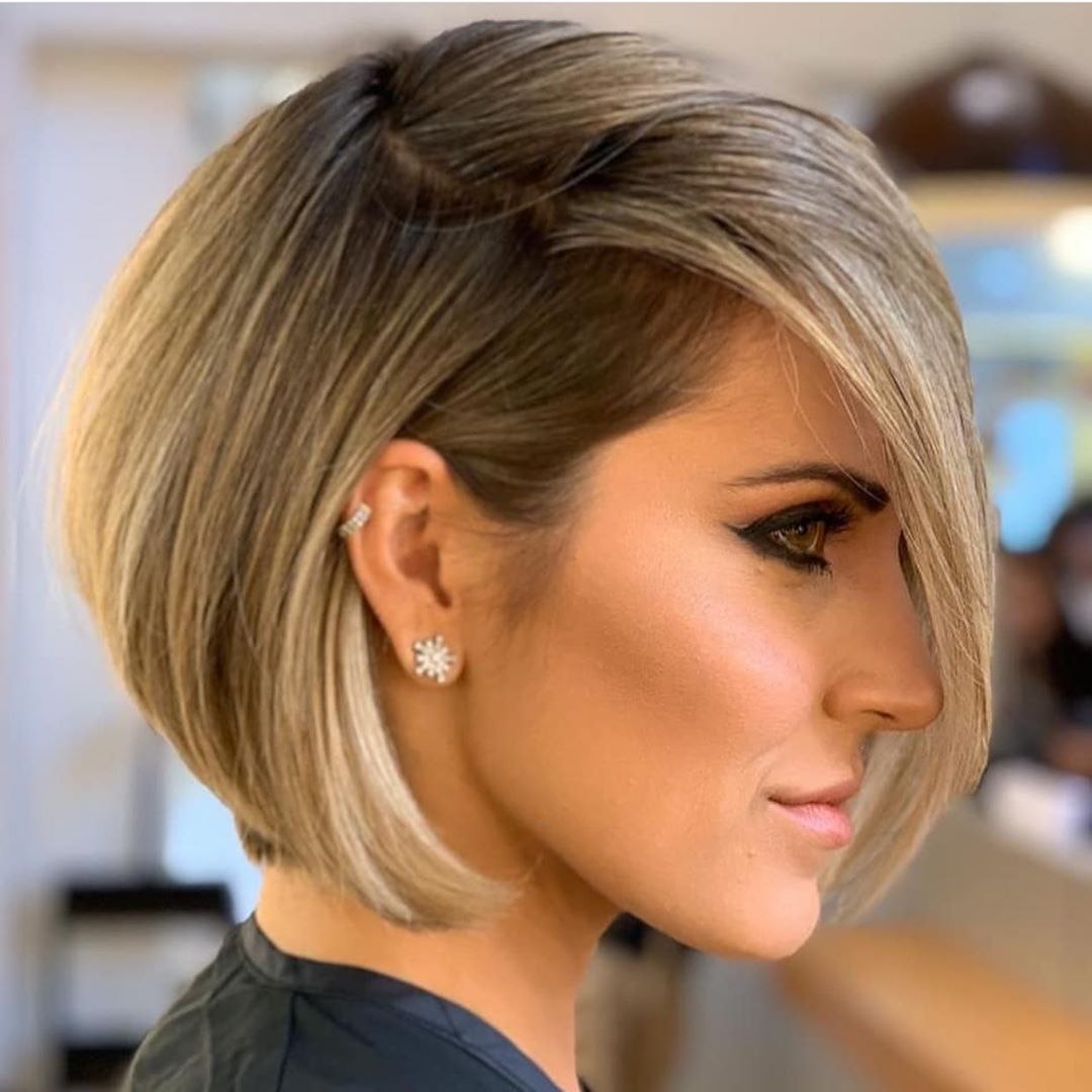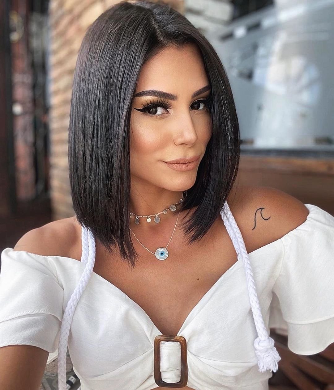 Стрижка Боб-каре на средние волосы с удлиненной челкой