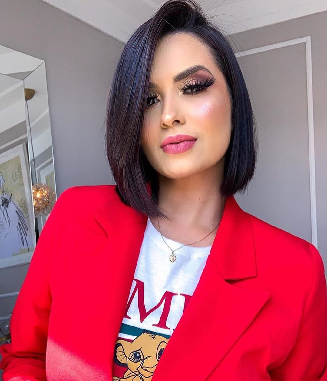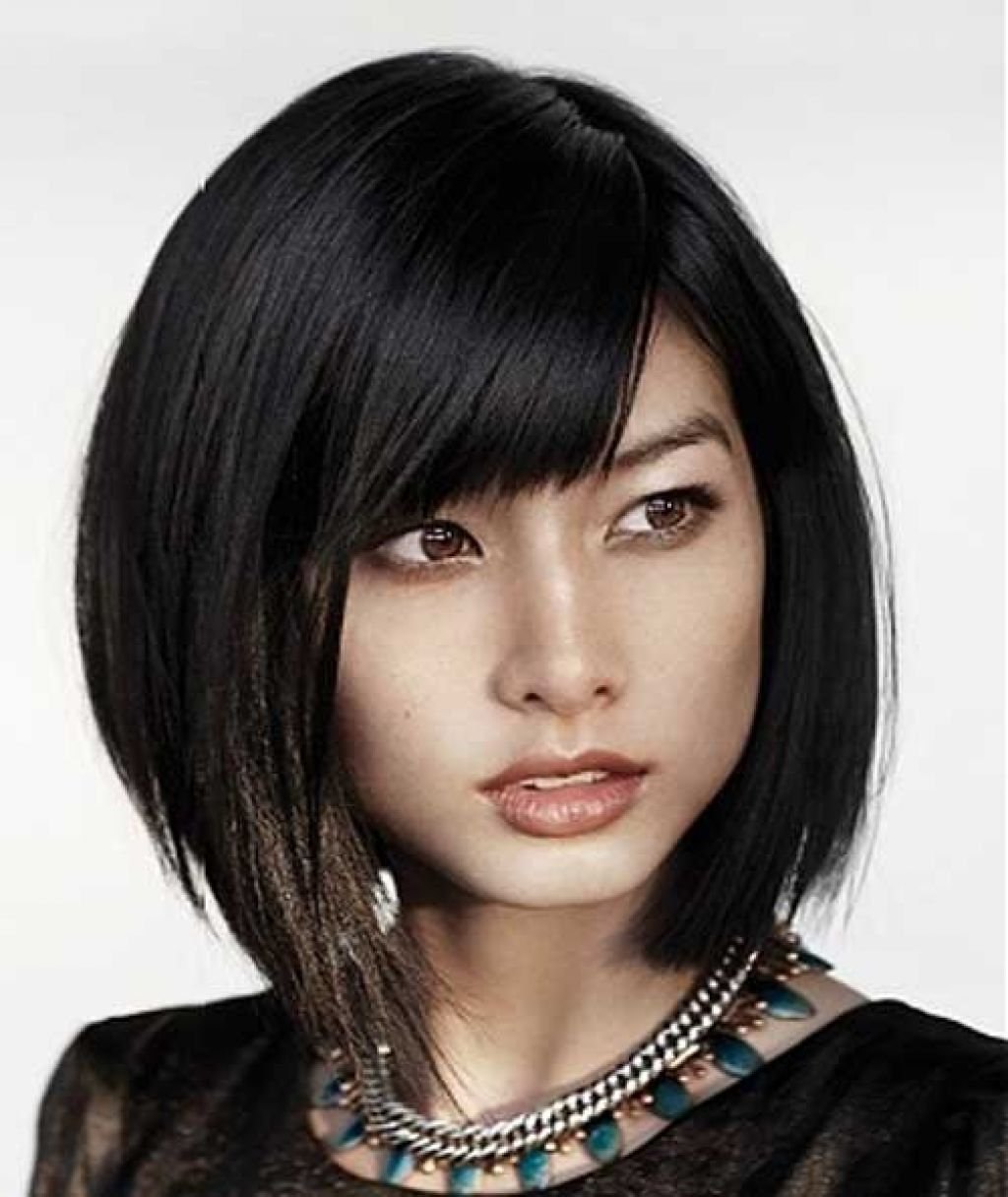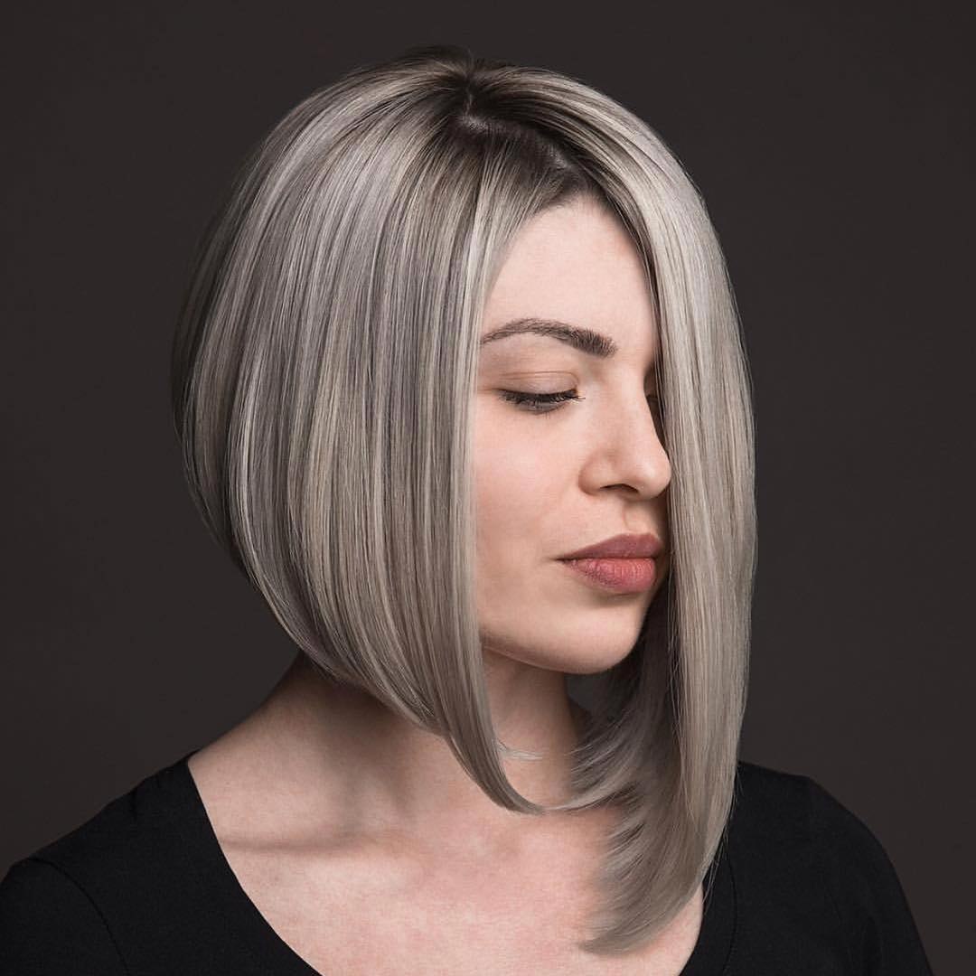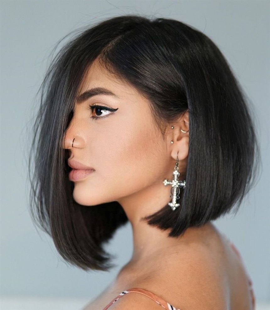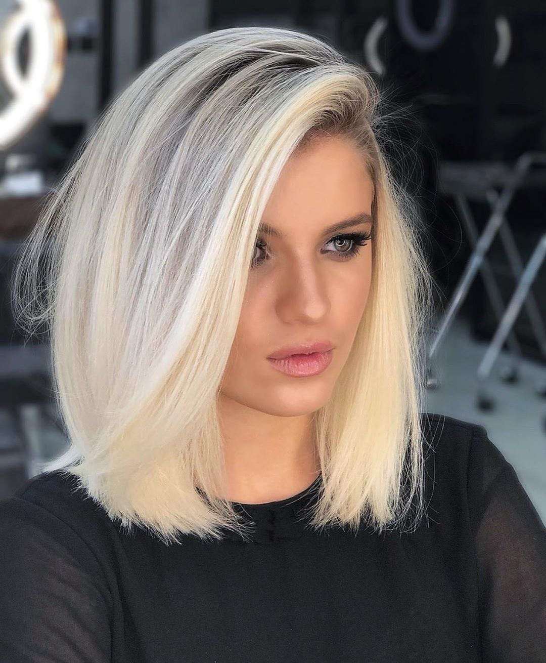 Стрижка Боб-каре на средние волосы с удлиненной челкой