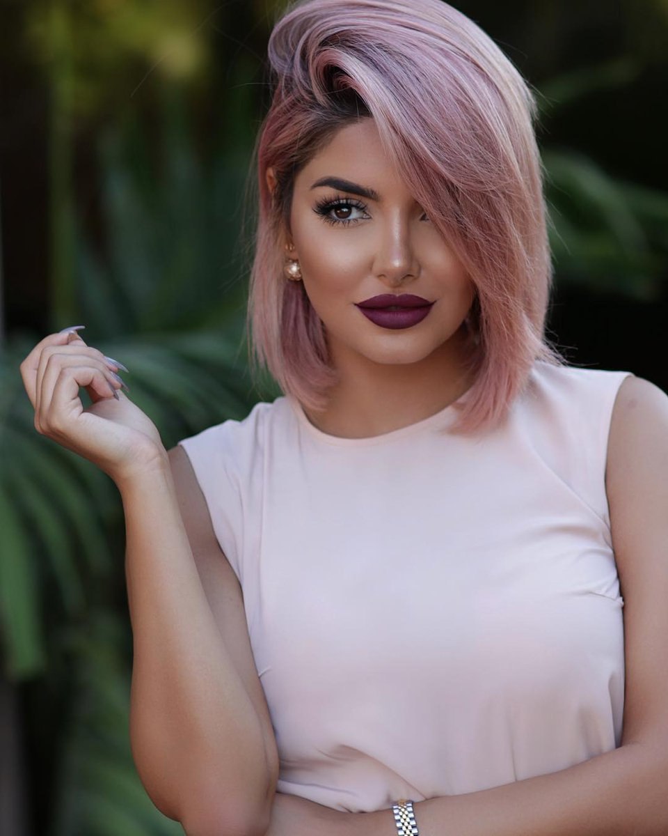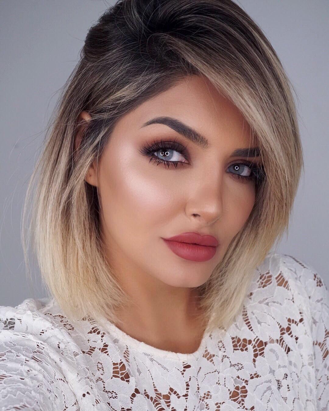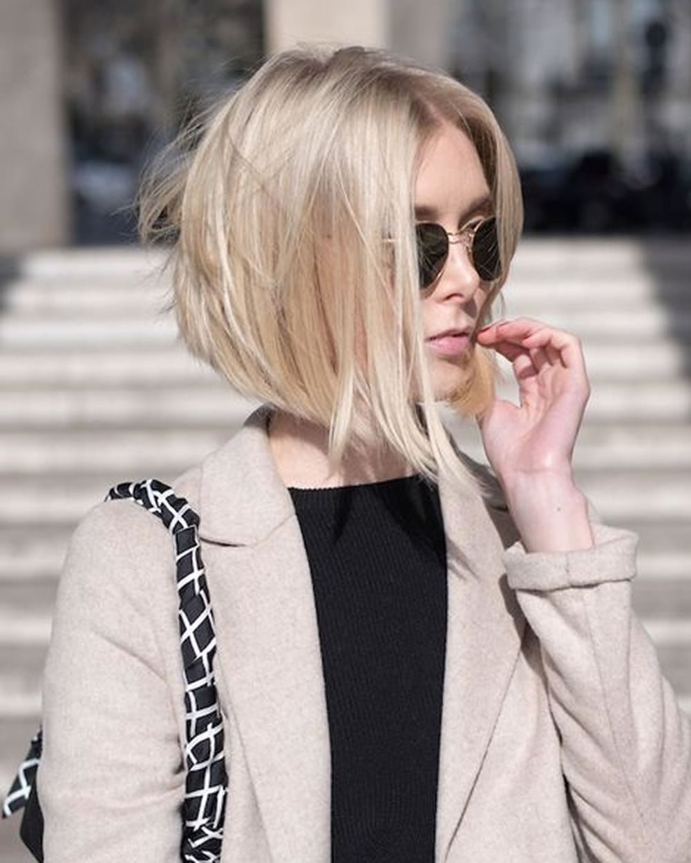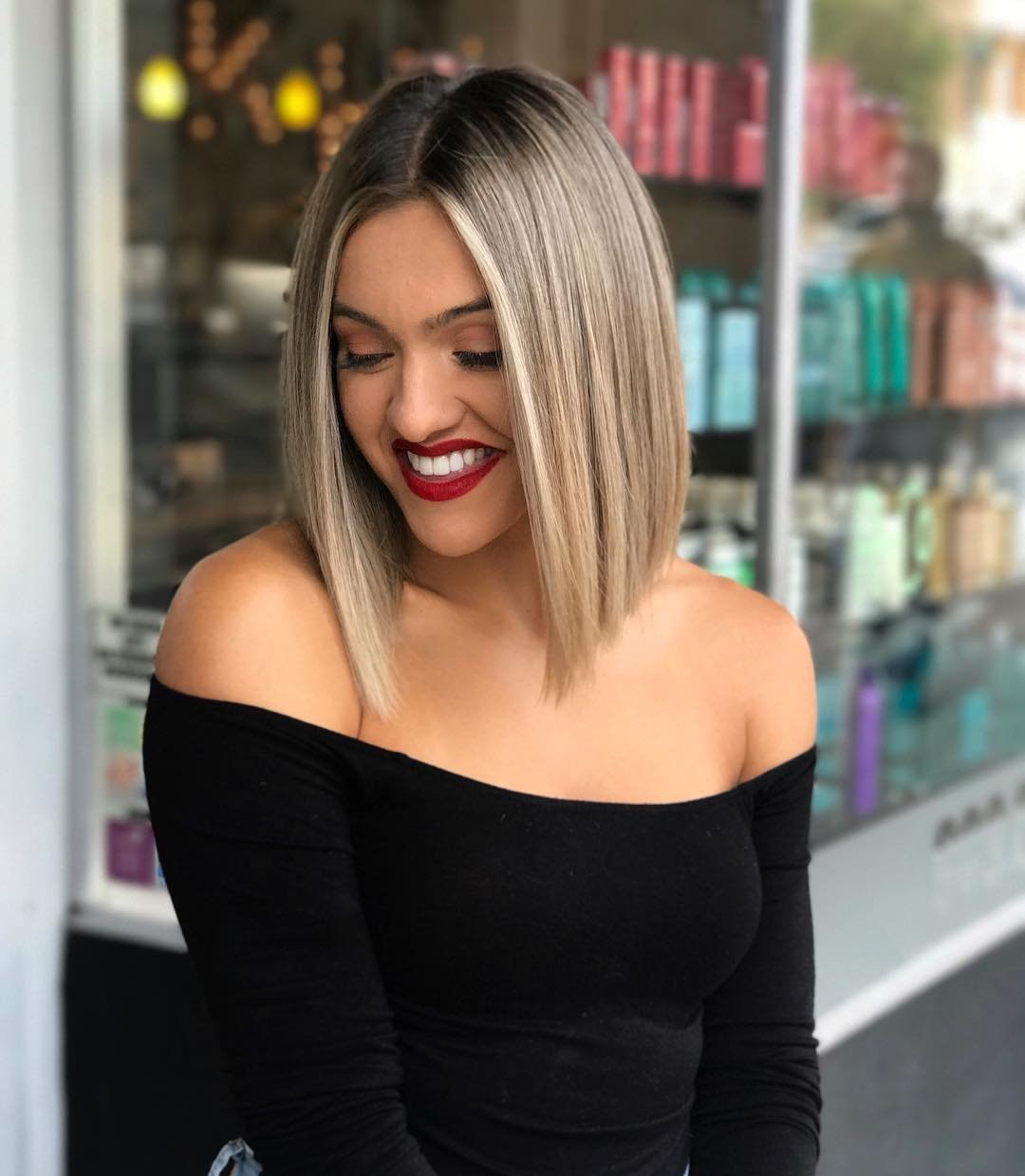 Стрижка Боб-каре на средние волосы с удлиненной челкой