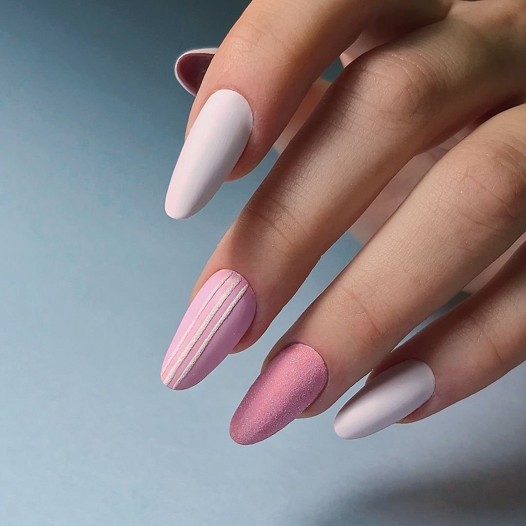 Маникюр нежный 2021 миндалевидные ногти матовый