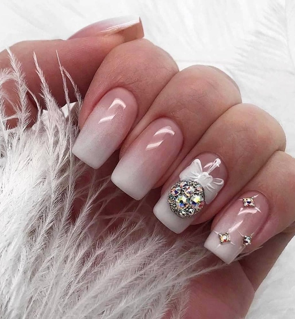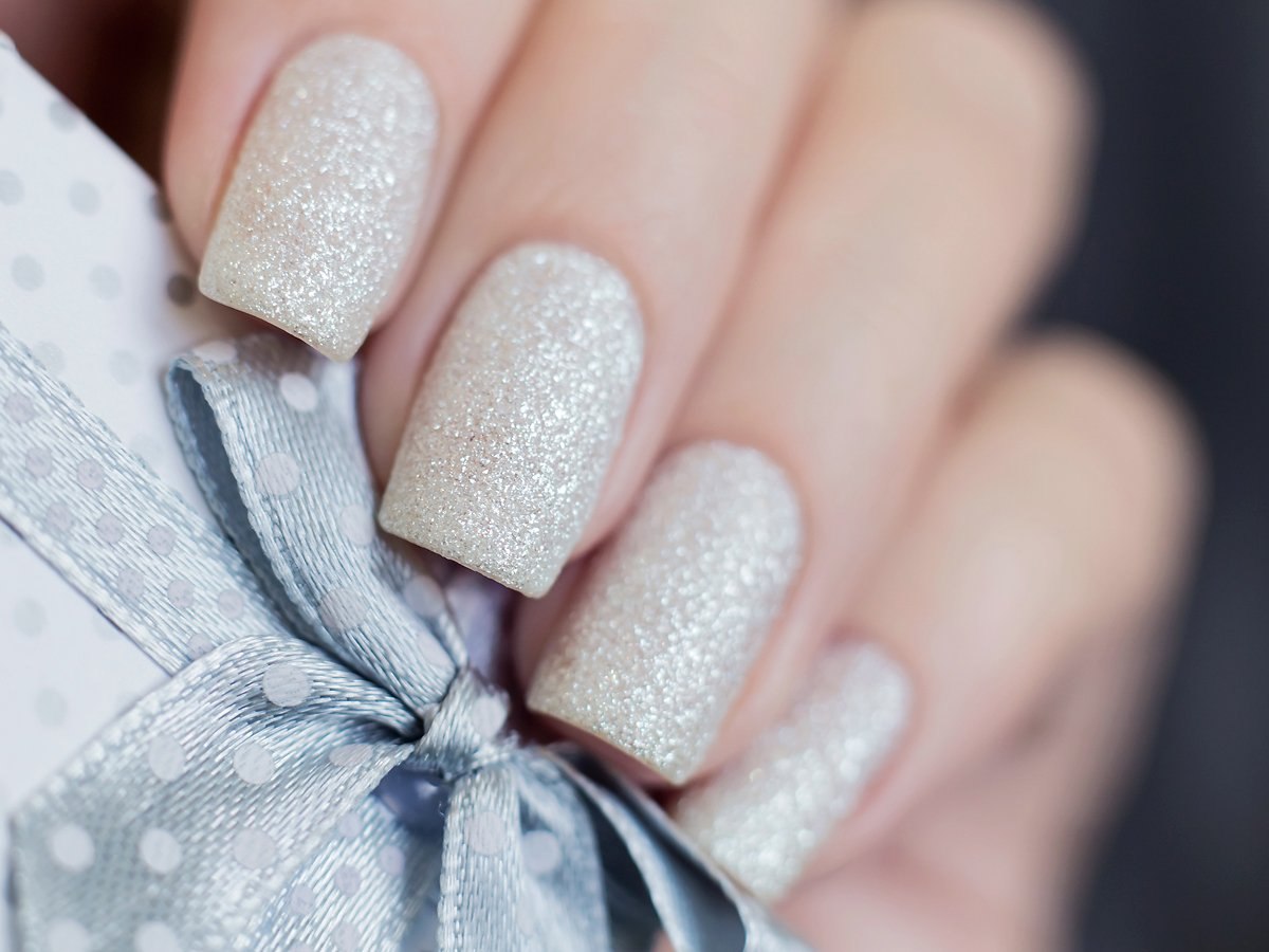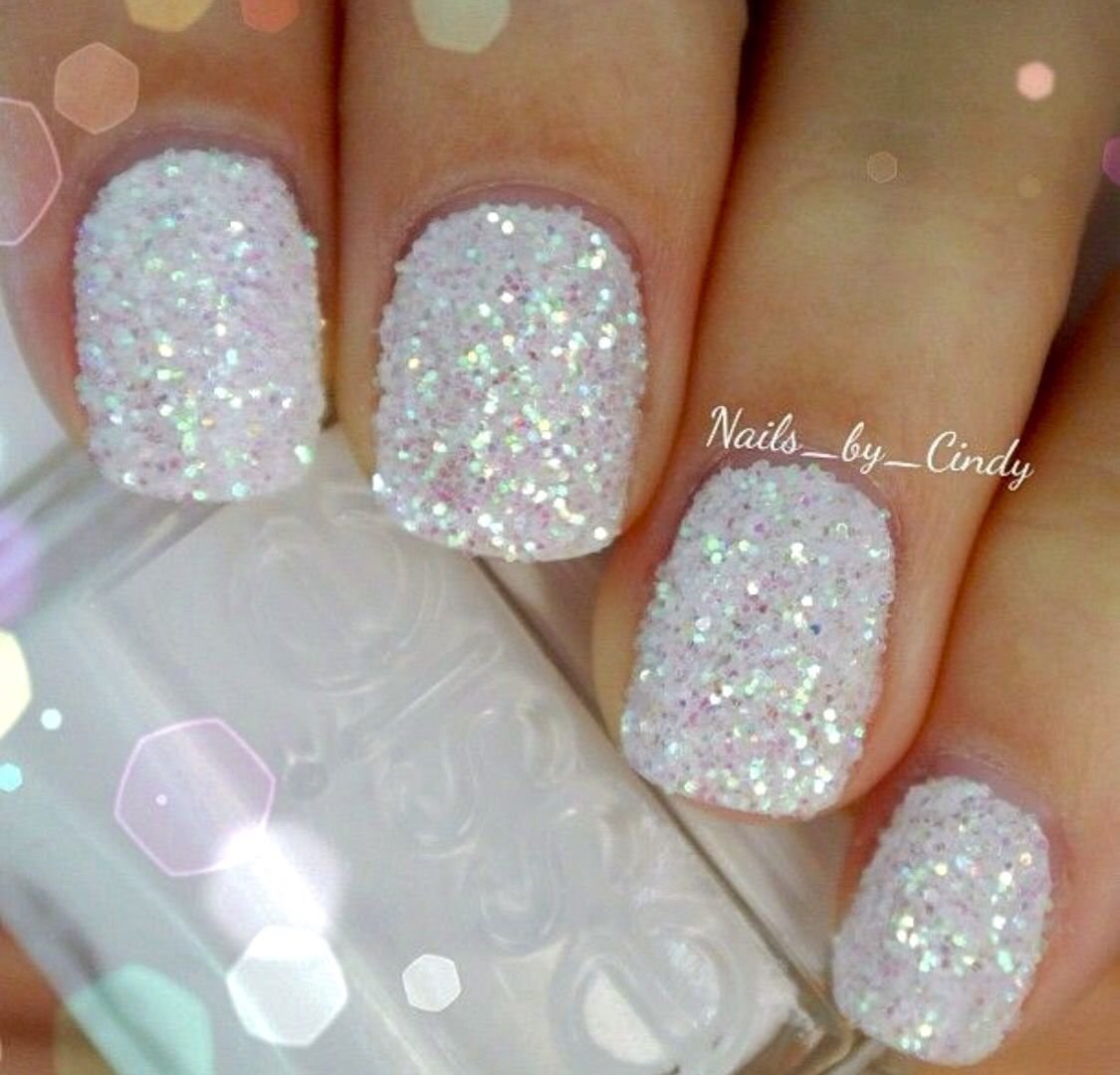 Ногти белые с блестками