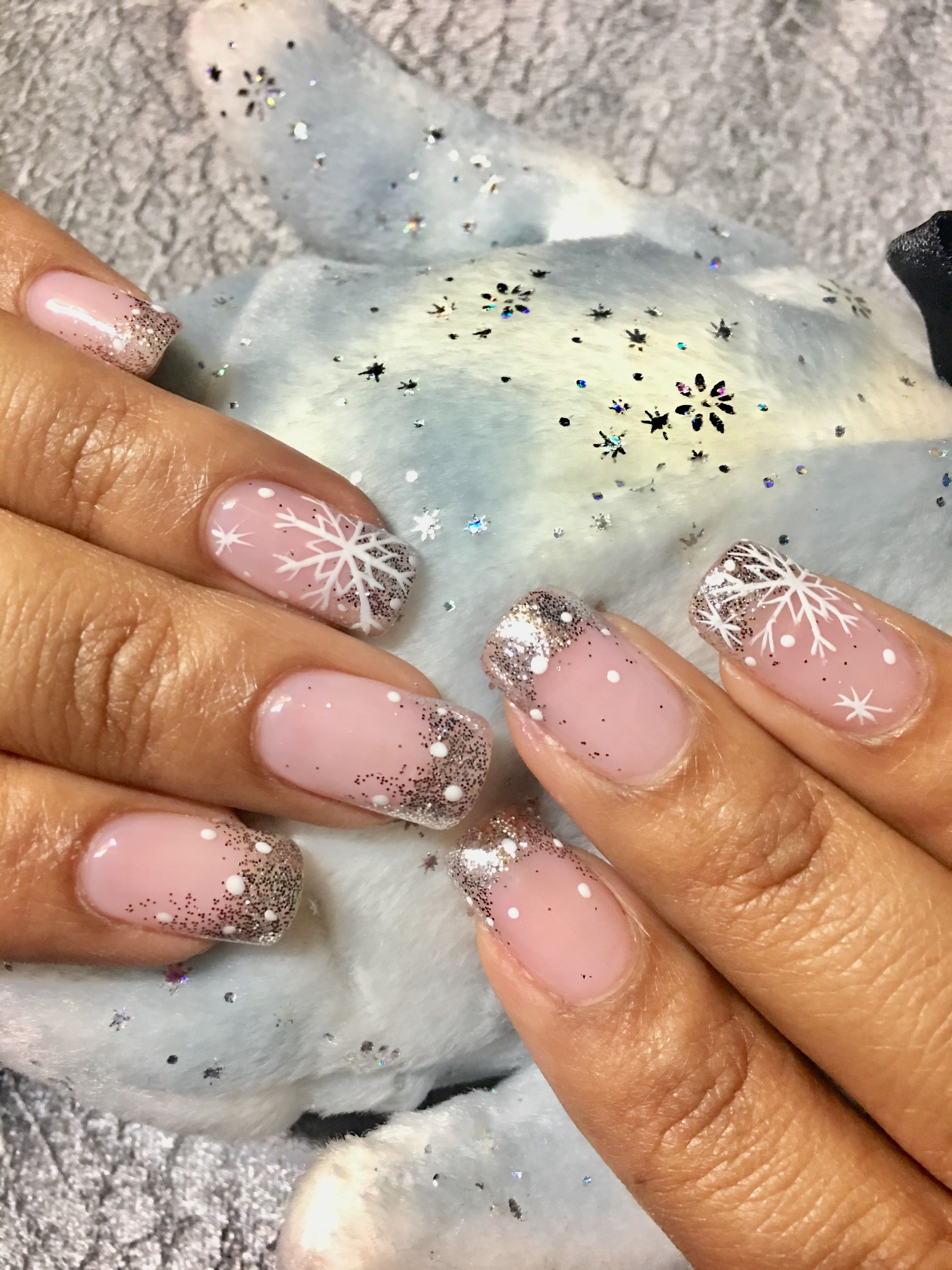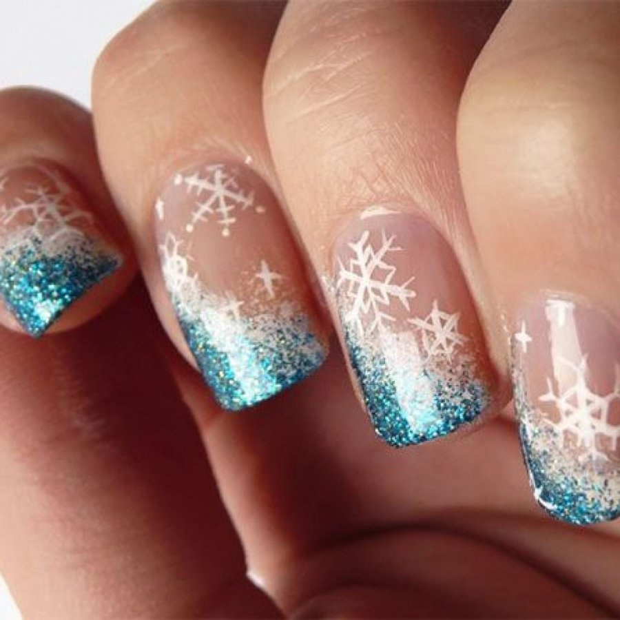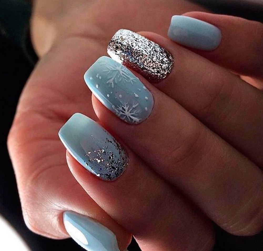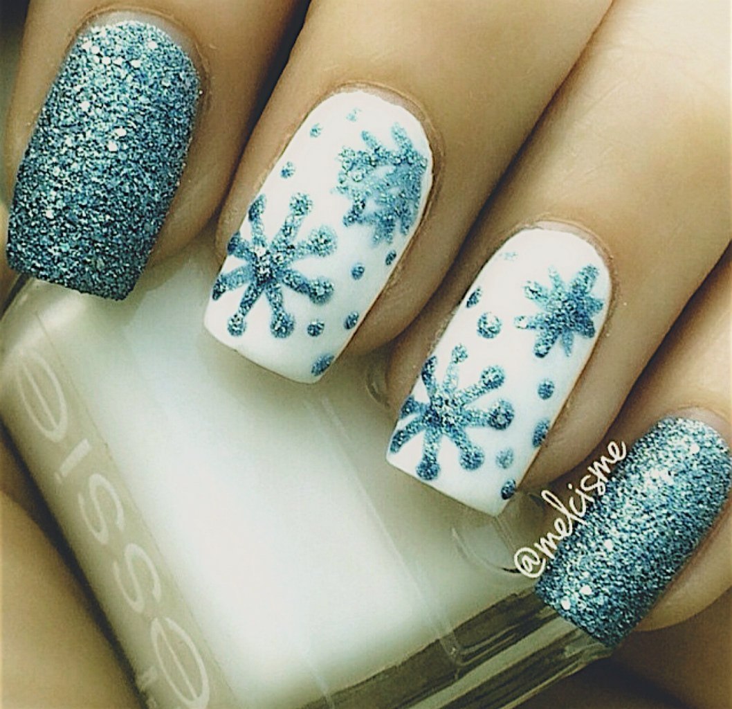 Маникюр со снежинками и блестками