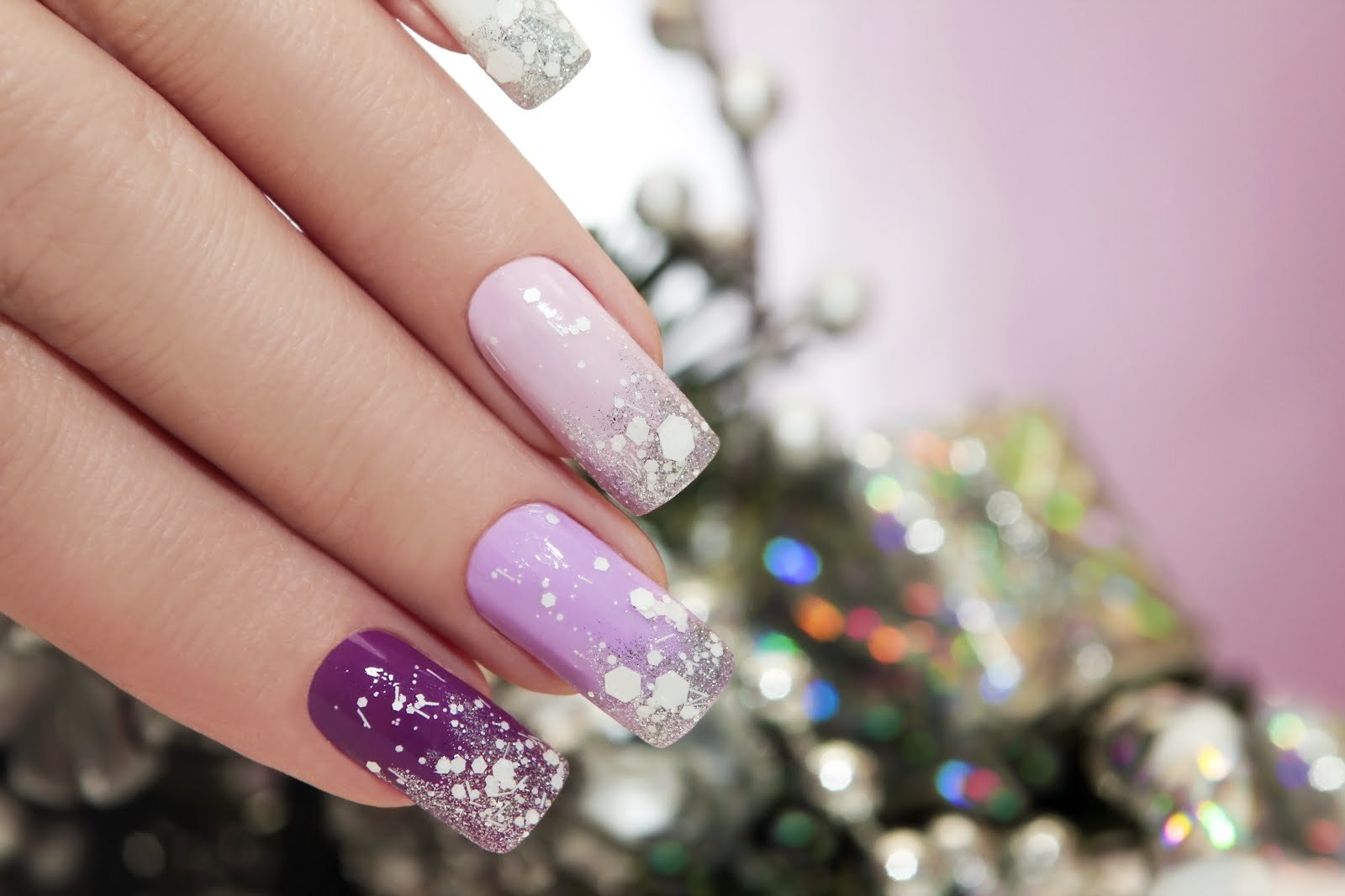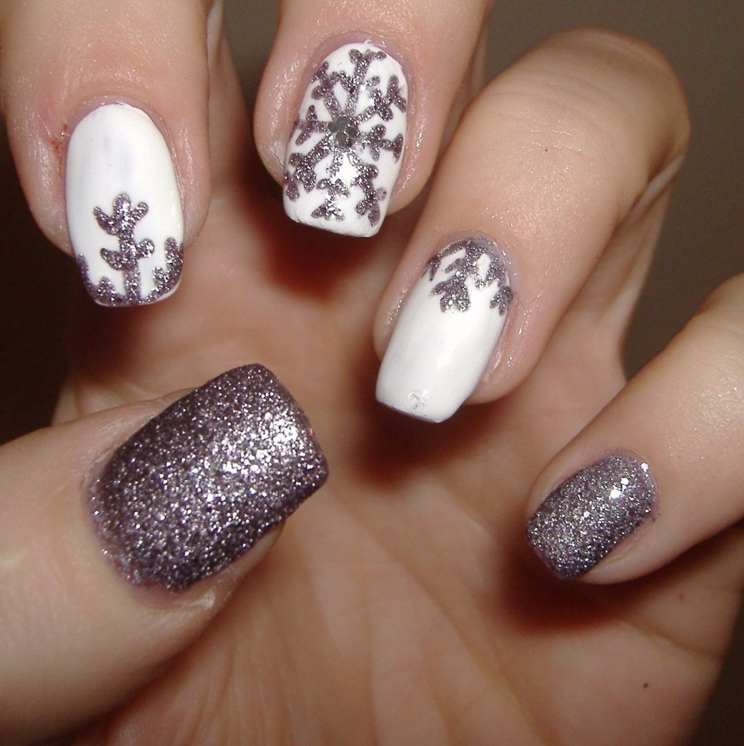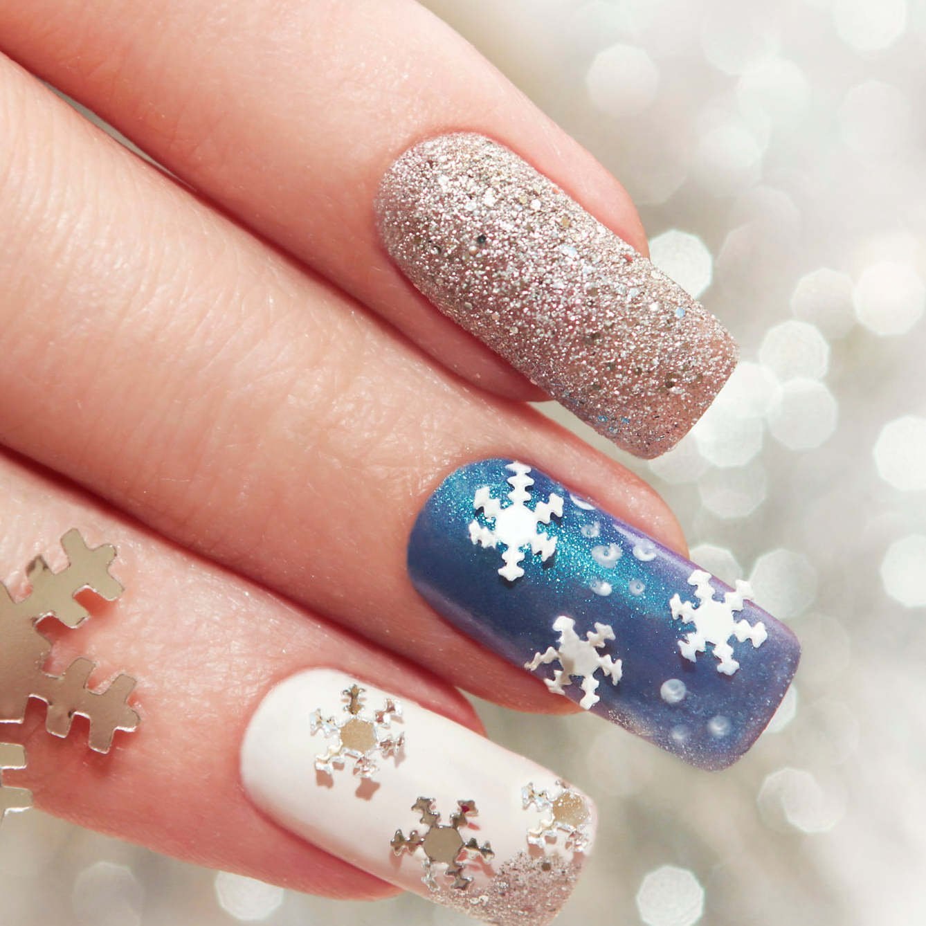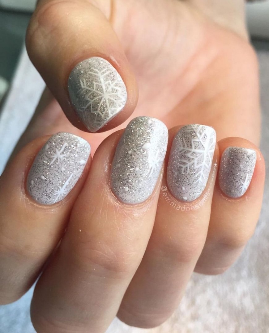 Маникюр со снежинками и блестками