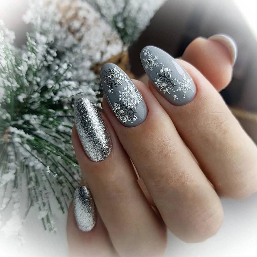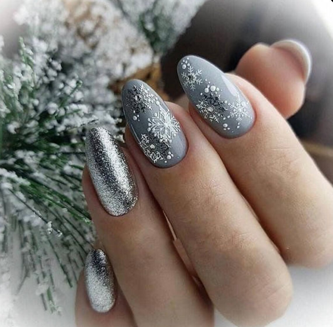 Новогодние серебристые ногти