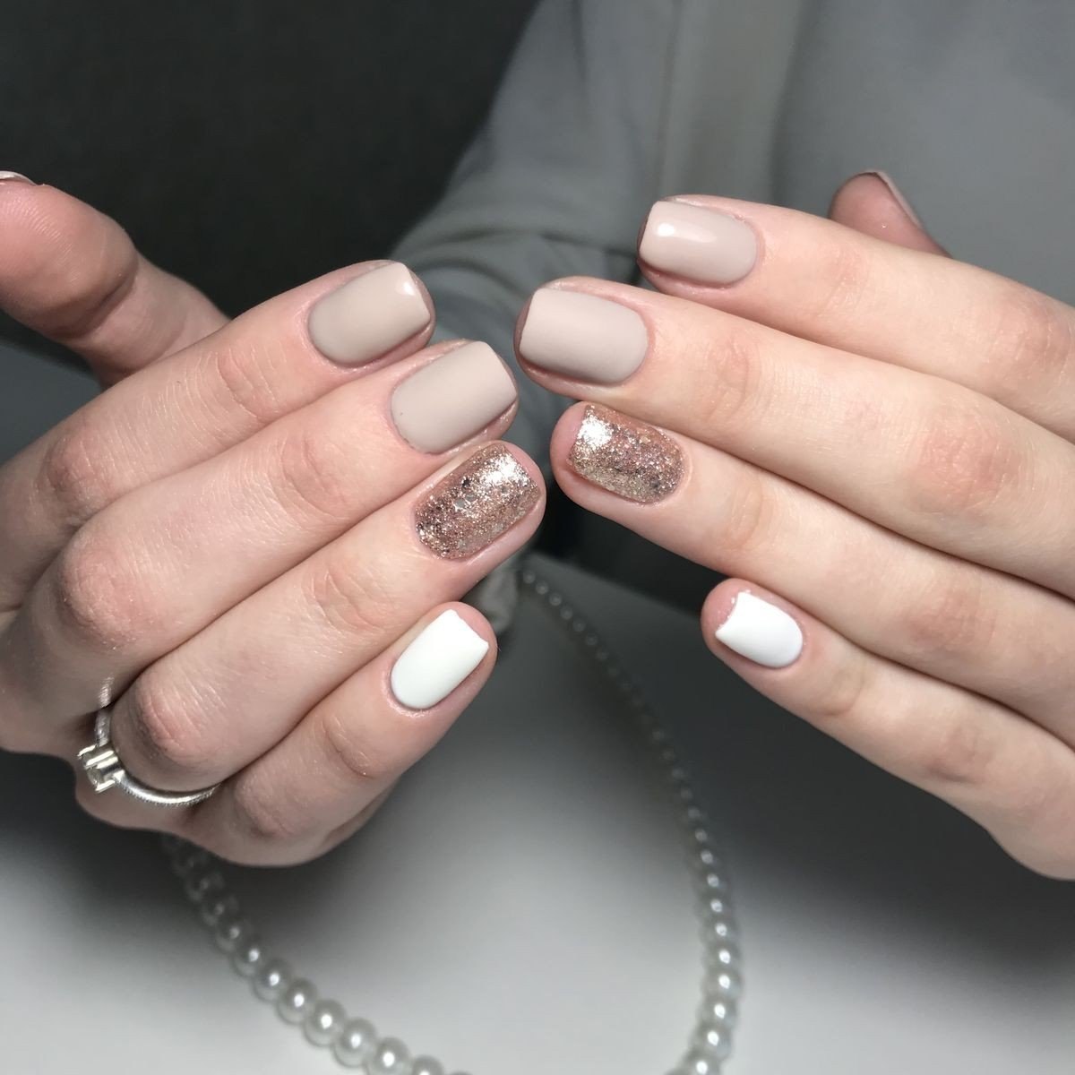 Маникюр в бежевых тонах на короткие ногти