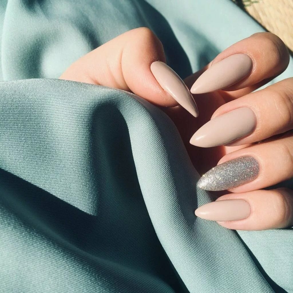 Ногти бежевые с блестками