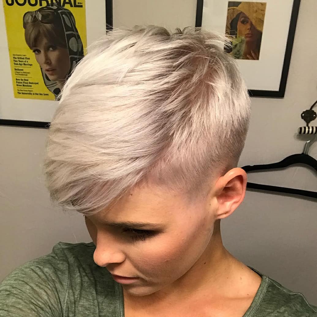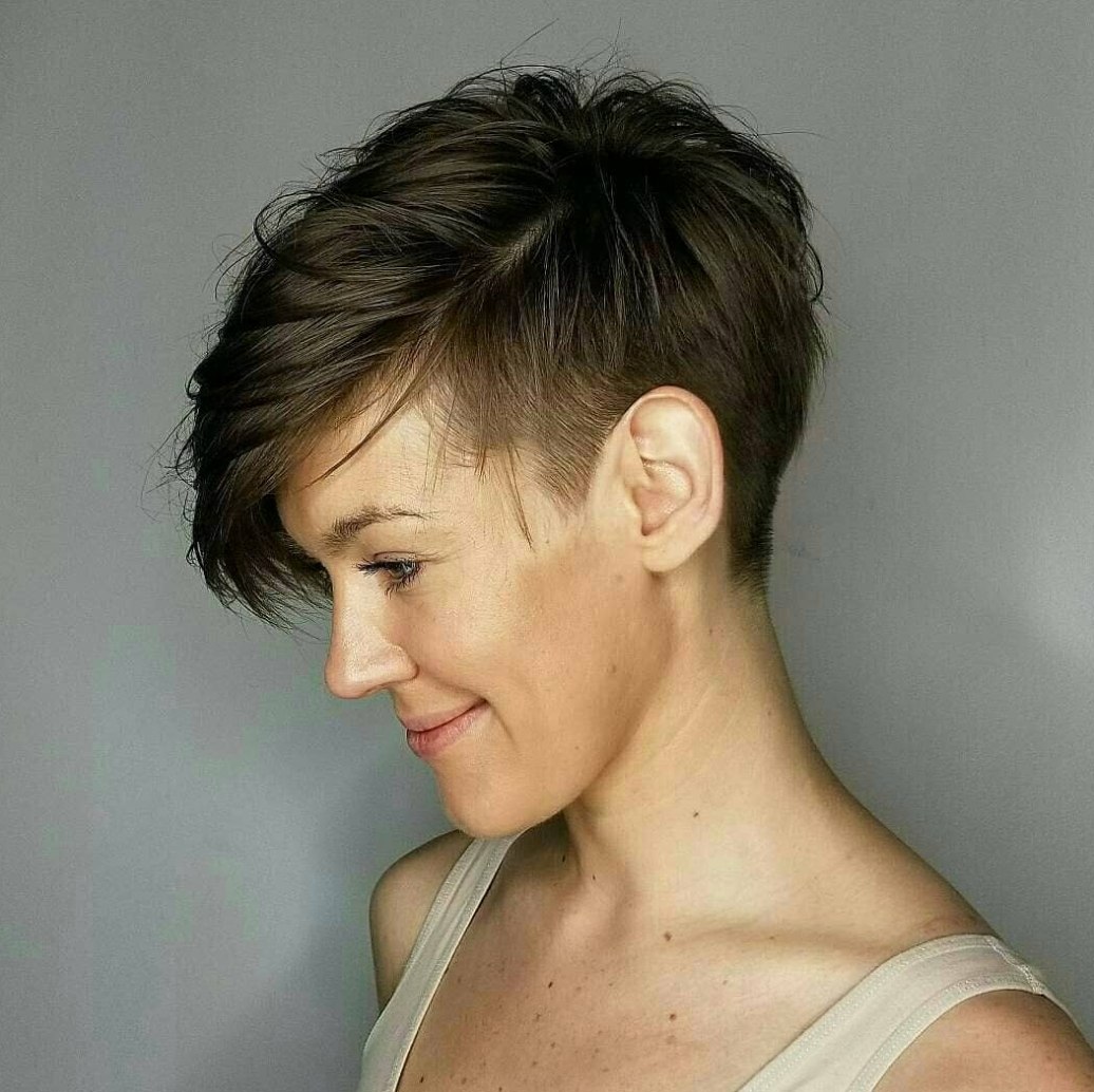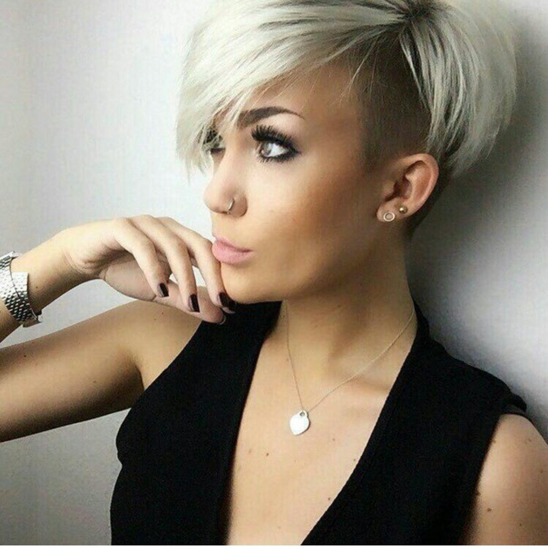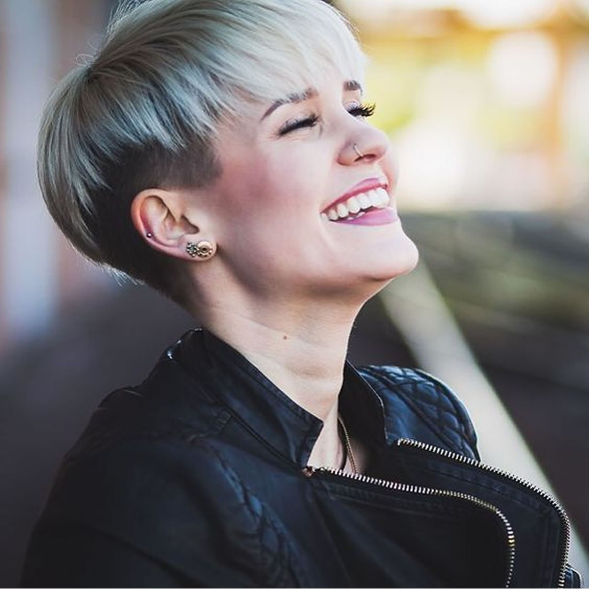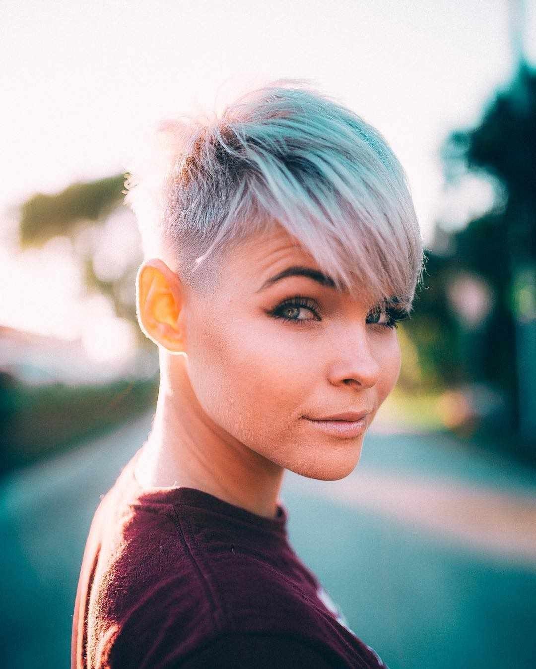 Женская стрижка Пикси на короткие волосы с выбритым виском
