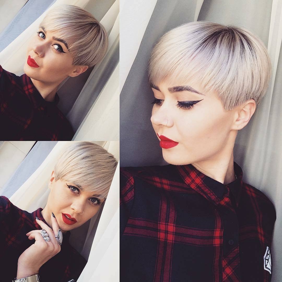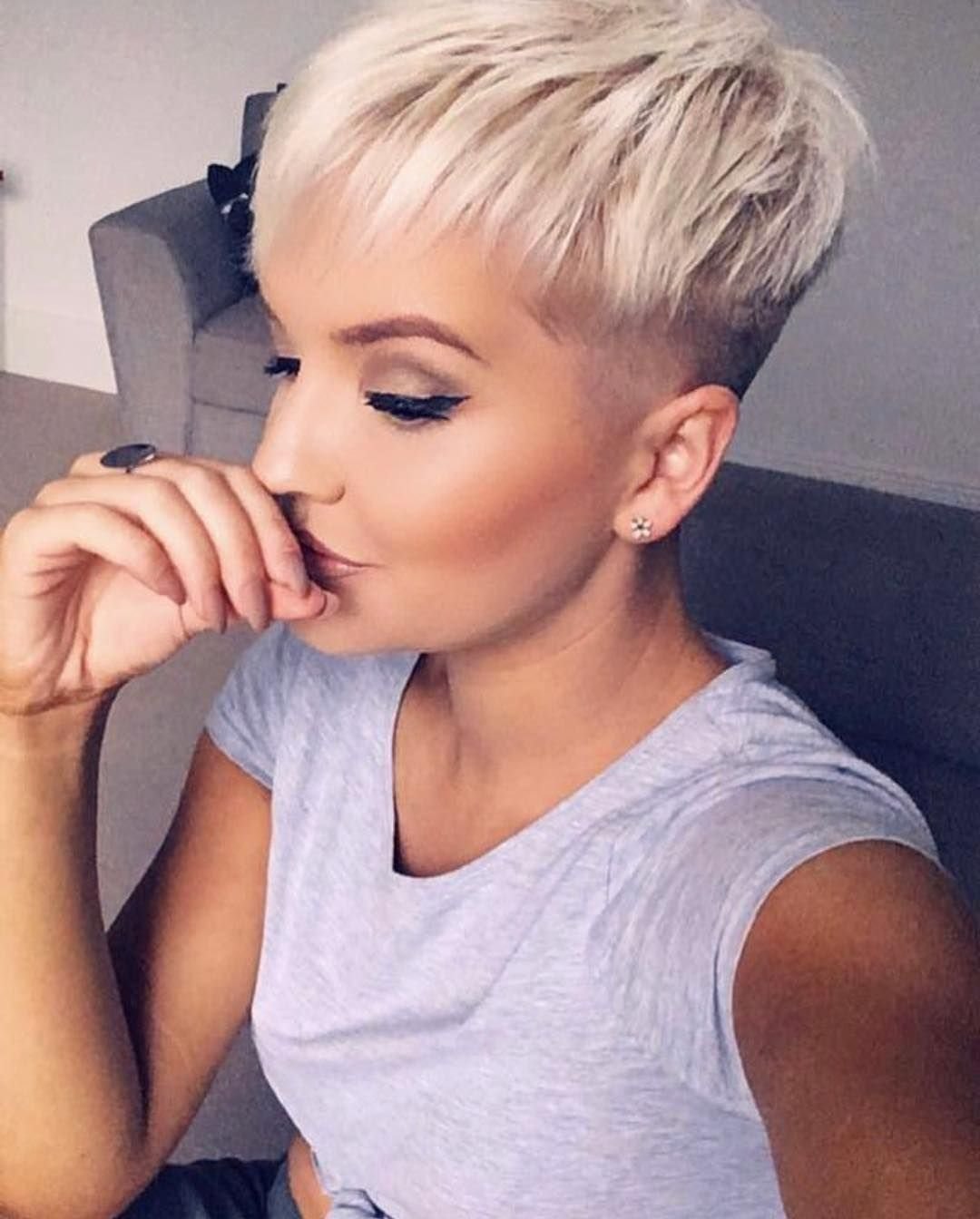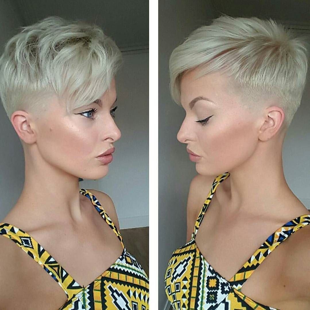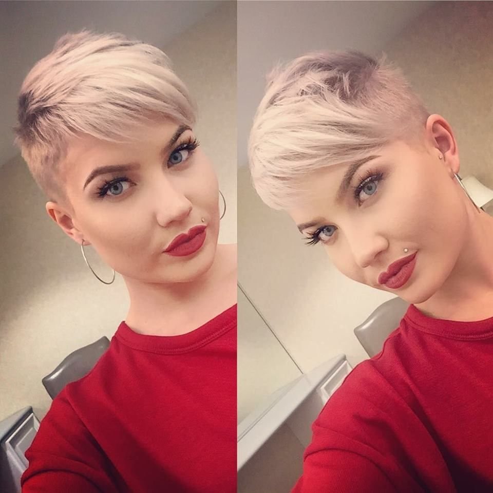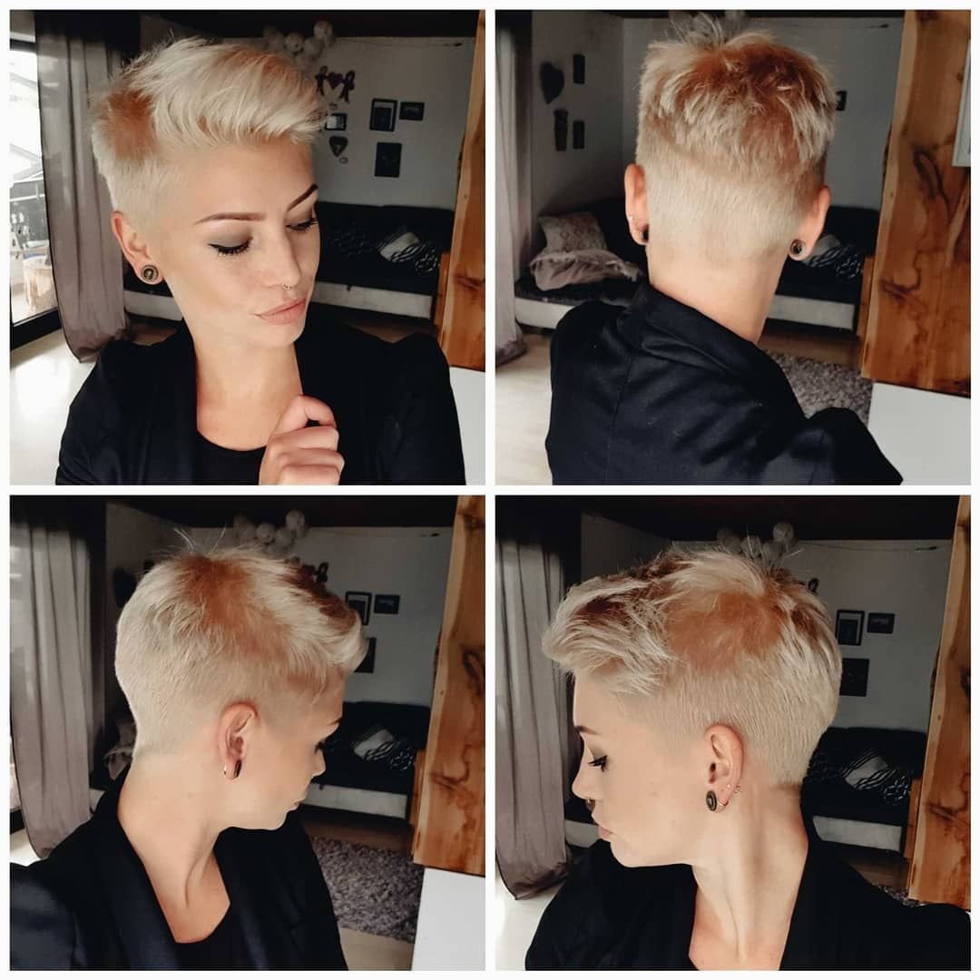 Женская стрижка Пикси на короткие волосы с выбритым виском