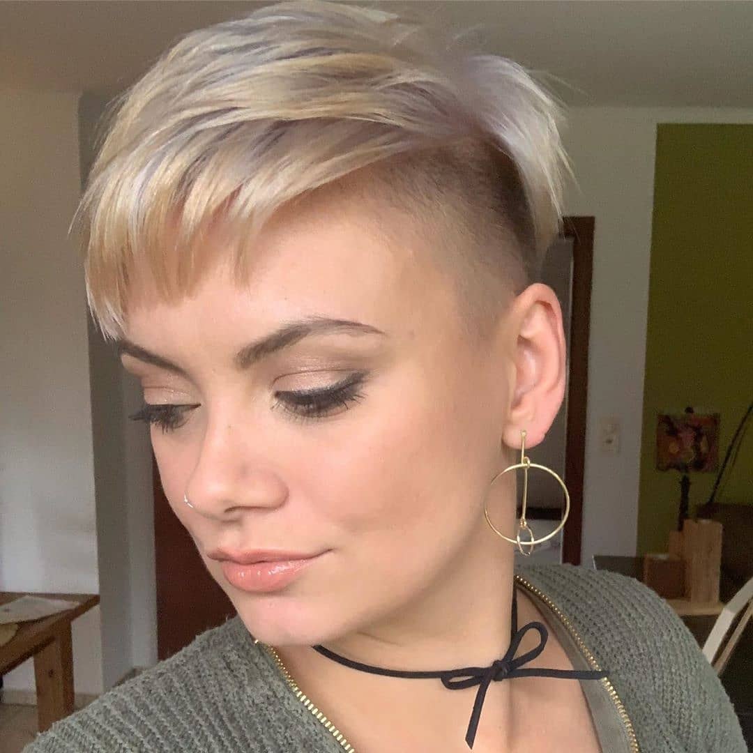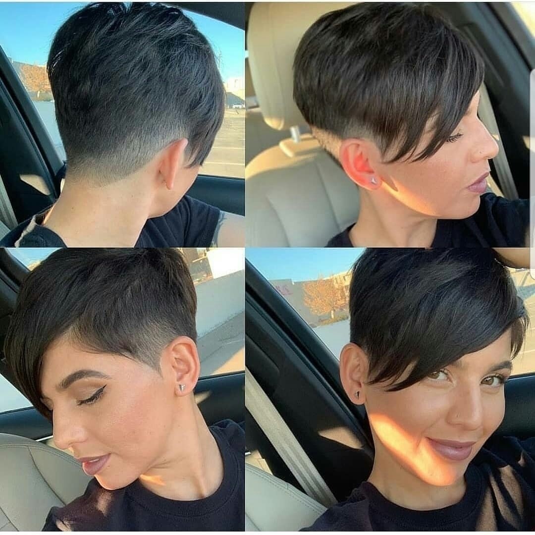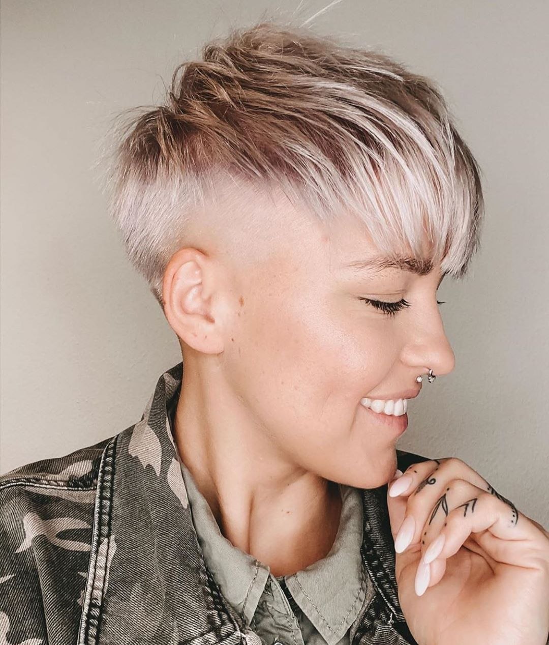 Стрижка Пикси с выбритым виском и удлиненной челкой
