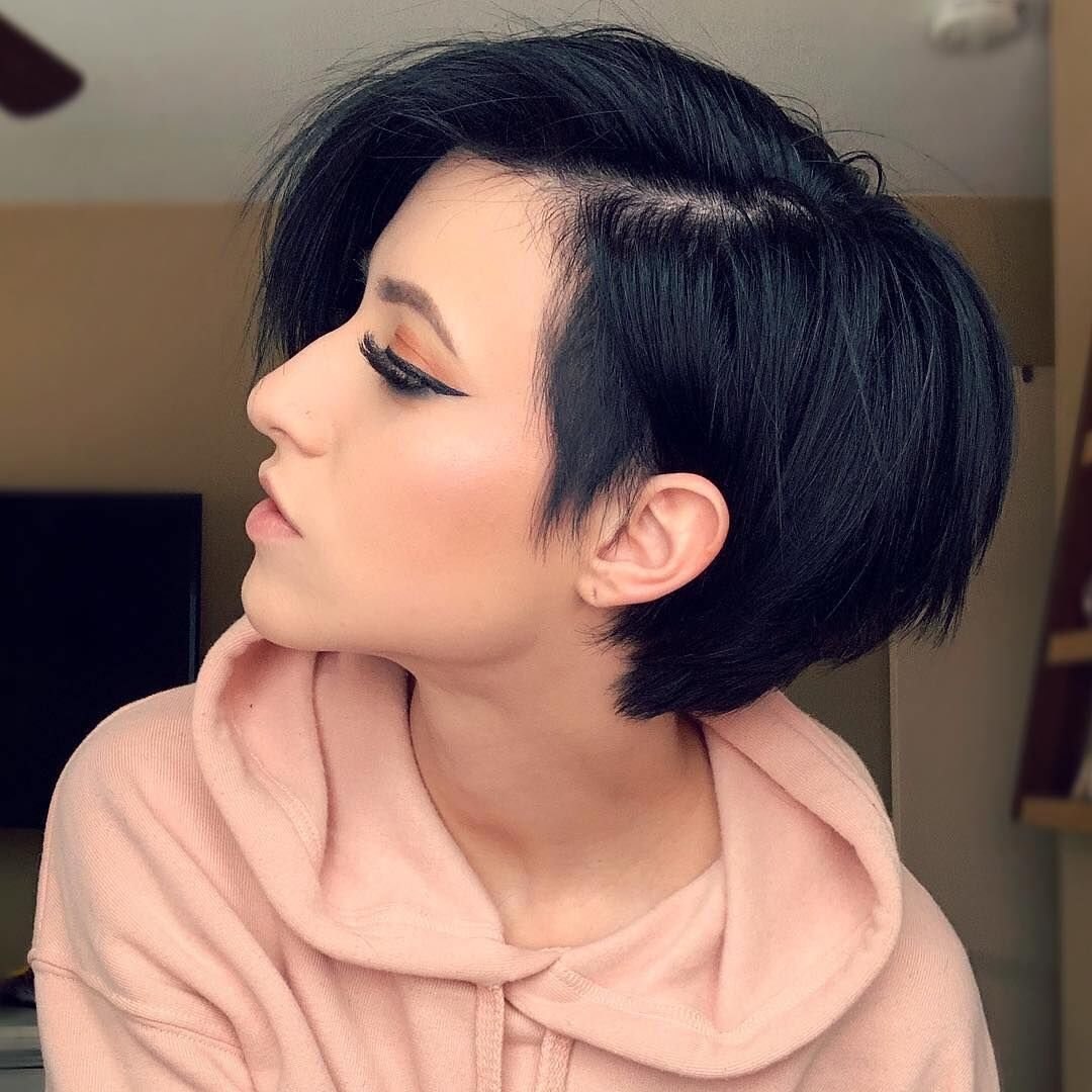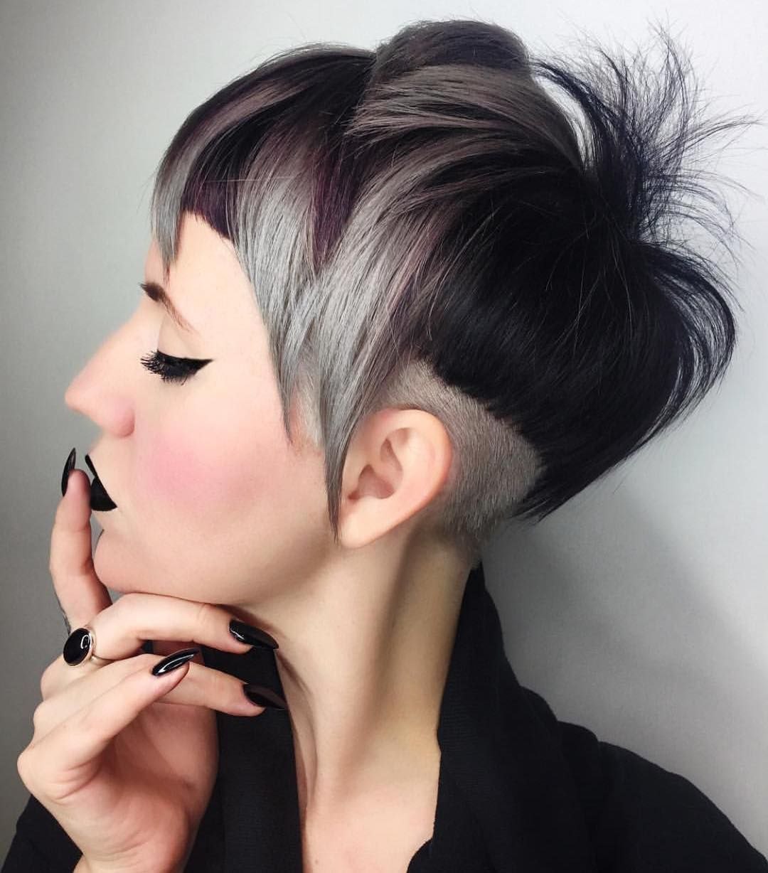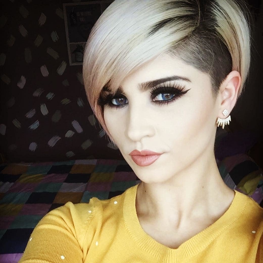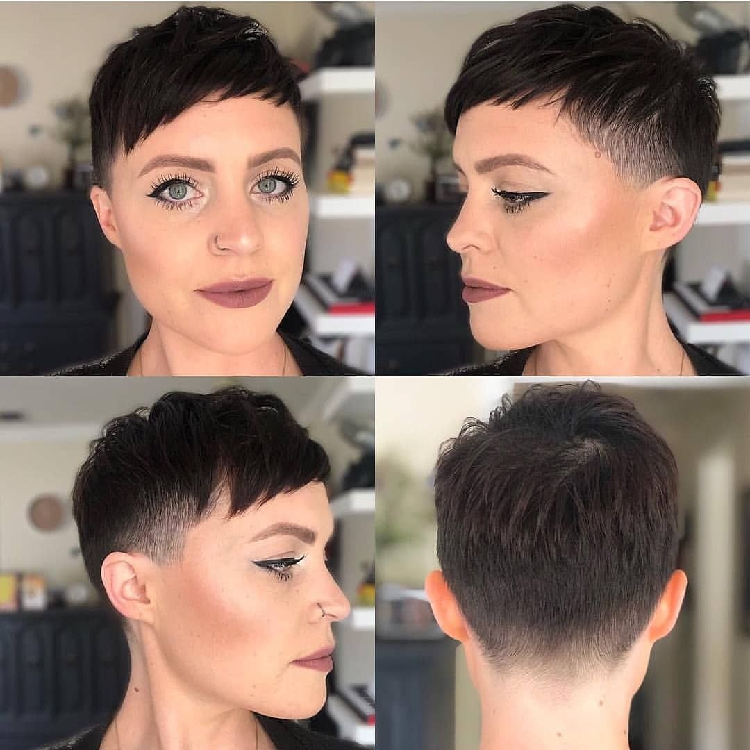 Стрижка Пикси с выбритым виском и удлиненной челкой