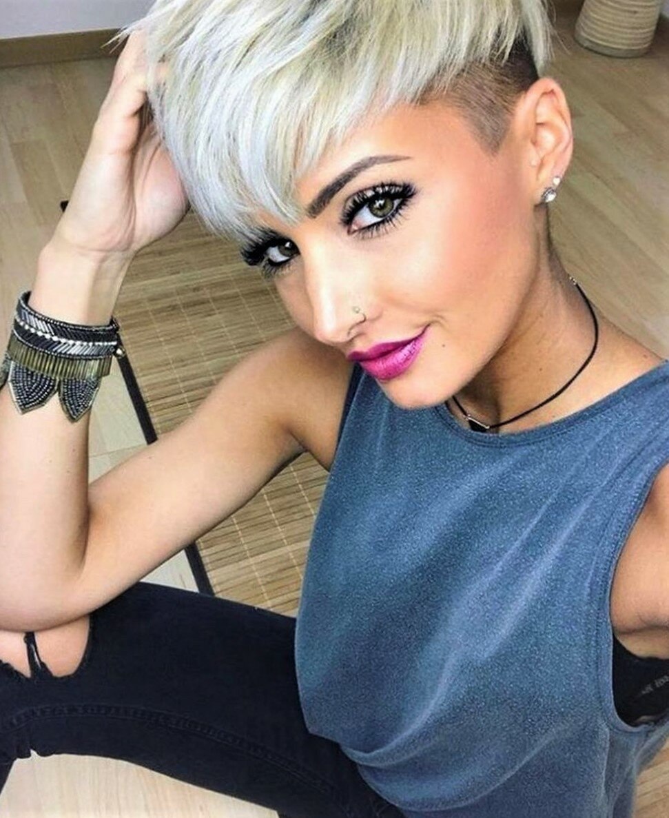 Женские стрижки с выбритыми висками и затылком на короткие волосы