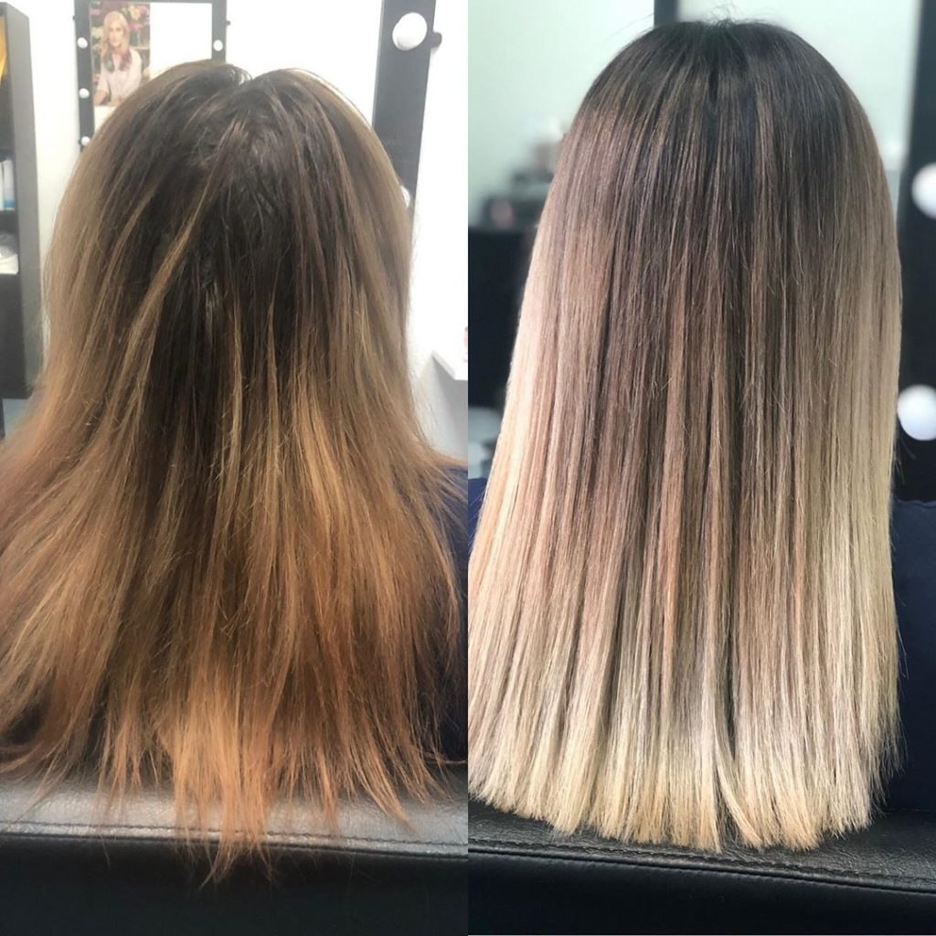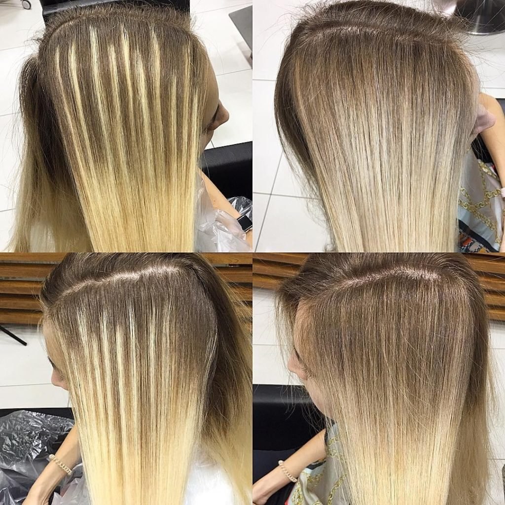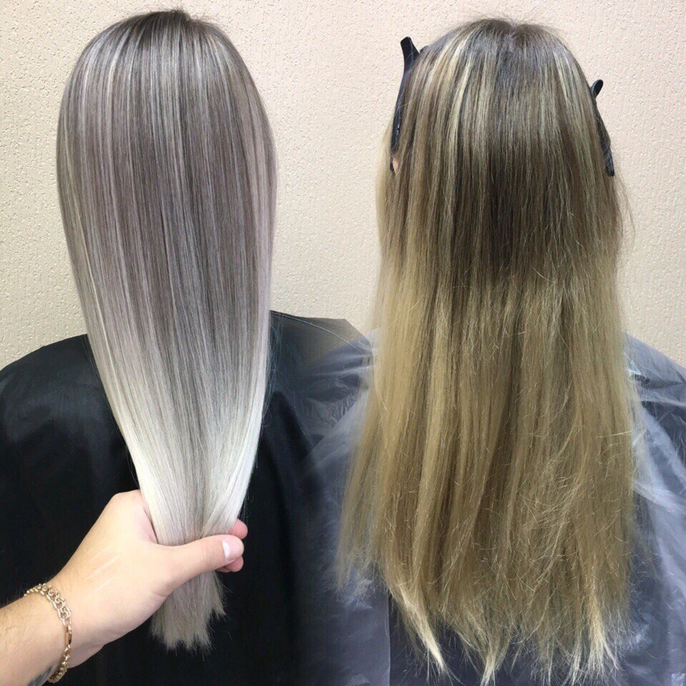 Растяжка на мелированных волосах
