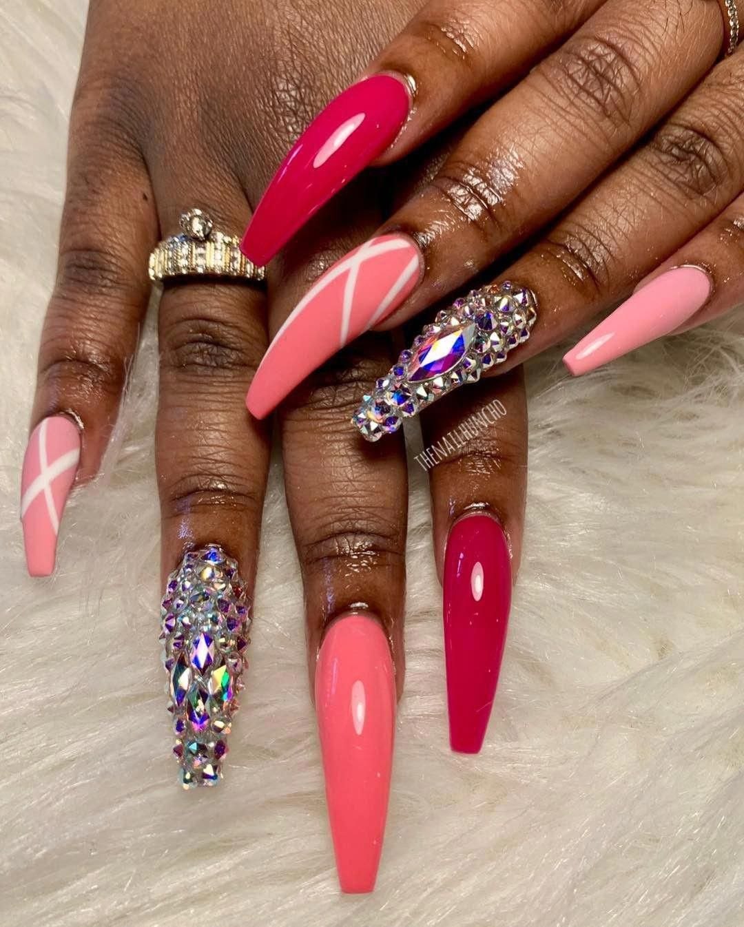 Яркий маникюр на длинные ногти