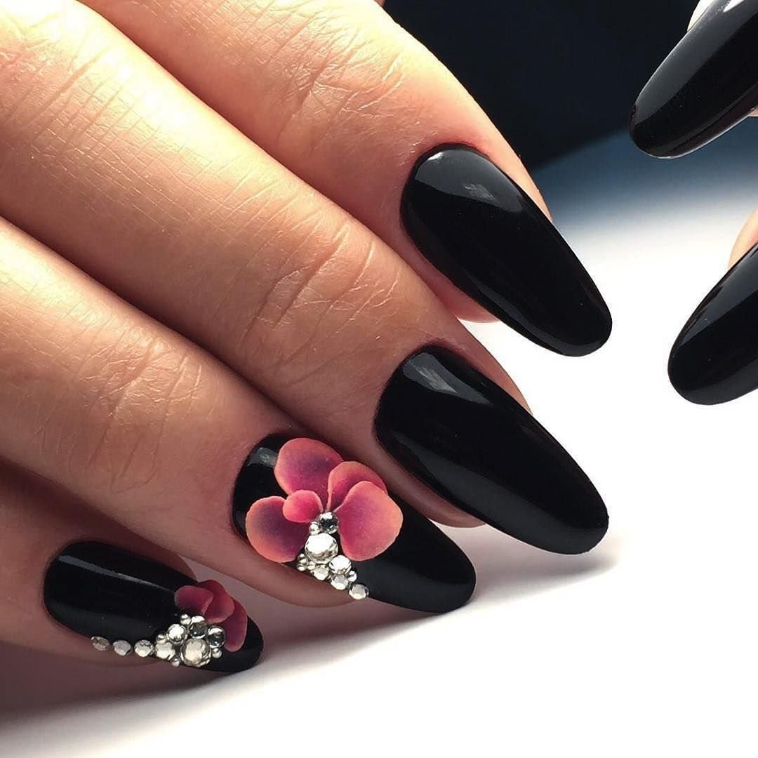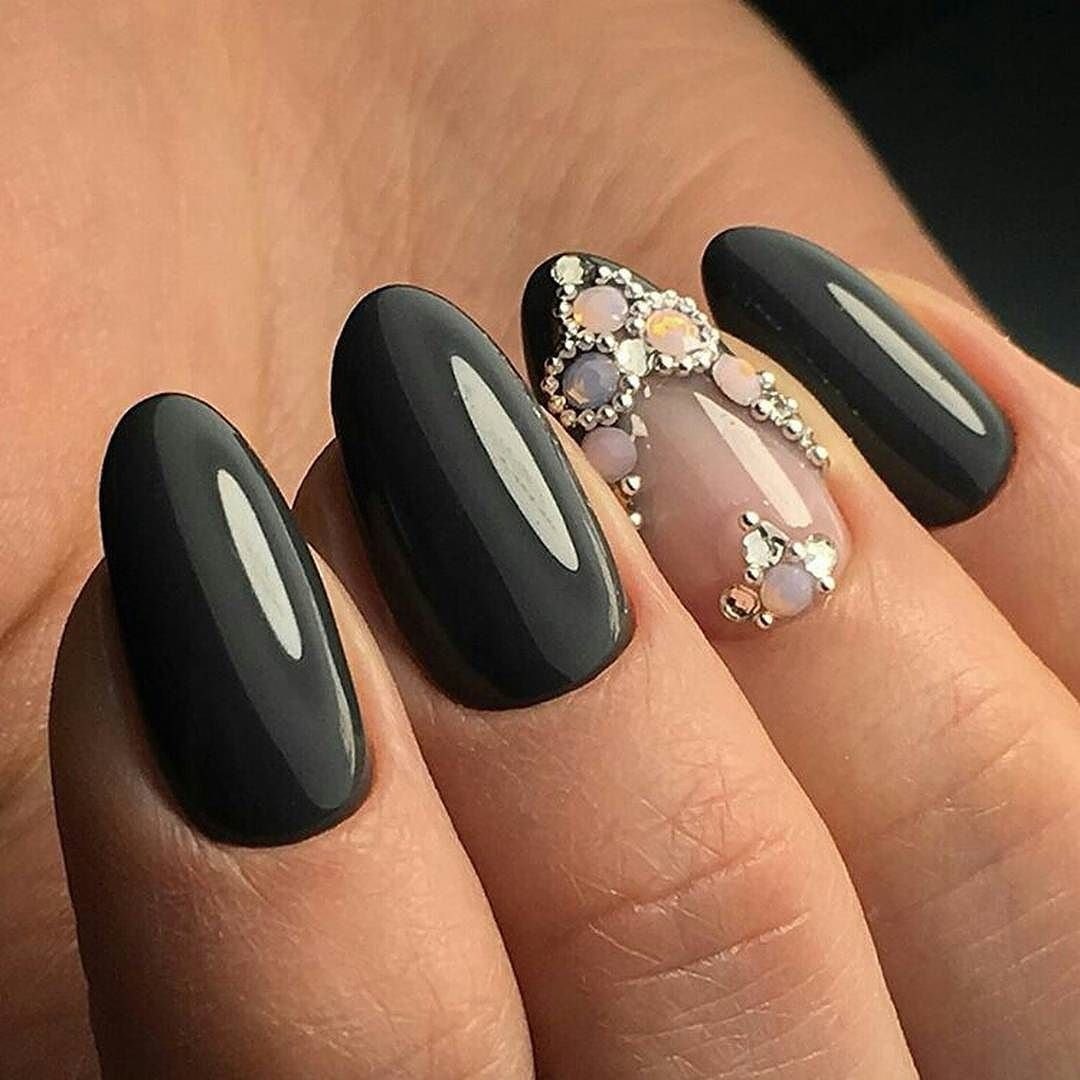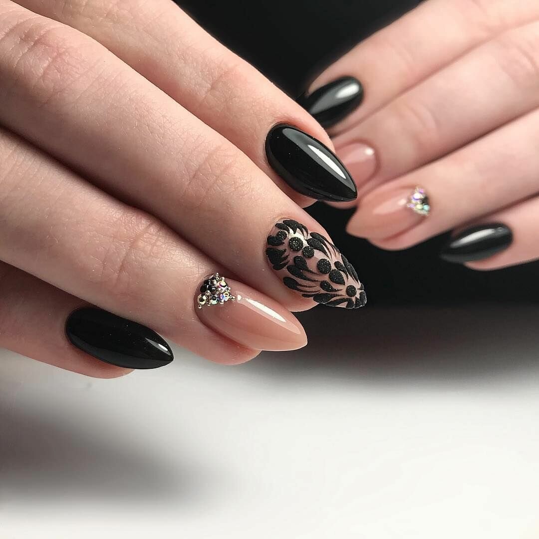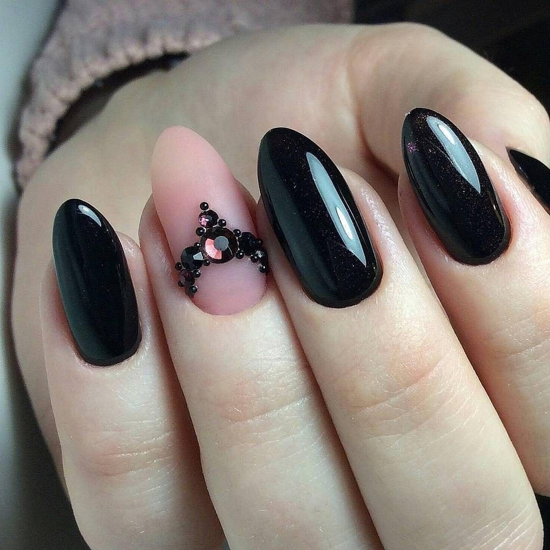 Ногти Алмонд чёрные