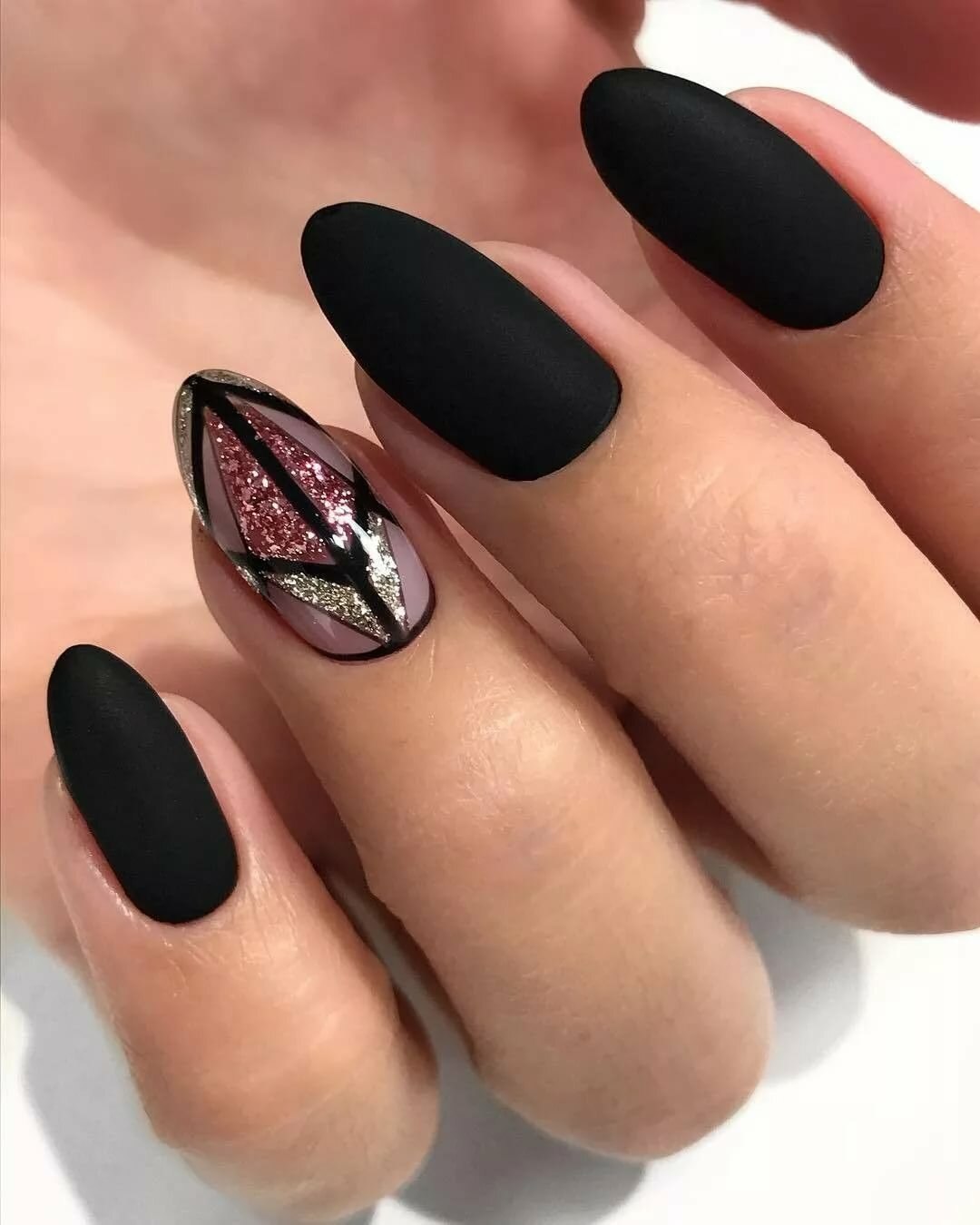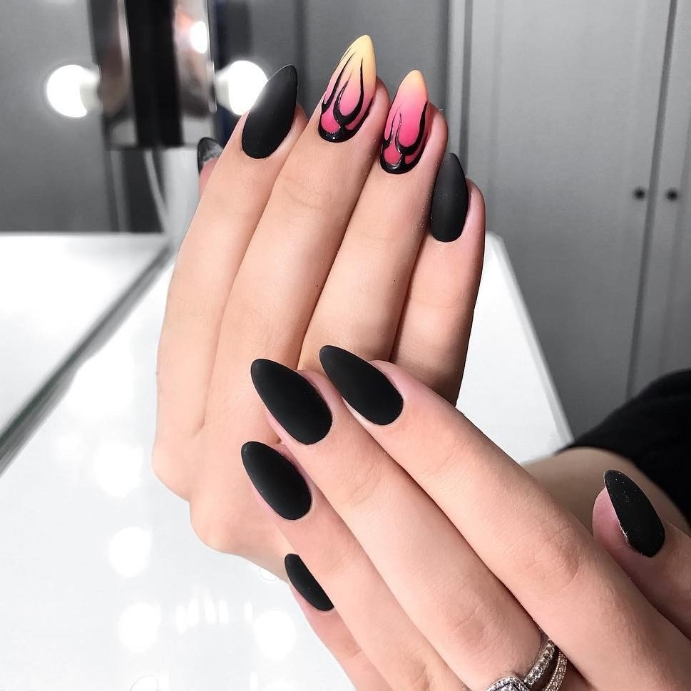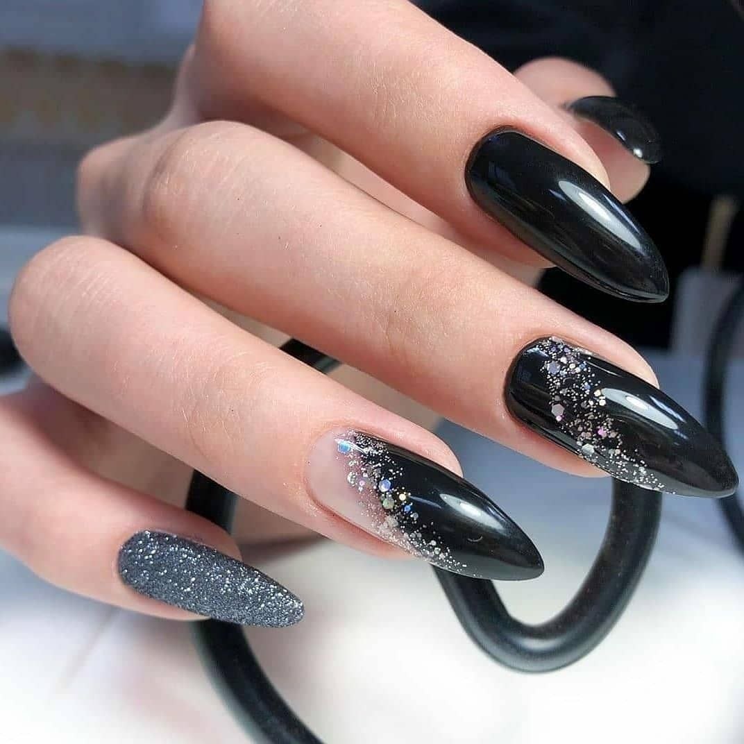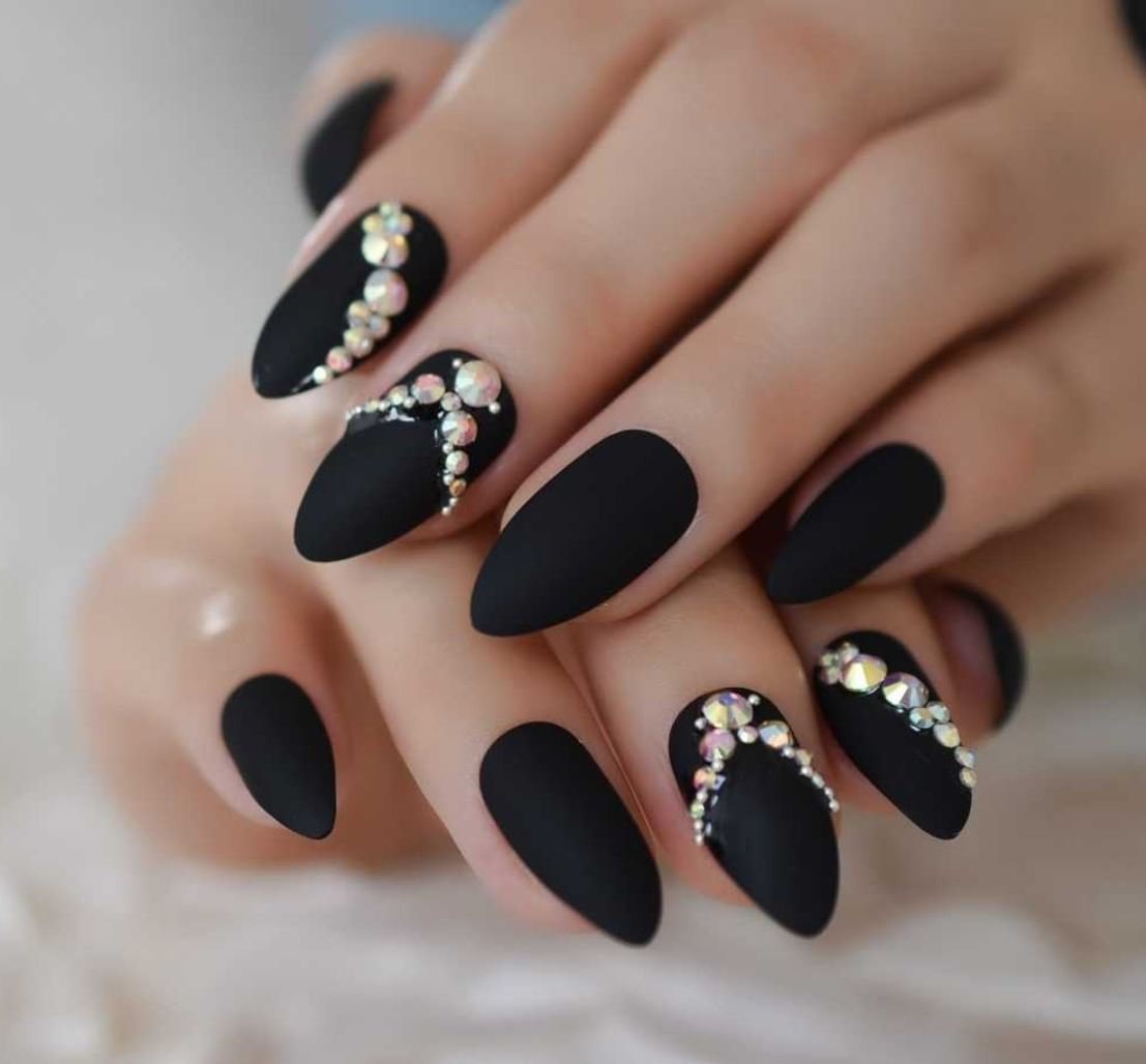Ногти Алмонд чёрные
