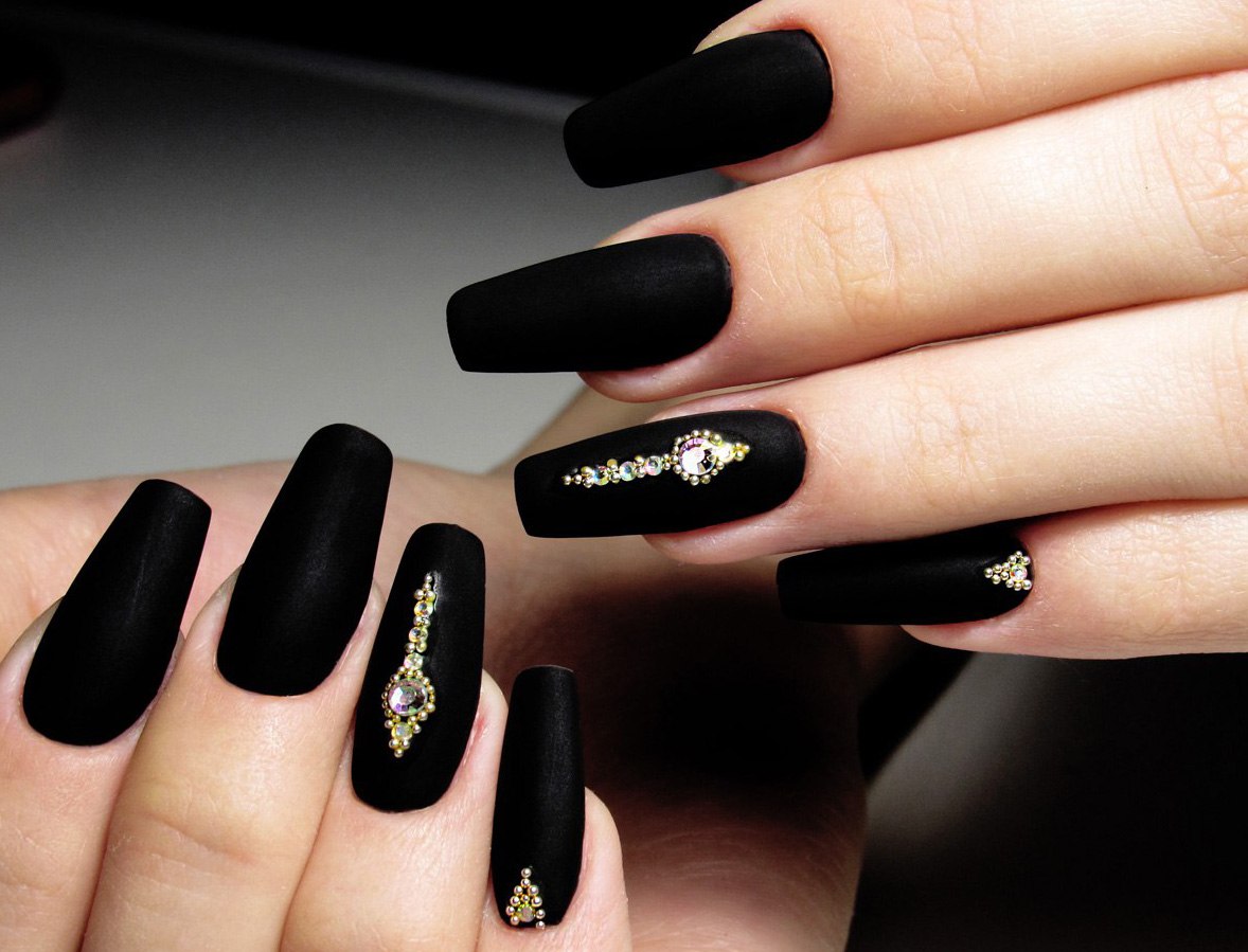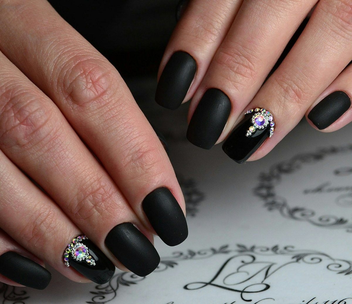 Чёрный маникюр со стразами