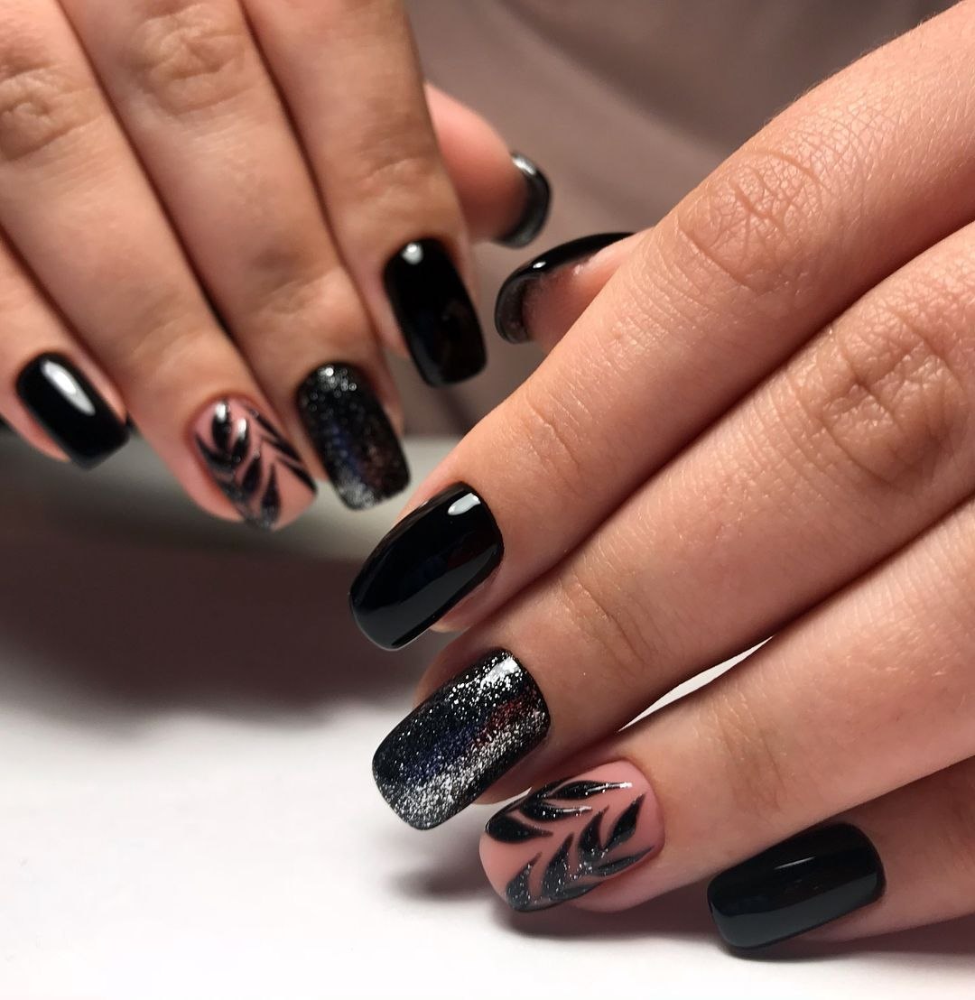 Красивый черный маникюр