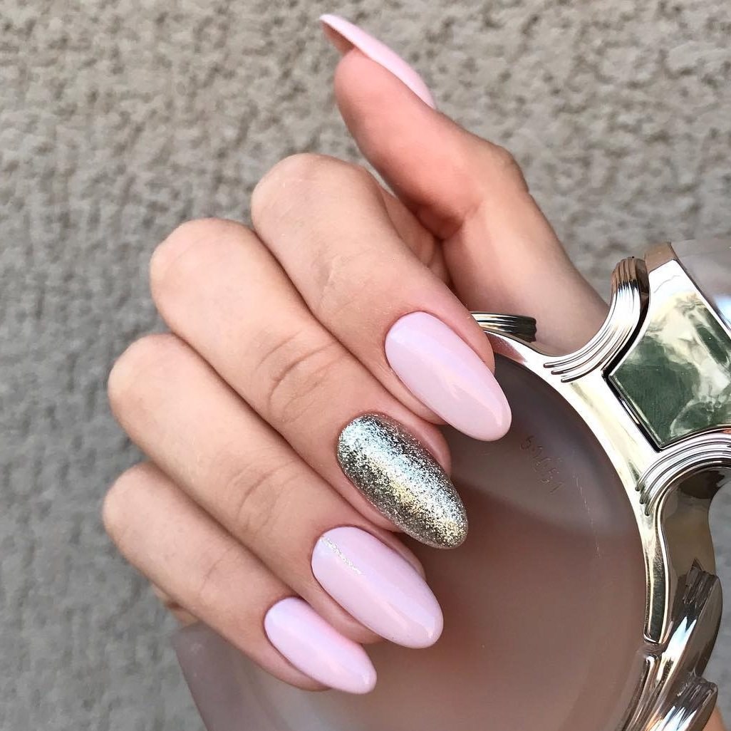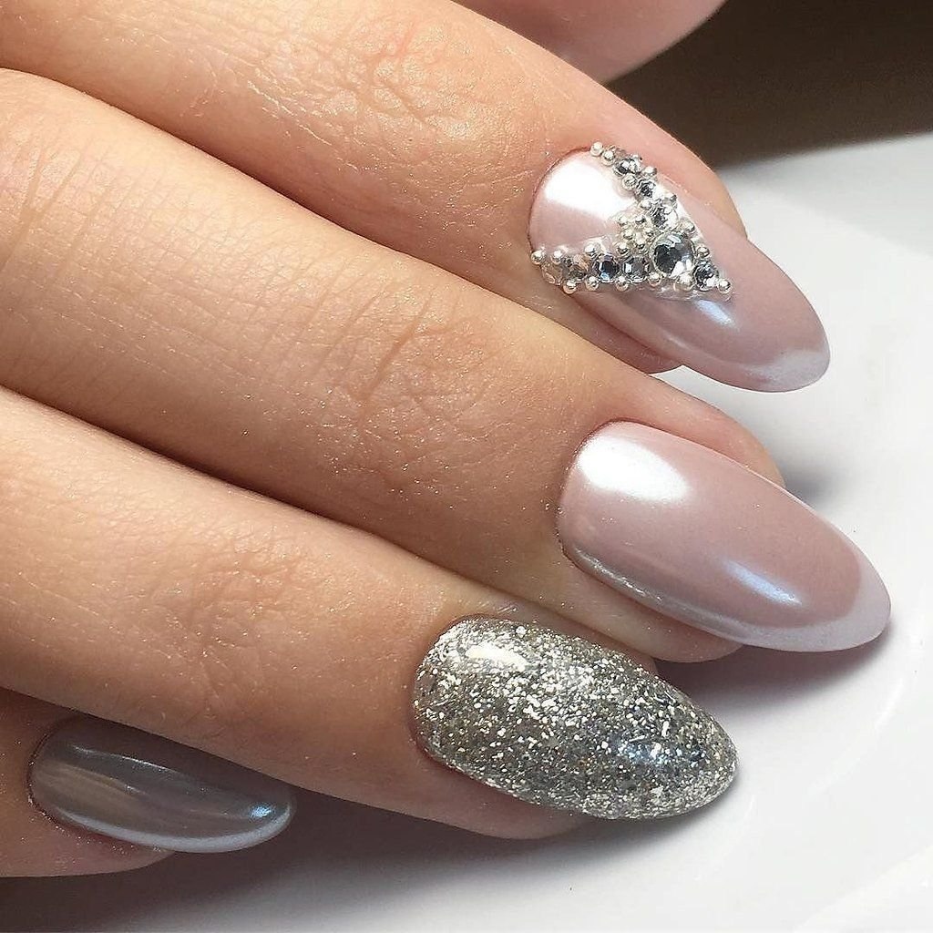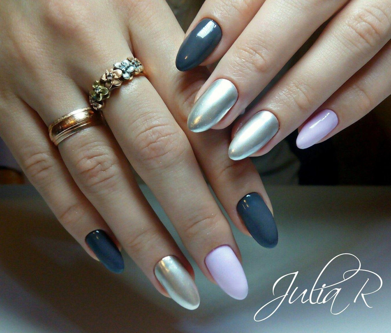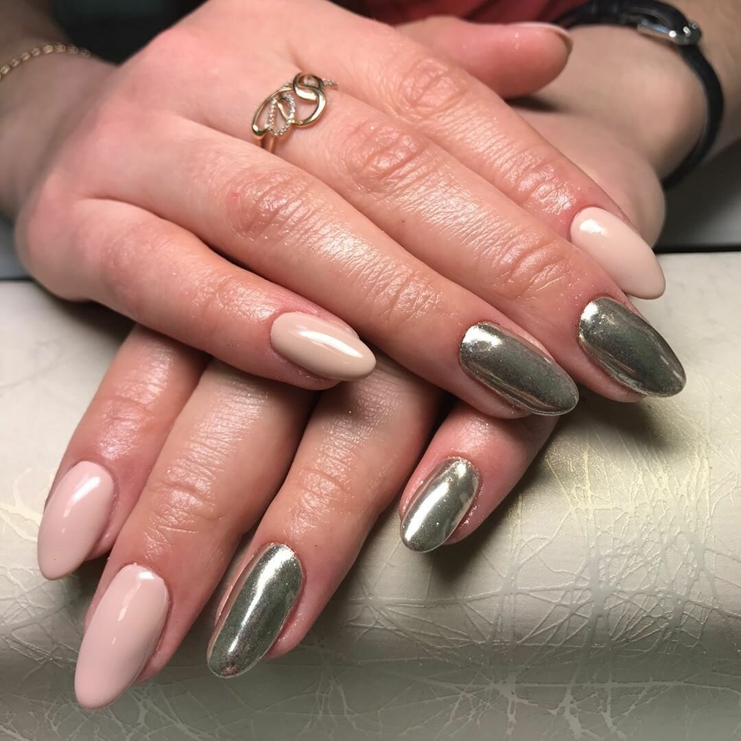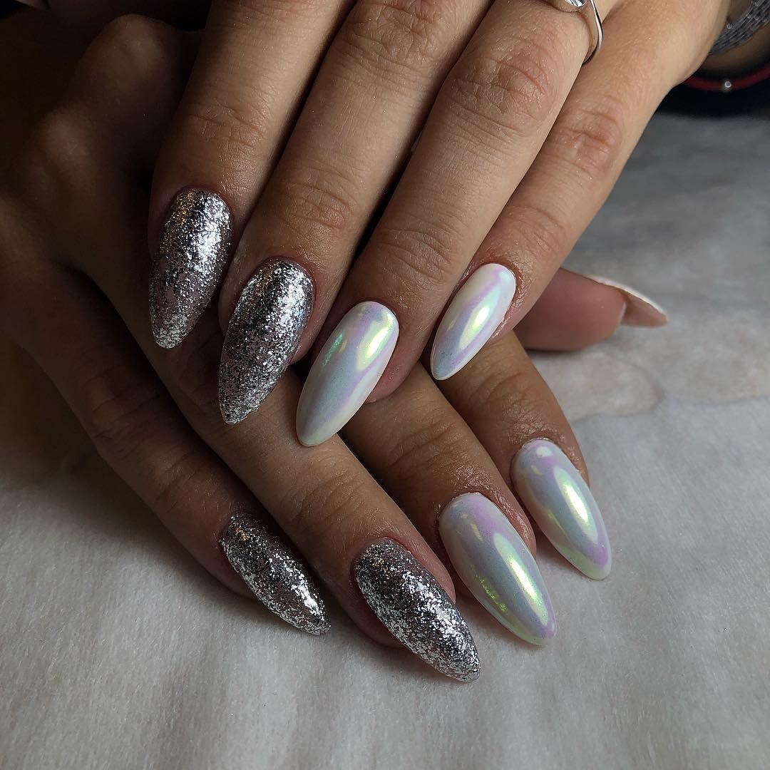 Маникюр миндаль втирка серебро