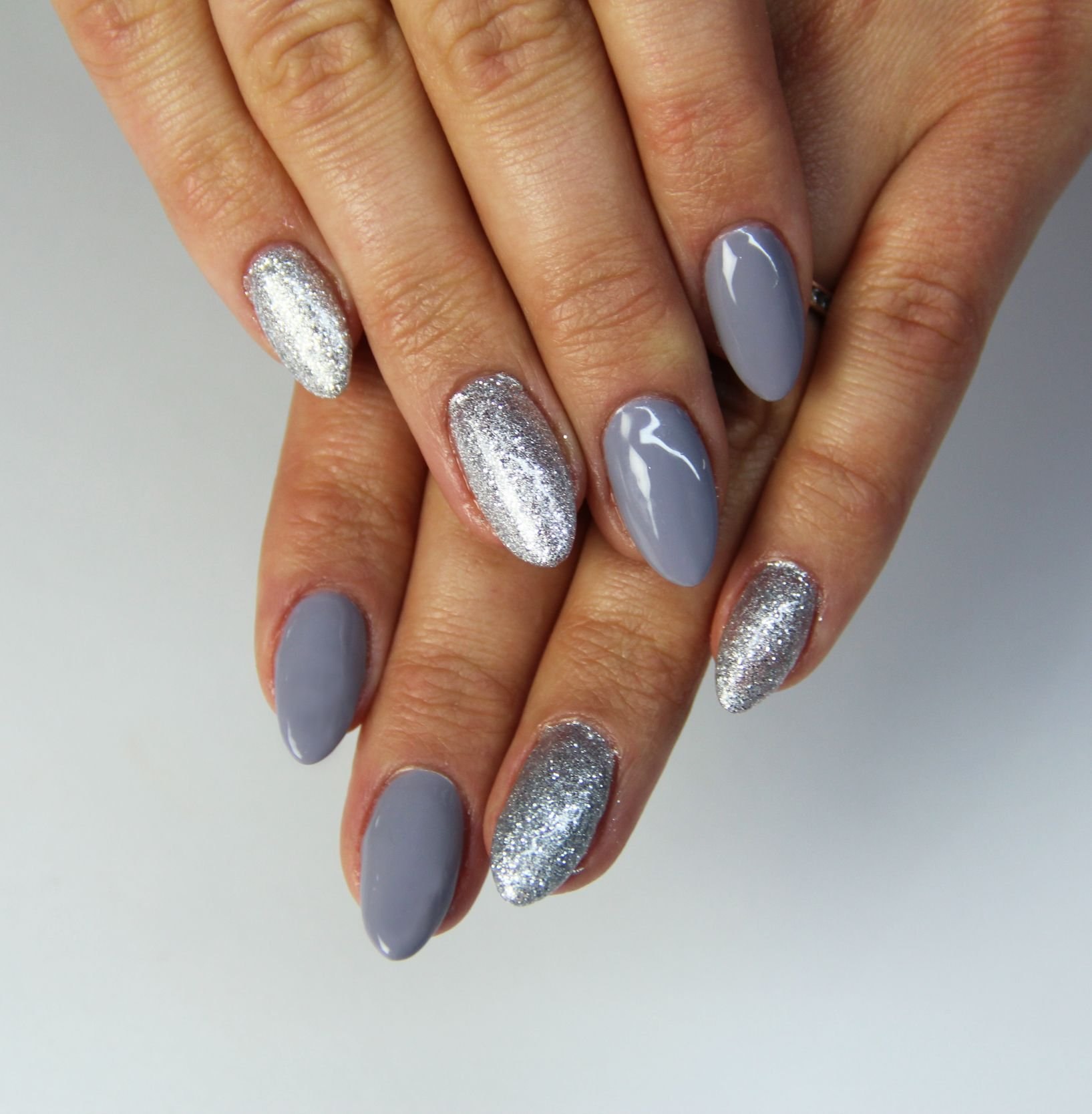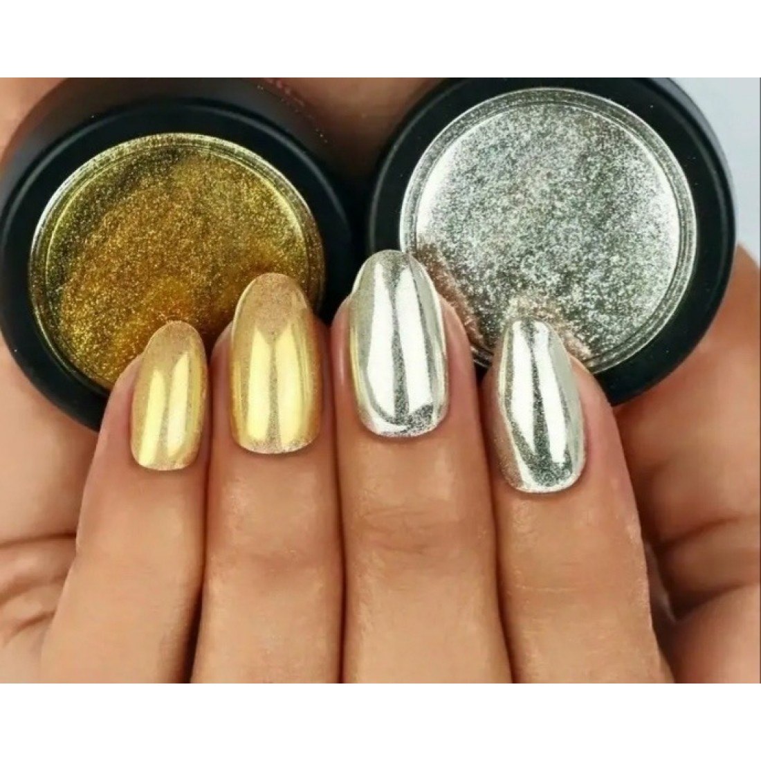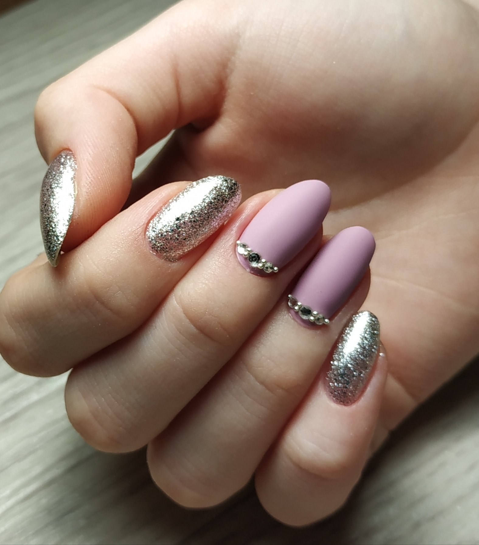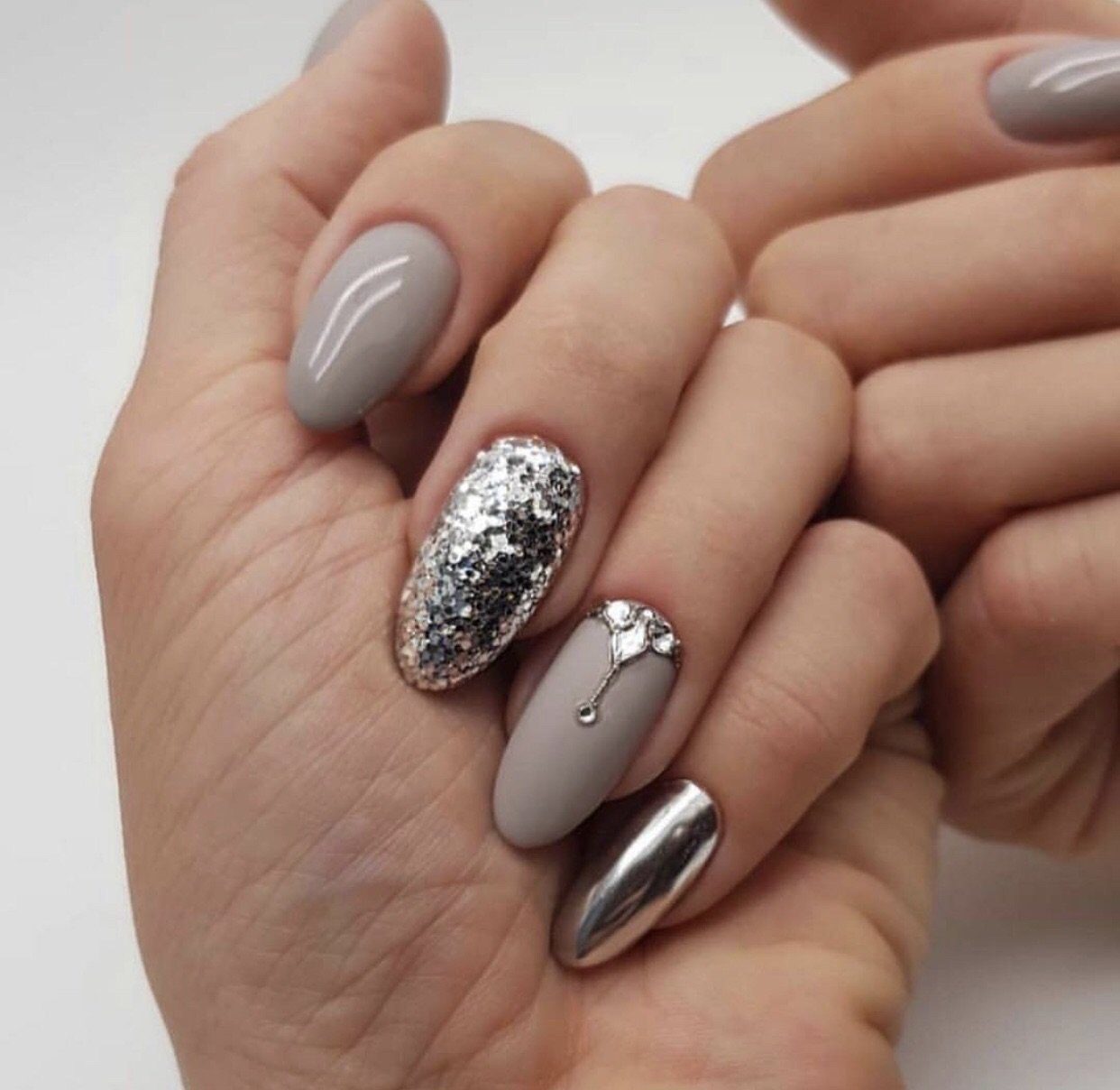 Маникюр миндаль втирка серебро