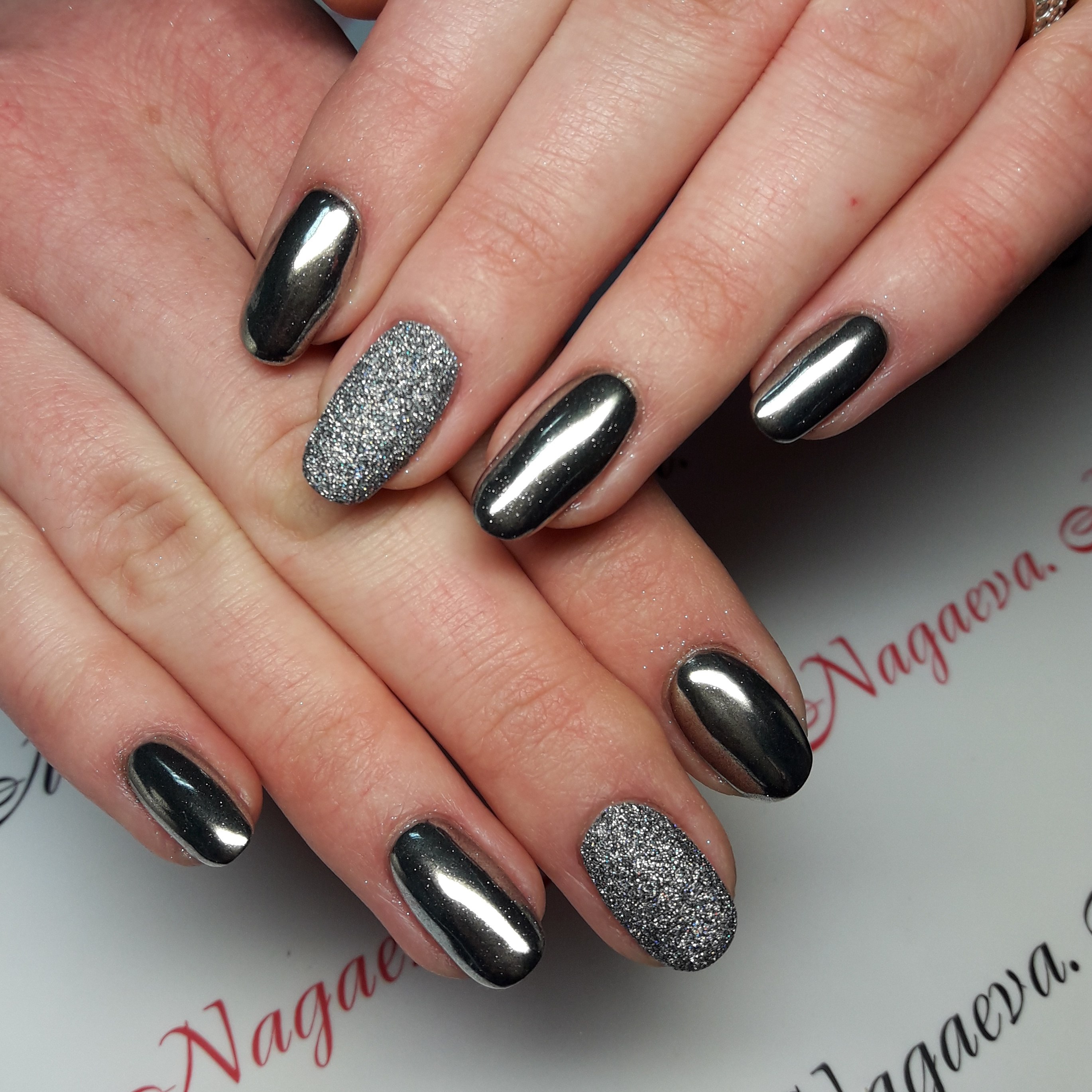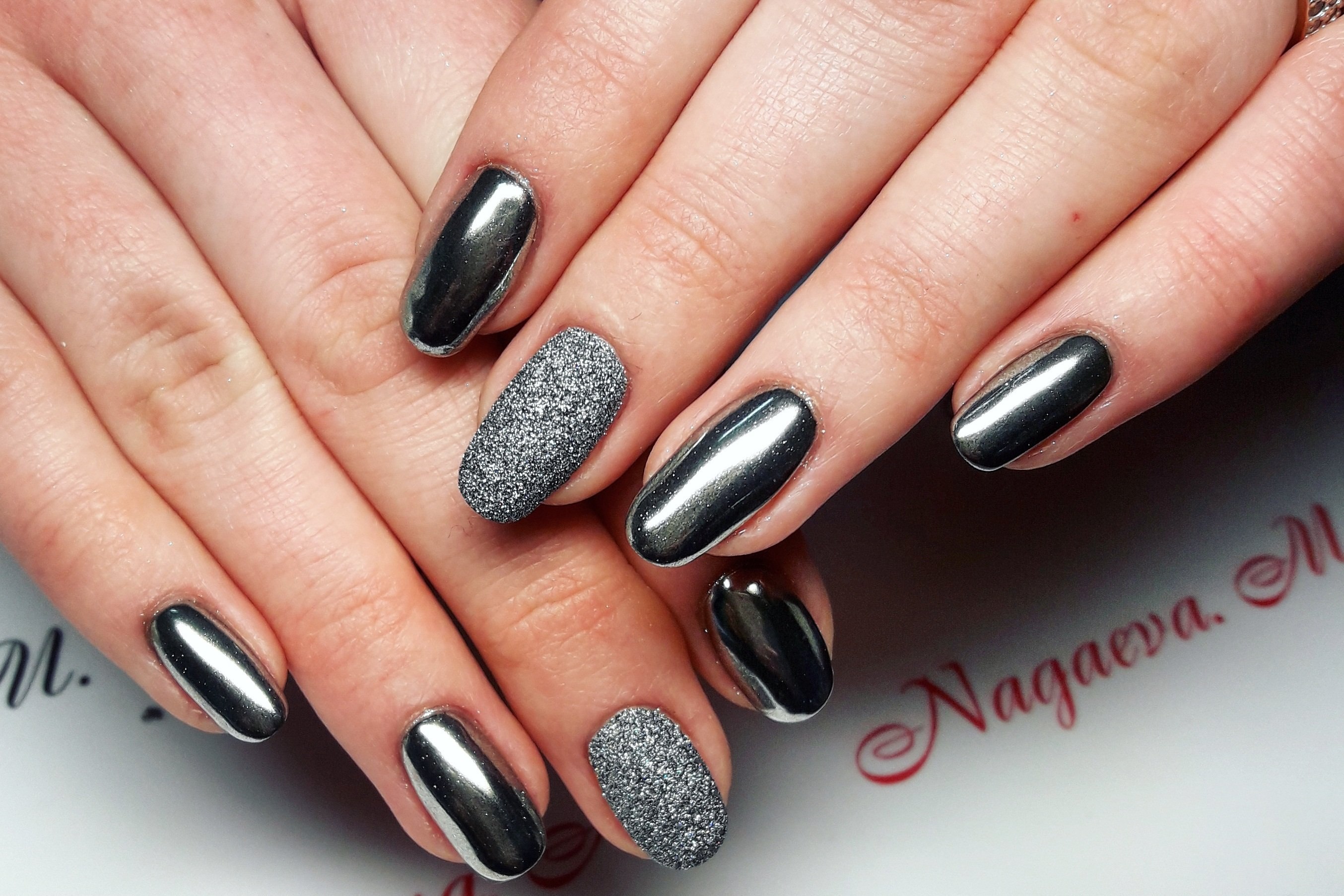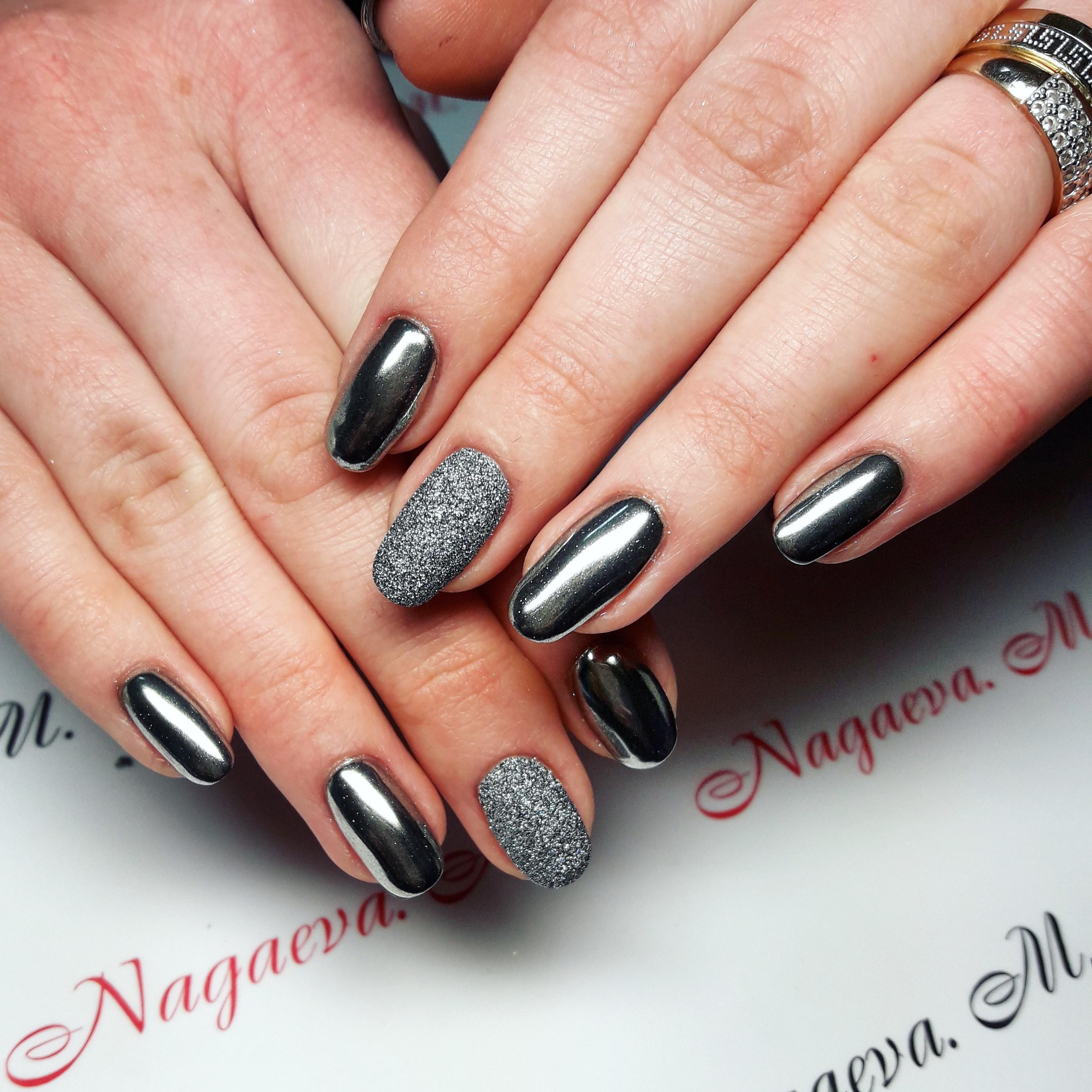 Ногти с серебряной втиркой