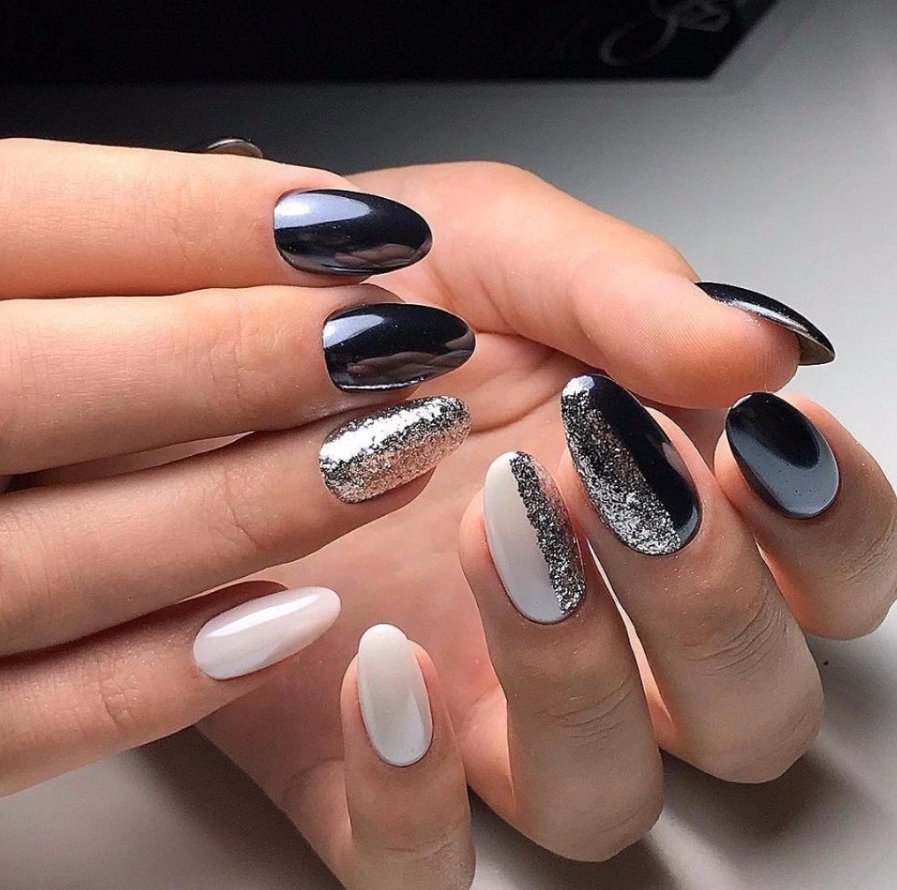 Маникюр серебристый с черным
