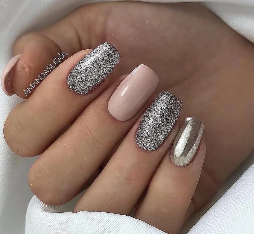 Маникюр с серебряными блестками