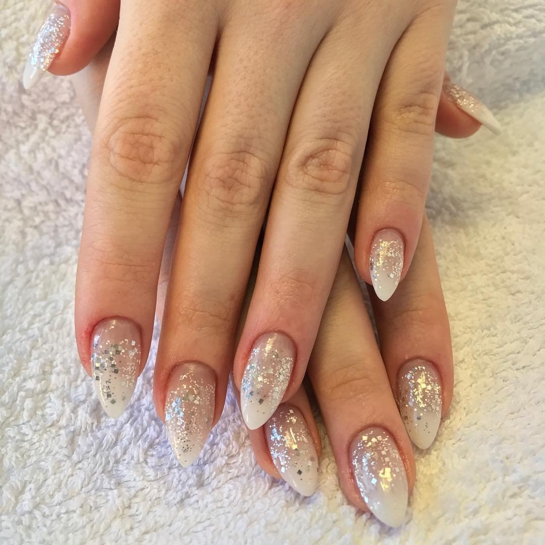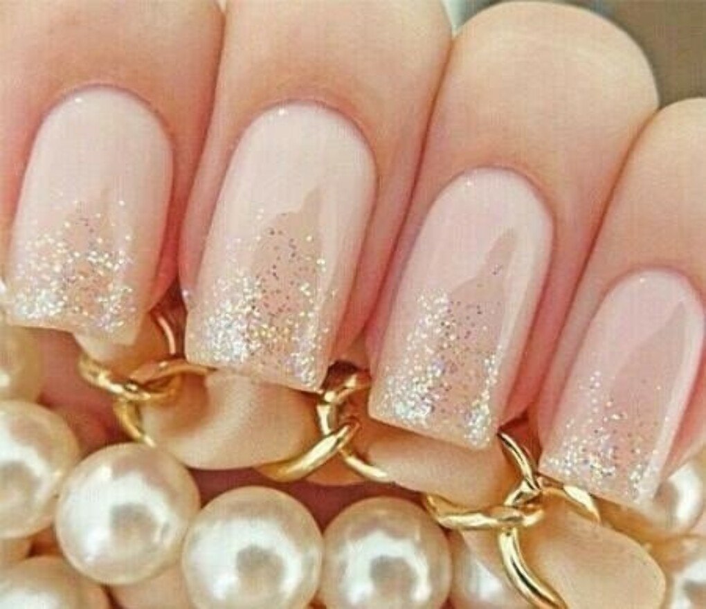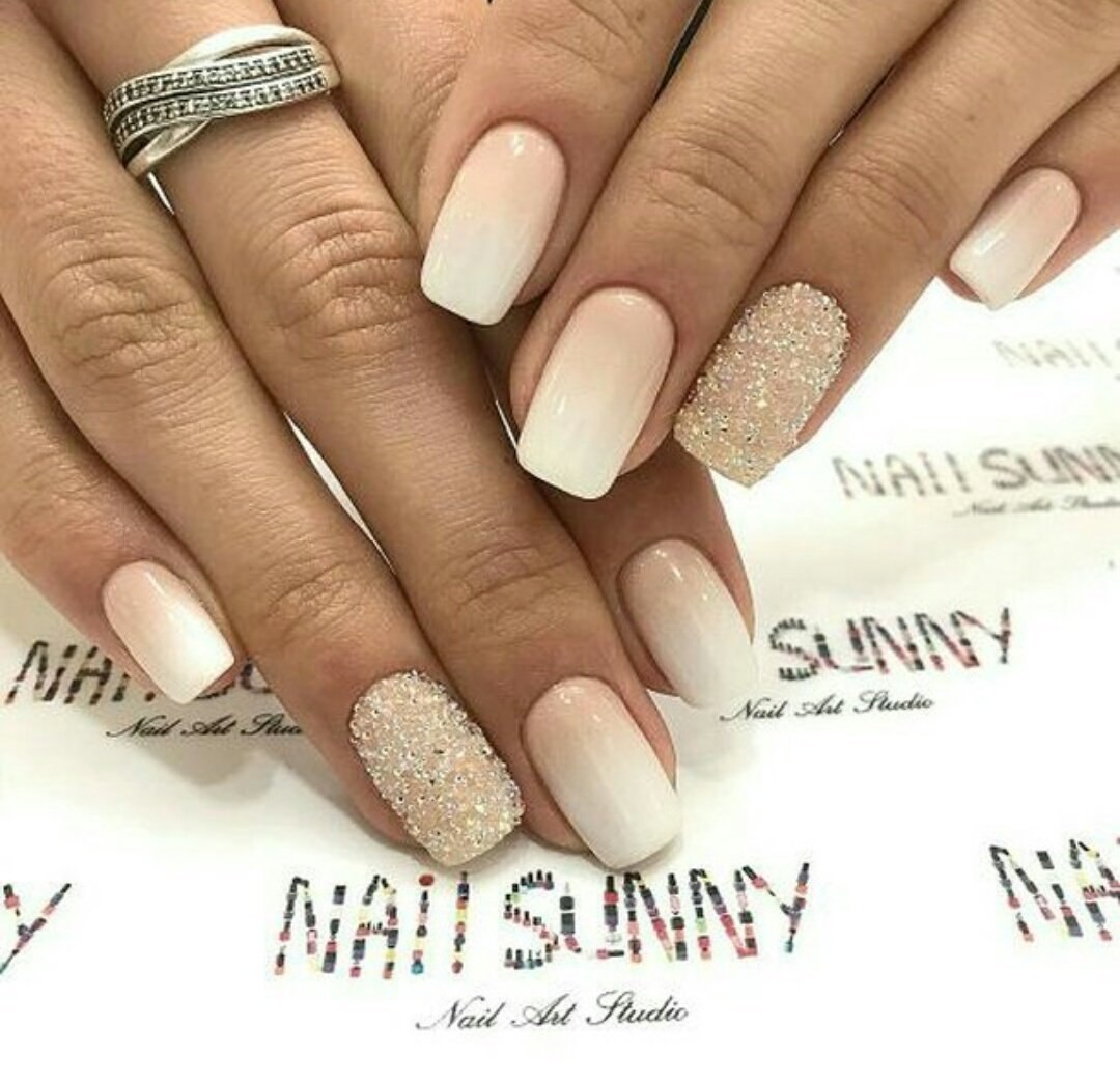 Маникюр в светлых тонах с блестками
