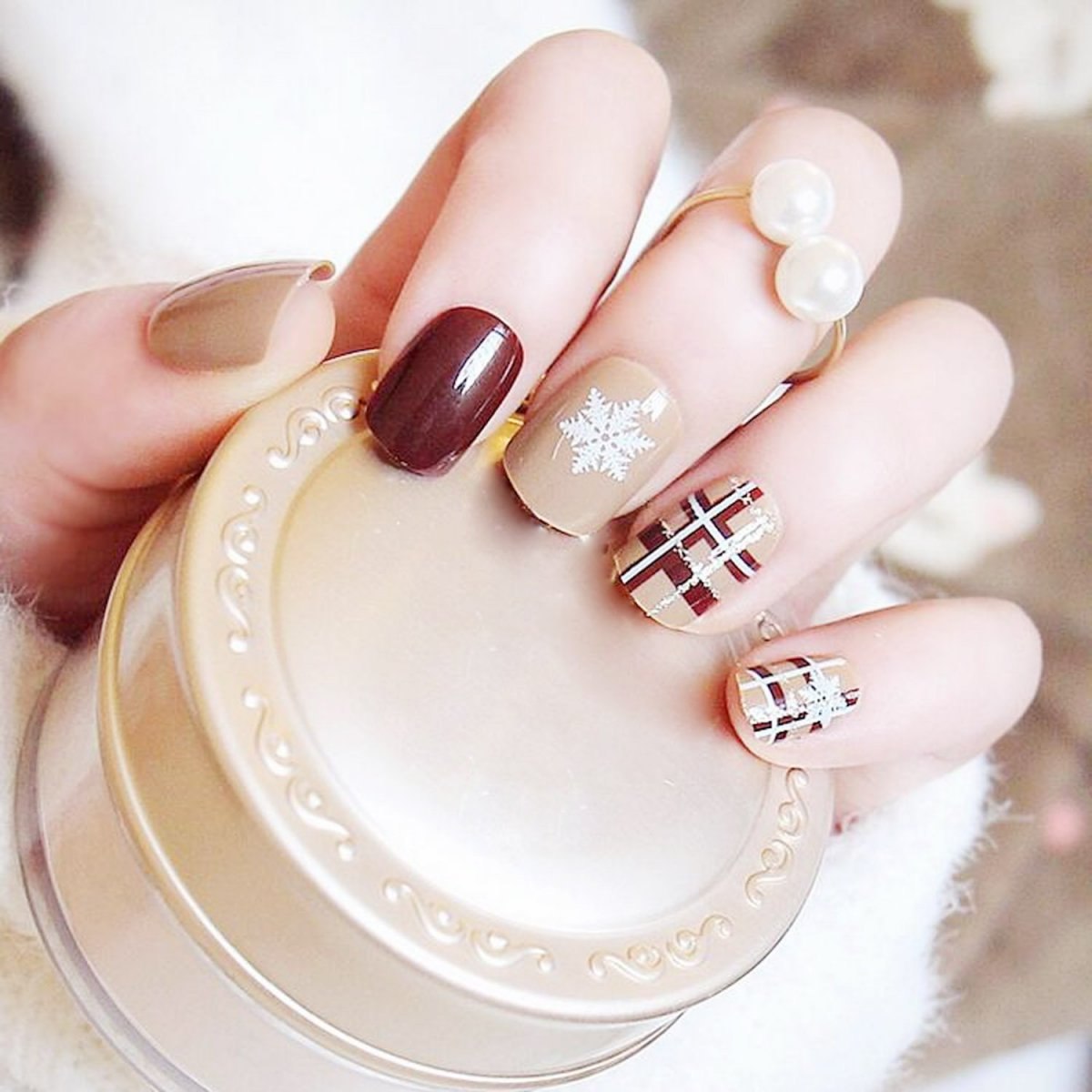 Маникюр под бежевое платье