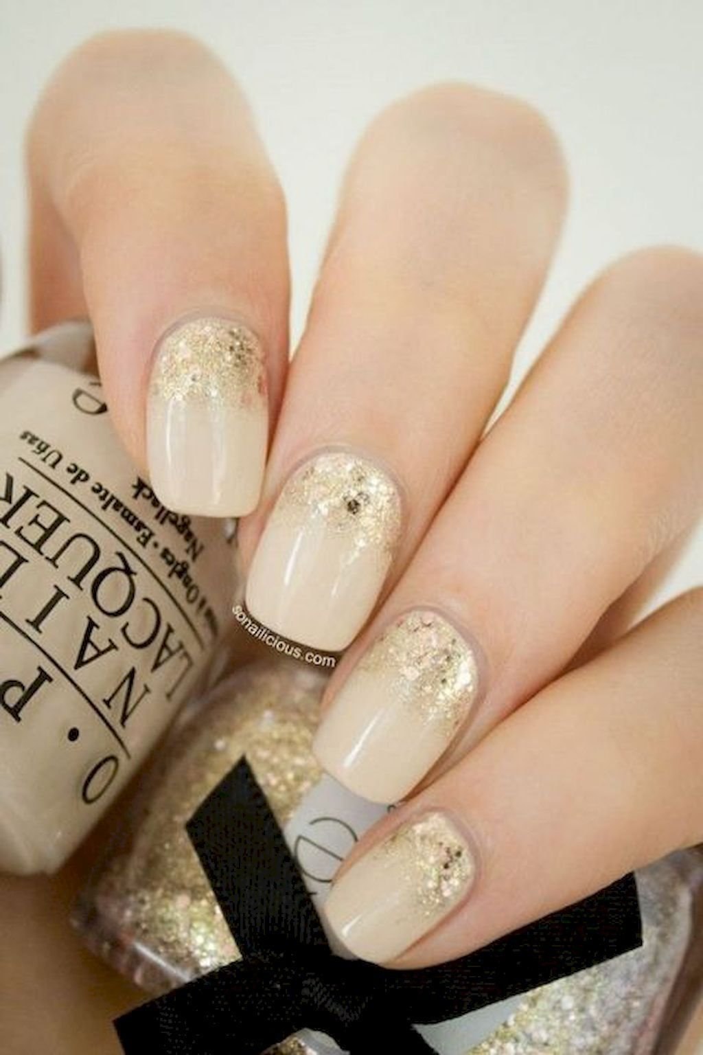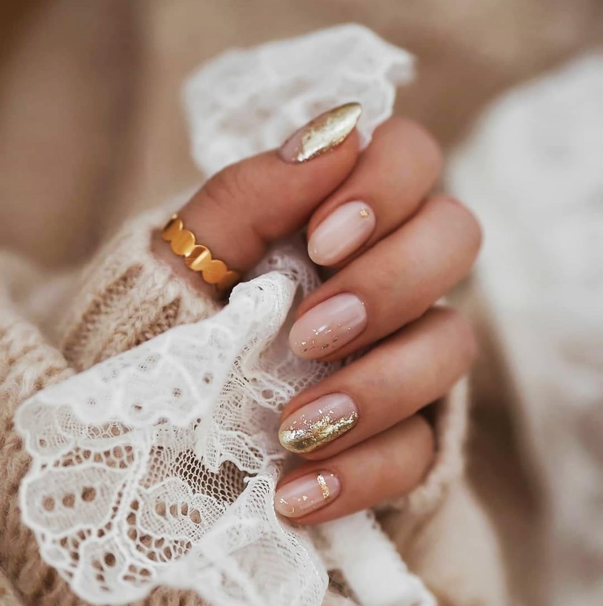 Ногти бежевые с золотом