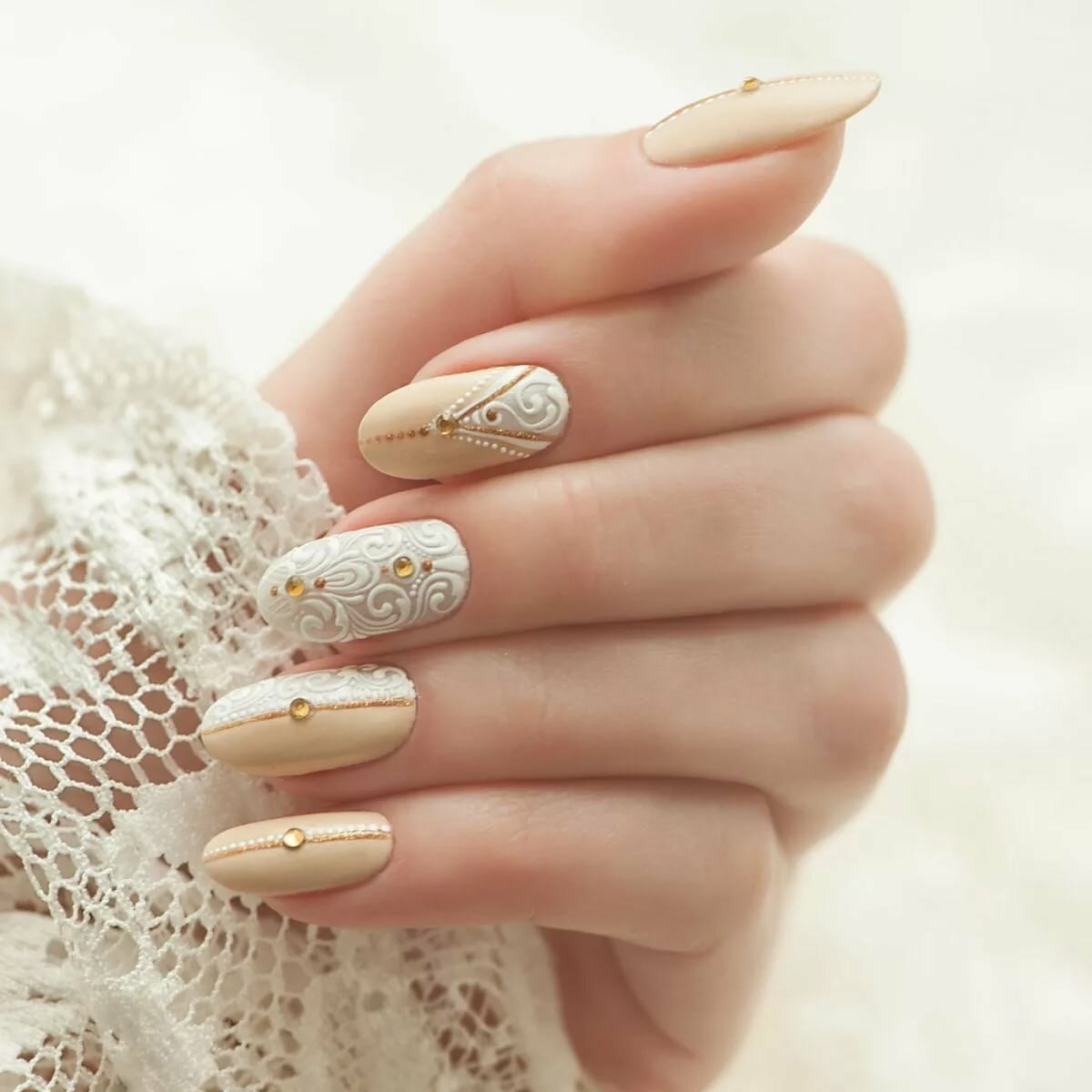 Свадебный маникюр под бежевое платье
