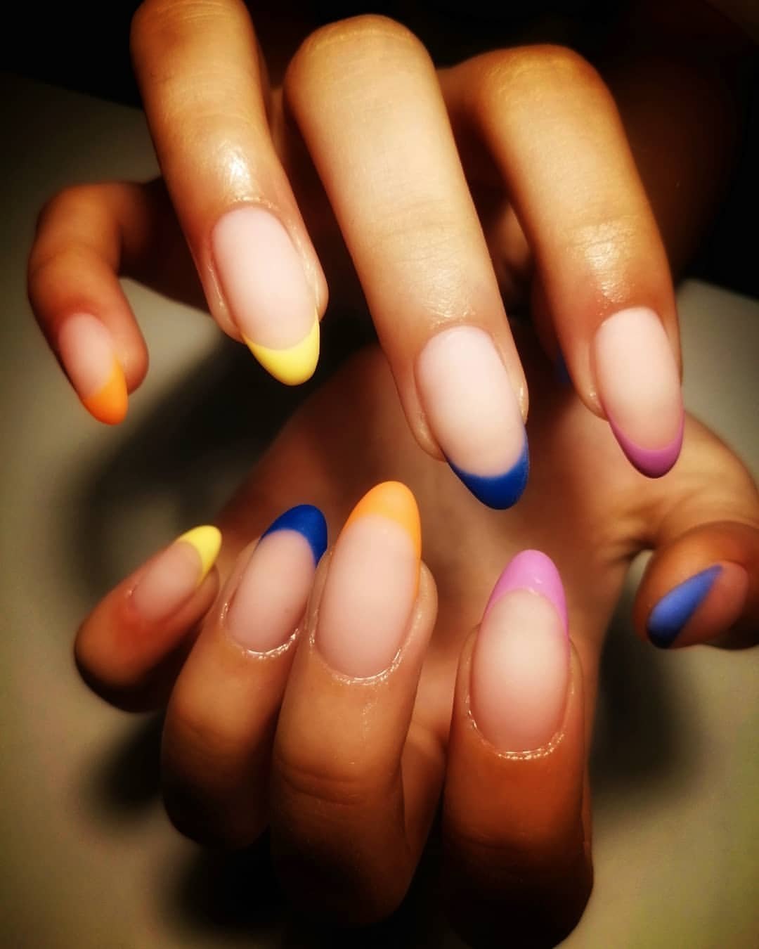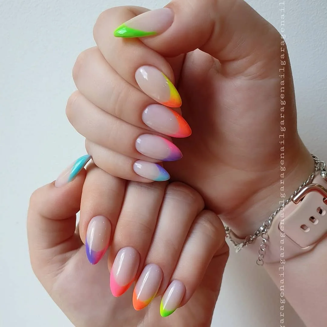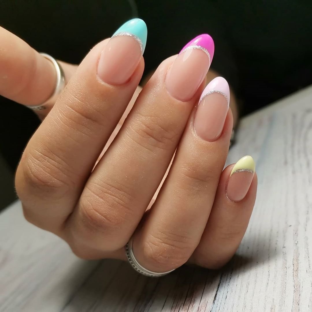 Разноцветный френч 2021 миндаль